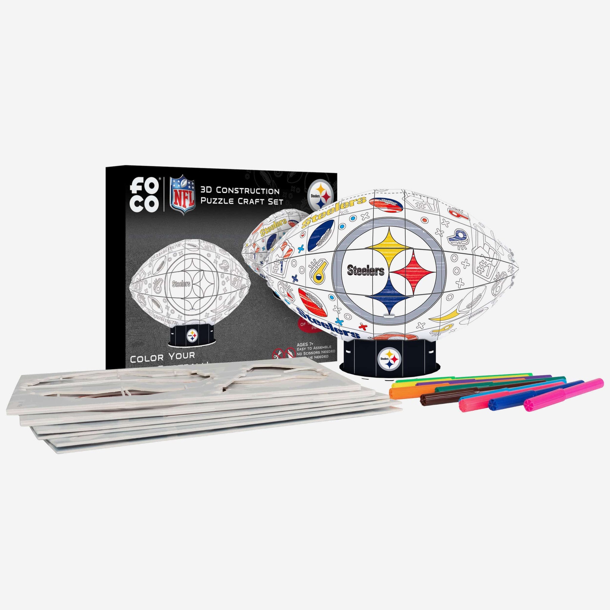Hone your craft and show off your legendary team spirit by building, coloring, and displaying this Pittsburgh Steelers PZLZ Craft Kit!