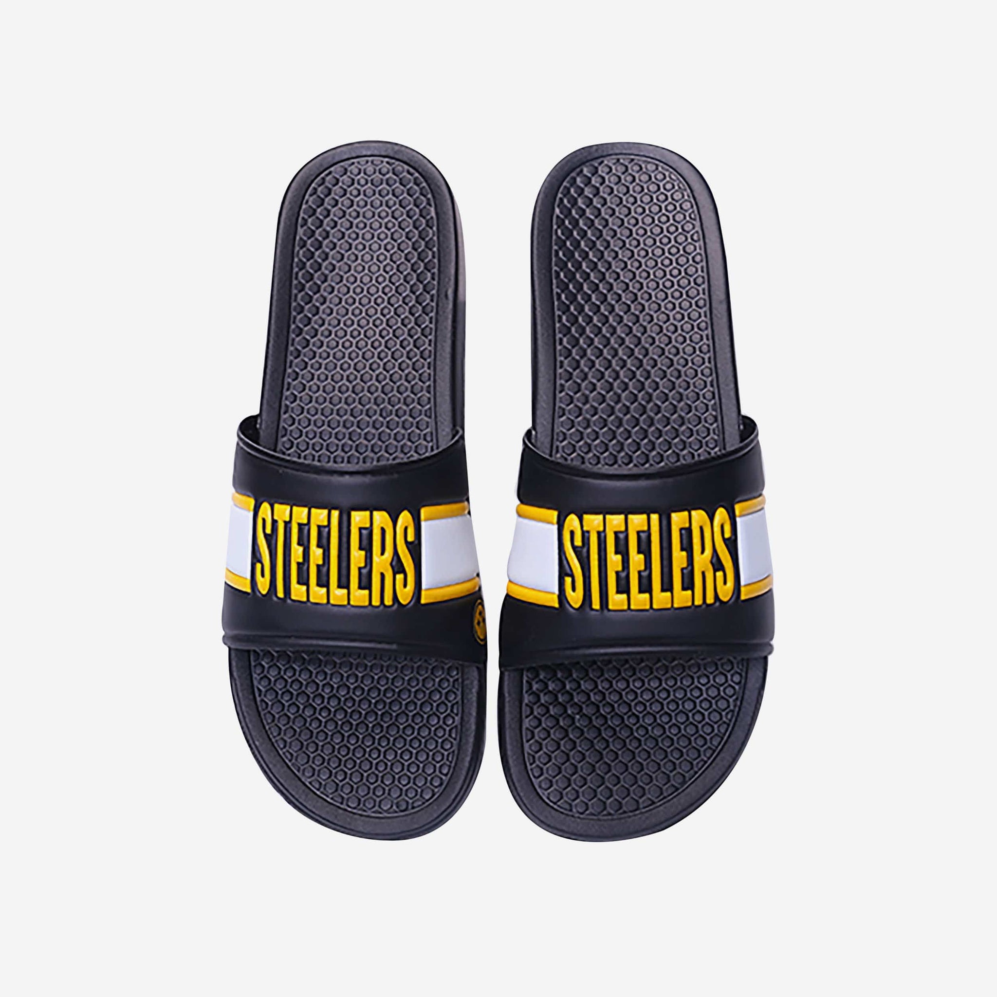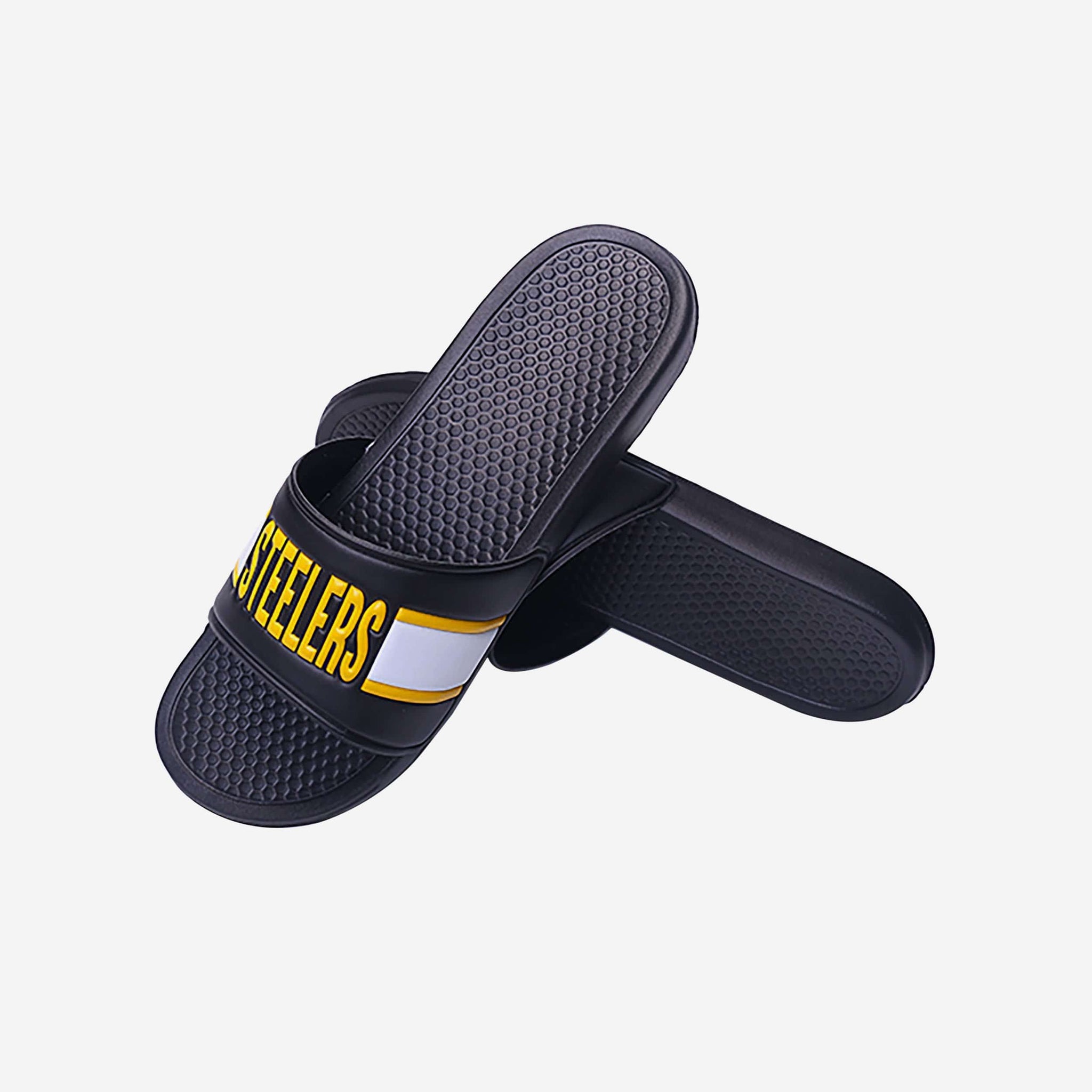 Raise the bar with every step. These Pittsburgh Steelers Raised Wordmark Slides feature all the style and comfort your phenomenal fan feet so rightly deserve.