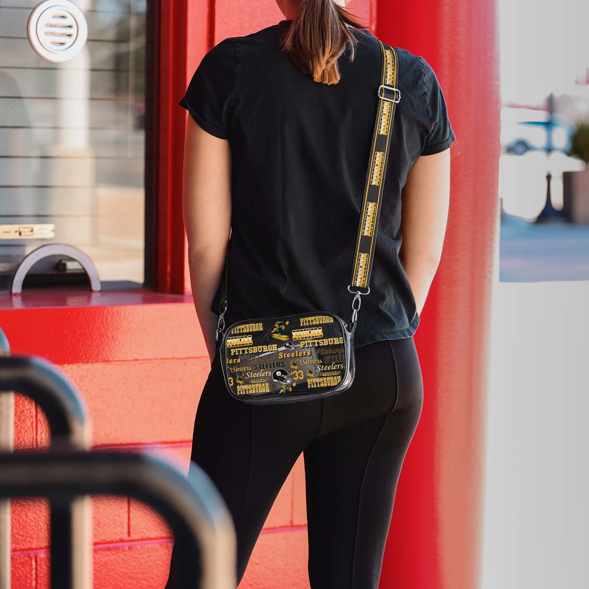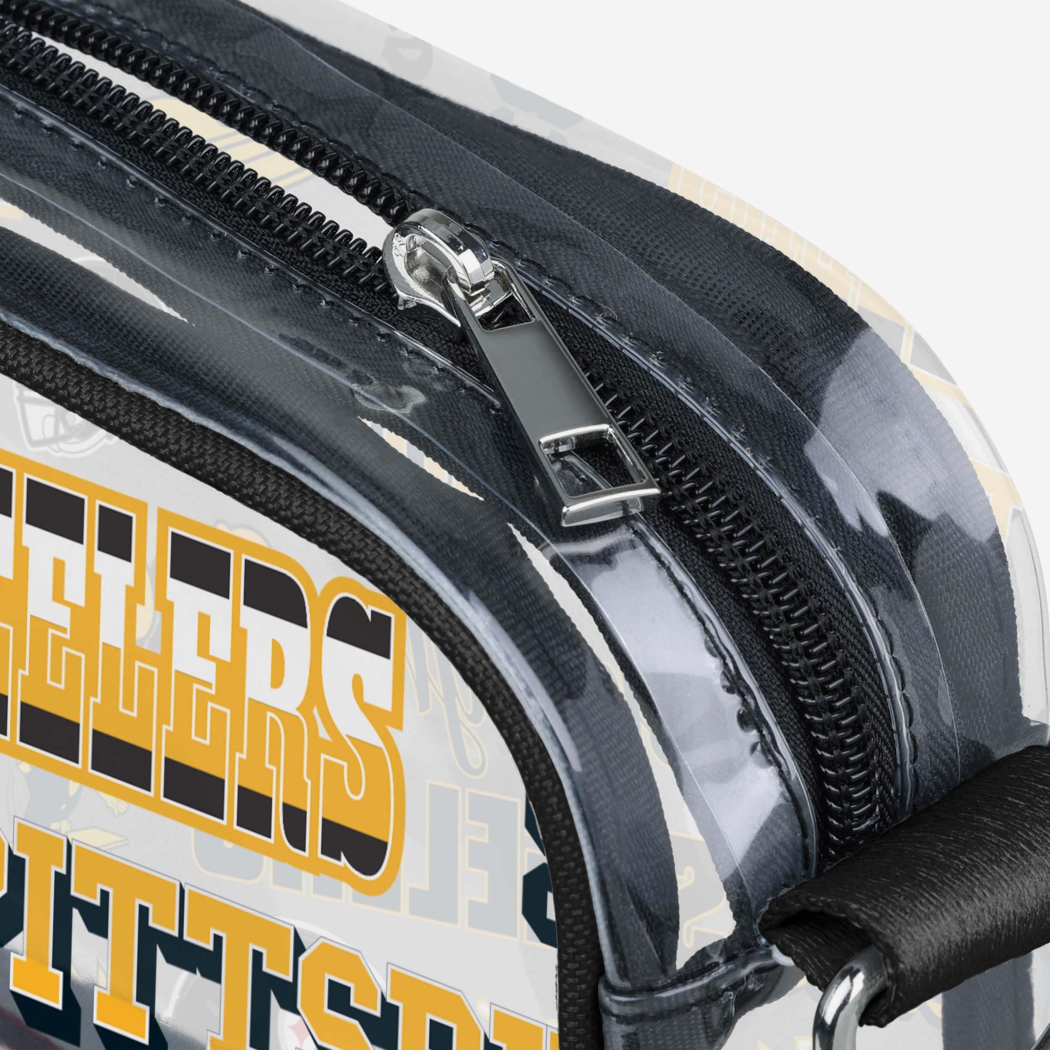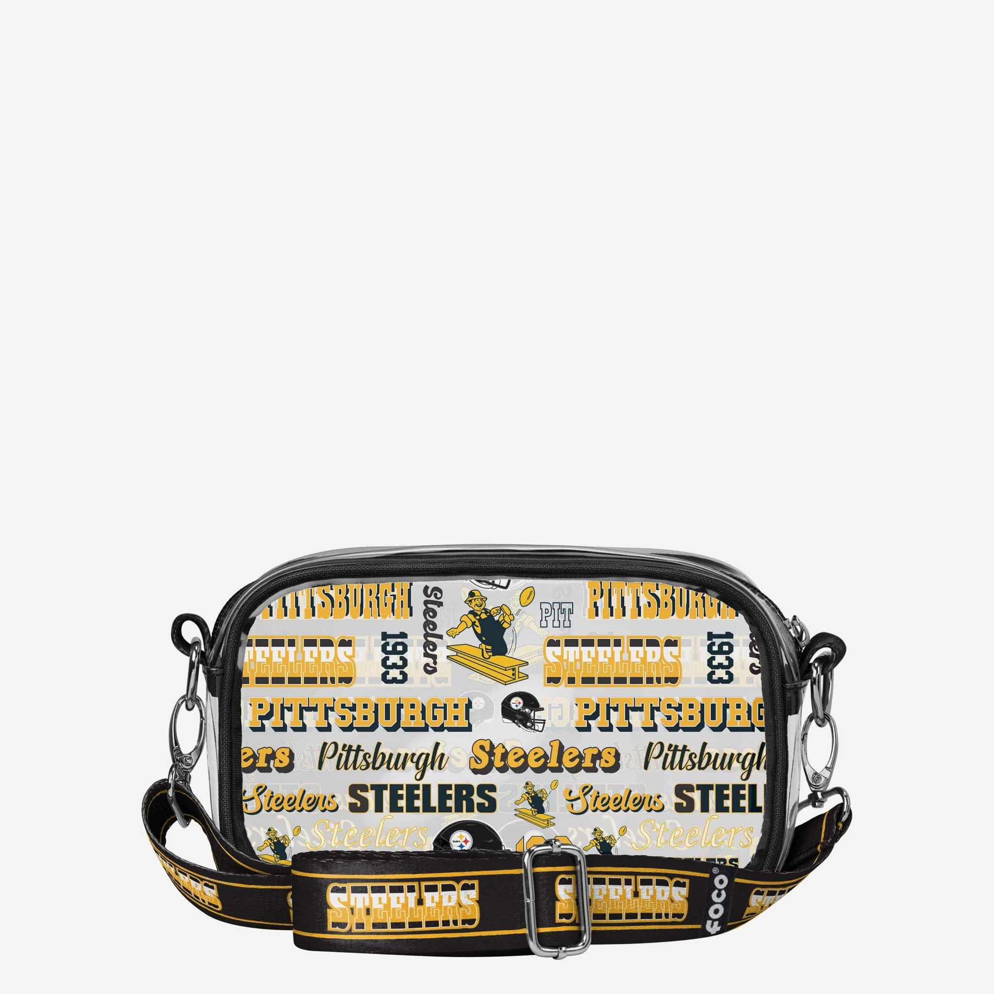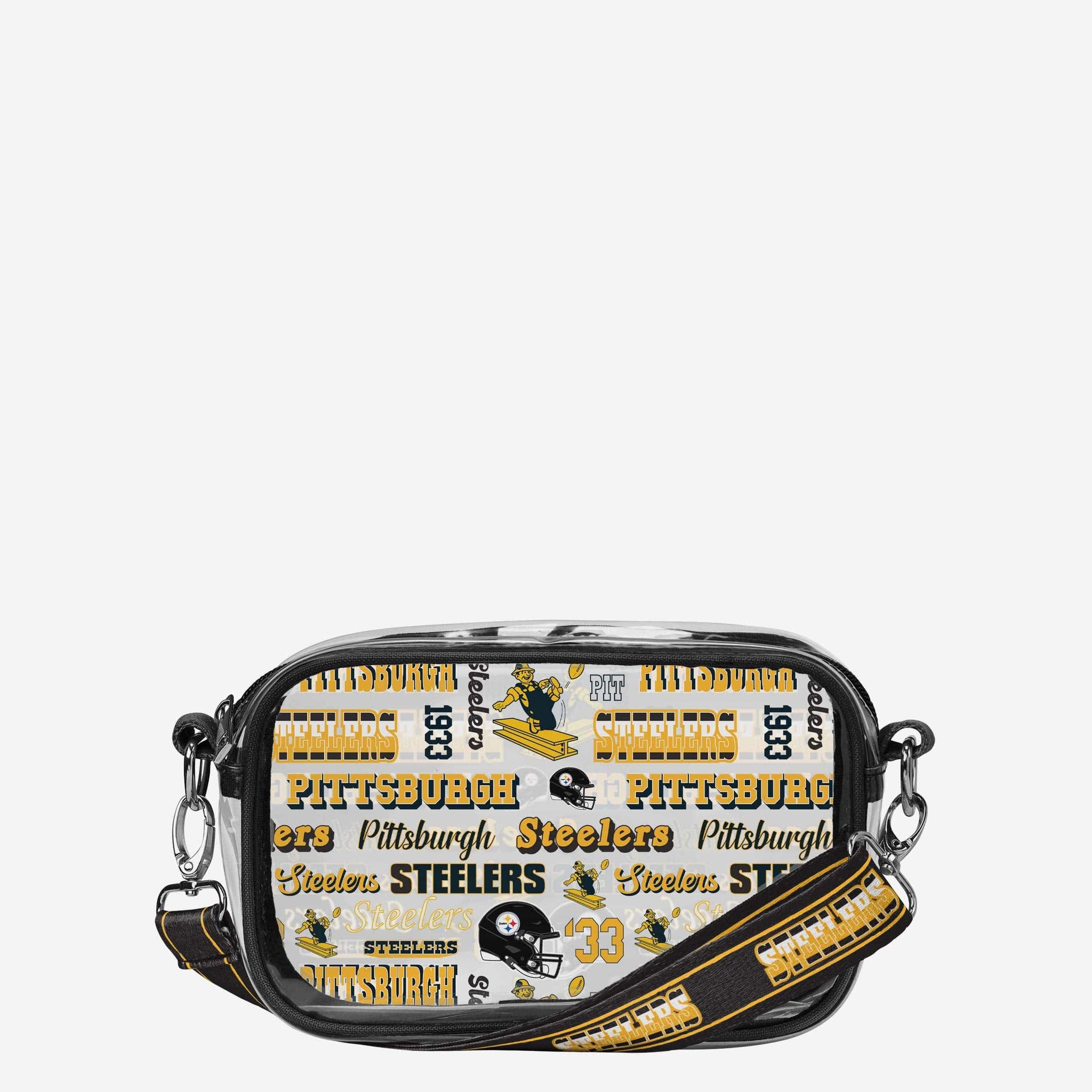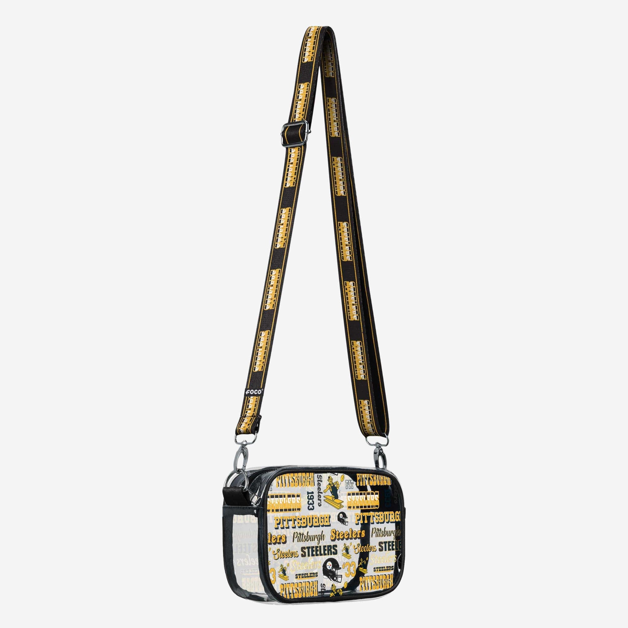Over your shoulder and off to the game. Whether you're running errands on the town or running the tailgate in the parking lot, this Pittsburgh Steelers Repeat Retro Print Clear Crossbody Bag is the perfect way to carry the team like never before.