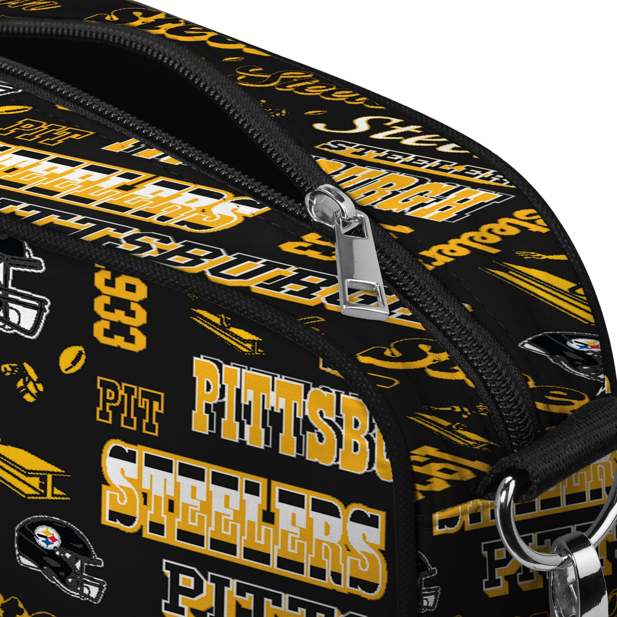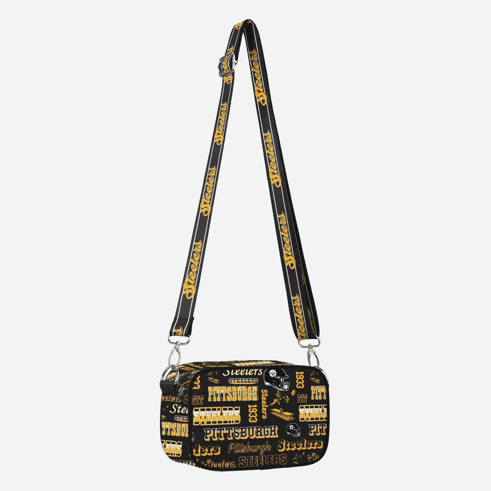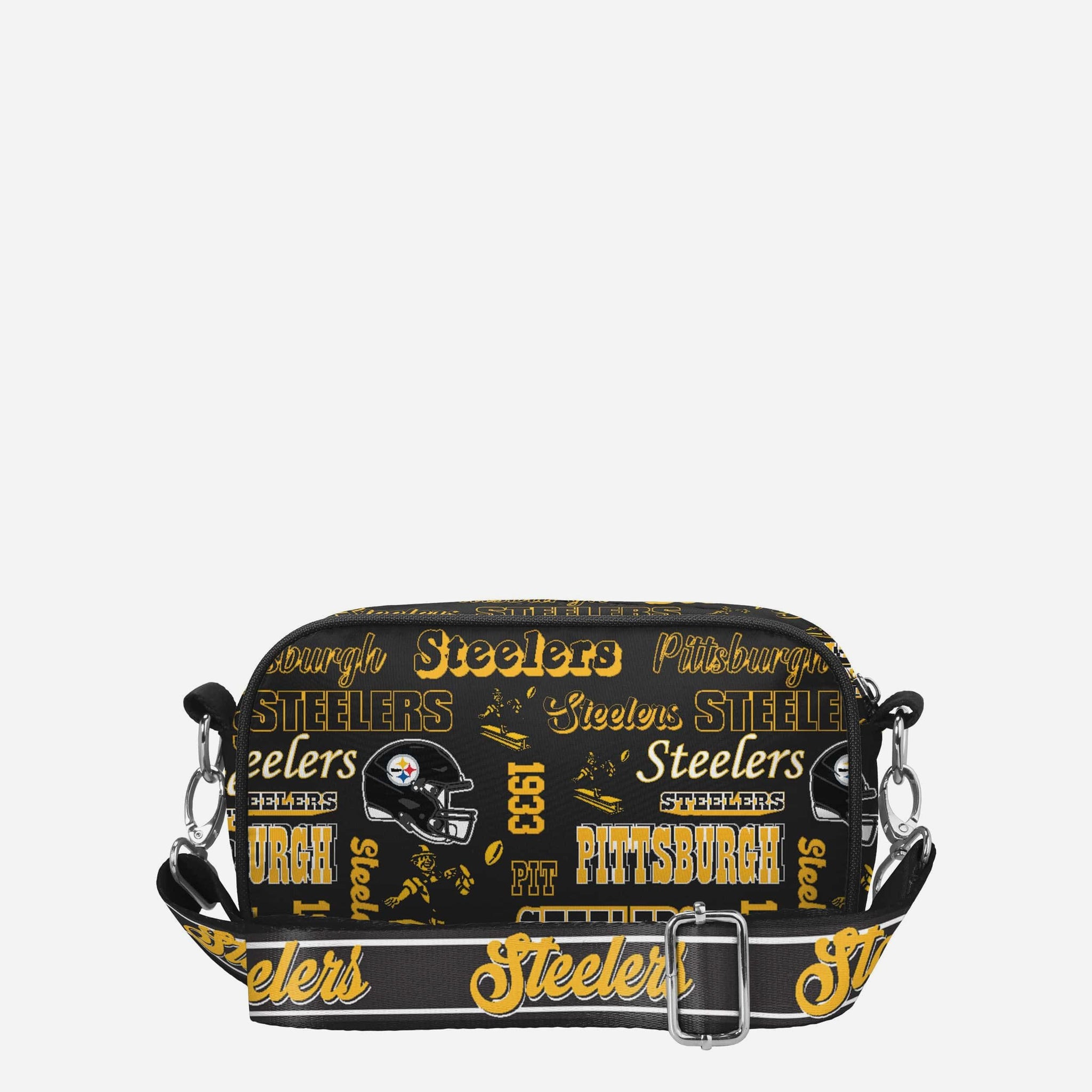 Over your shoulder and off to the game! Vintage vibes meet modern utility with the Pittsburgh Steelers Repeat Retro Print Nylon Crossbody Bag.