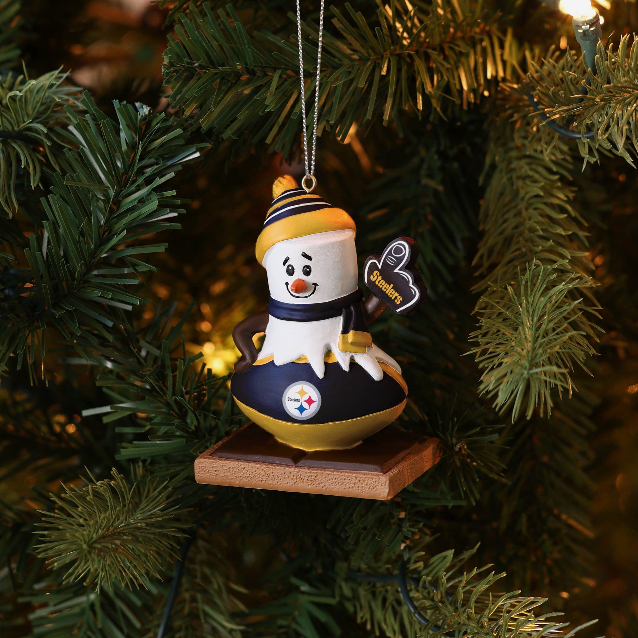 Ingredients for the perfect s'more: Graham crackers, chocolate, marshmallows… and team spirit. Enjoy s'more wins around the holidays by showing off this Pittsburgh Steelers Smore on Ball Ornament.
