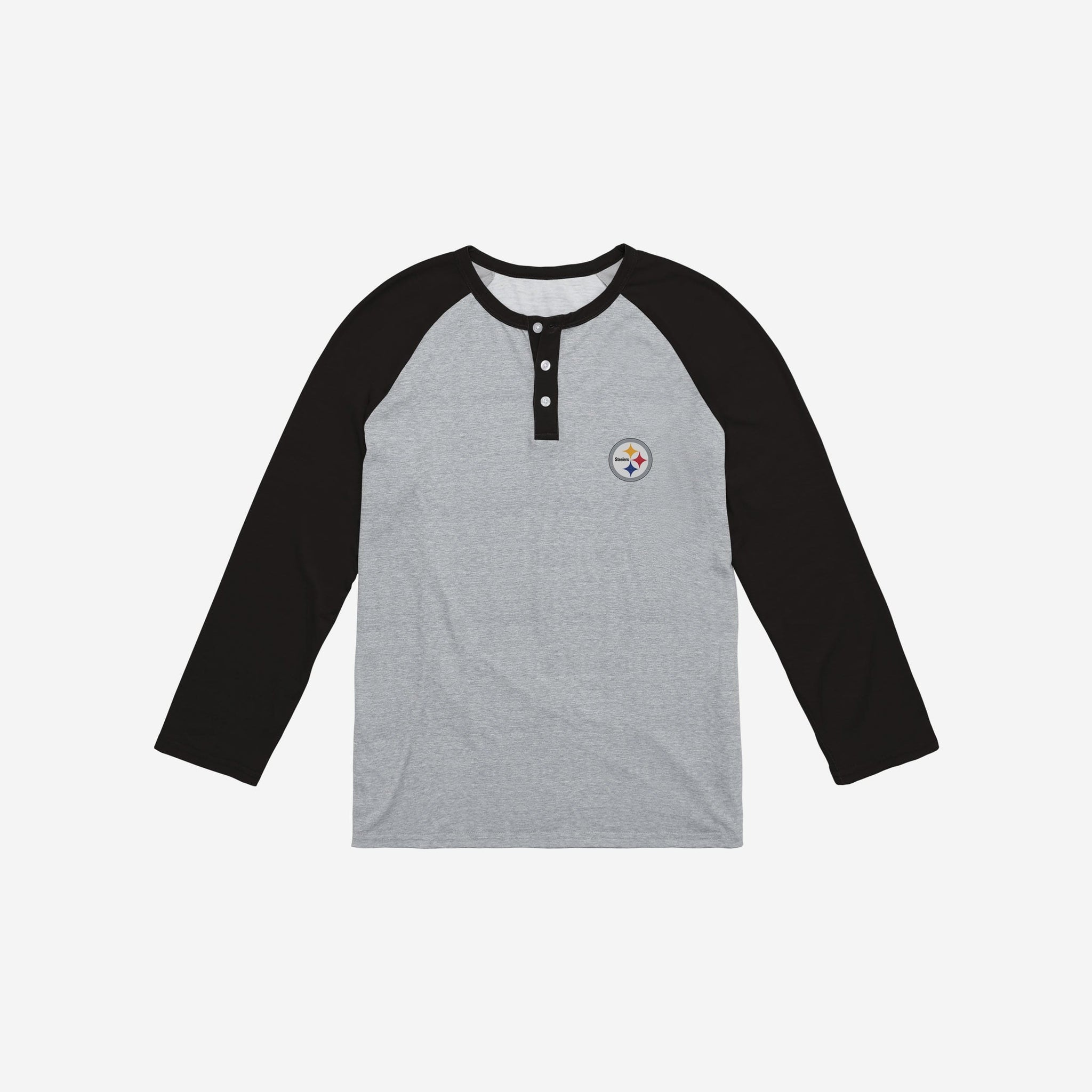 Even on the sunniest of days, there's nothing wrong with a little gray. Win the day in style with this Pittsburgh Steelers Team Logo Gray Long Sleeve Henley.