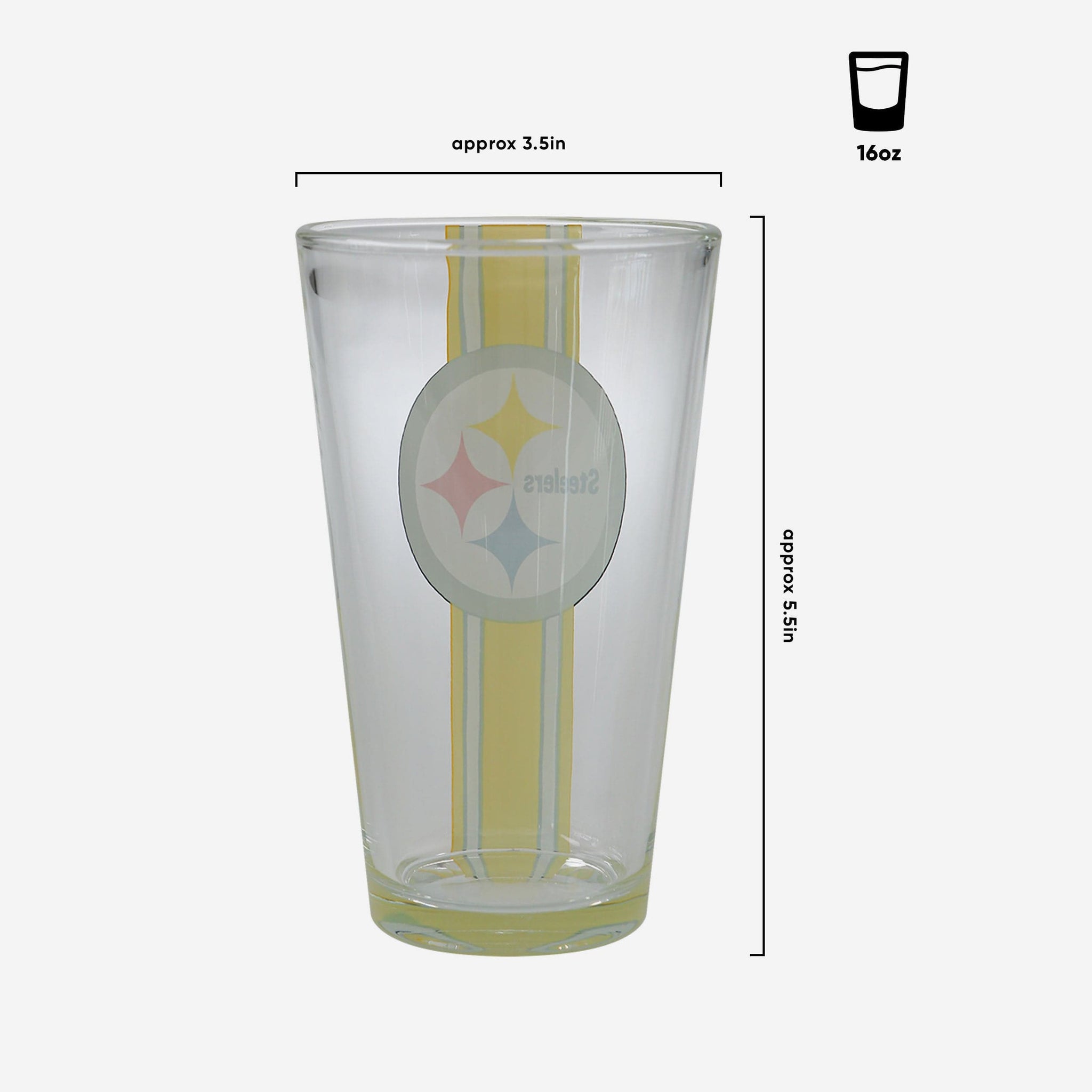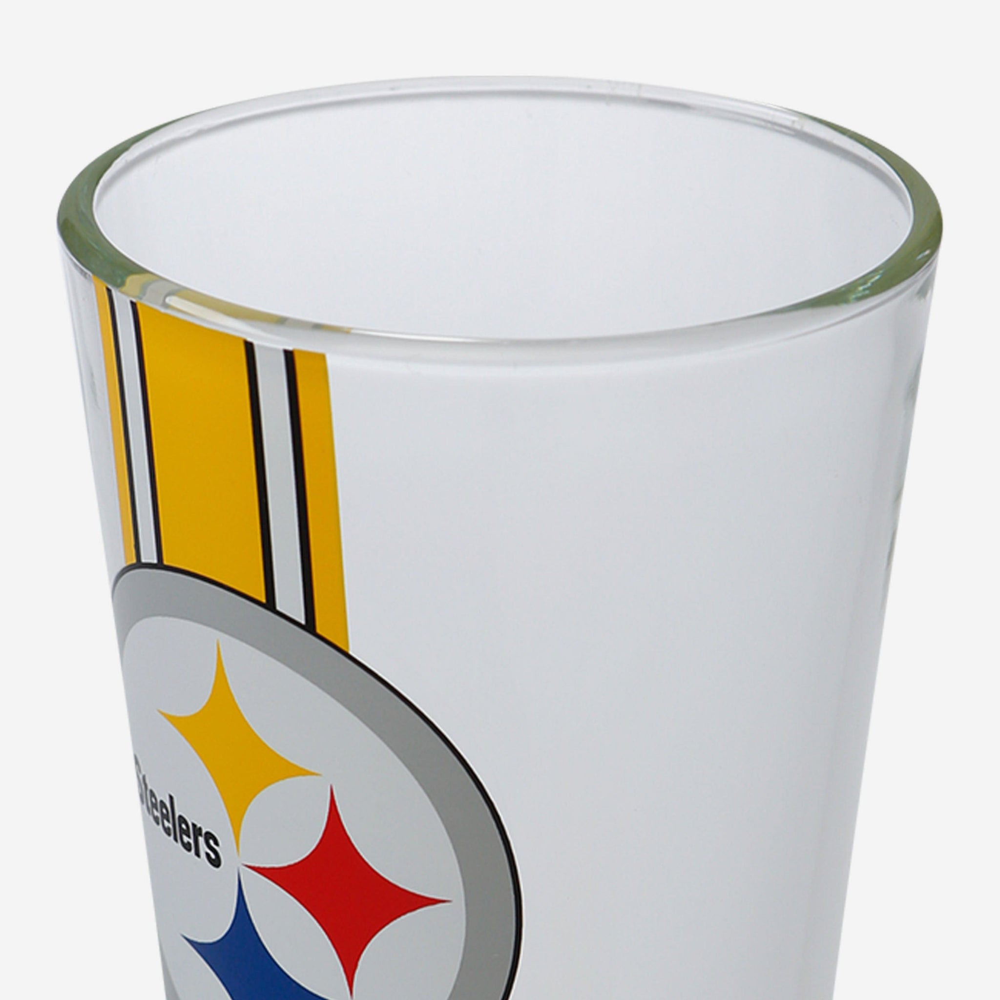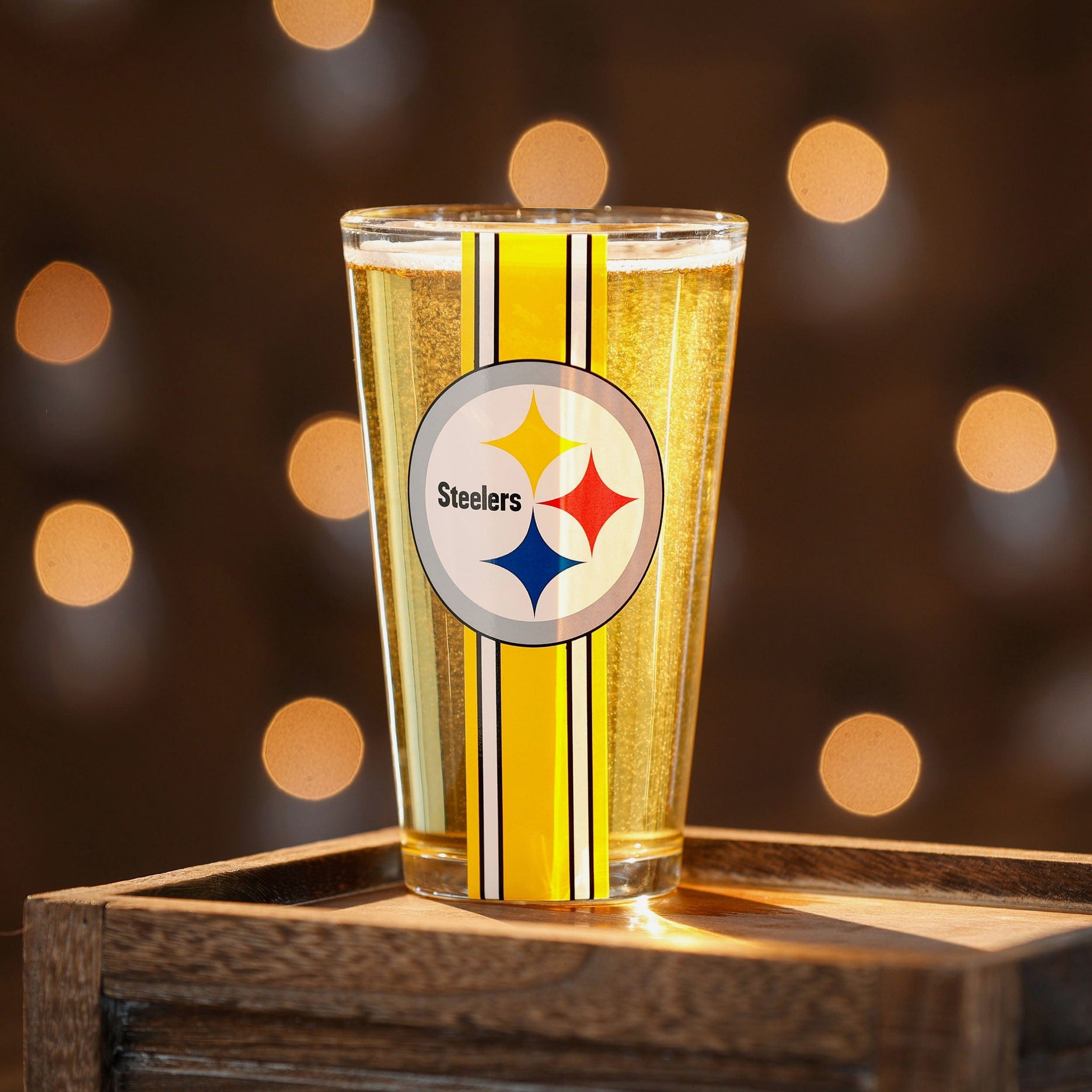 You're a glass half full type of fan. So are we. Now, let's raise that glass and get ready for victory after victory with this Pittsburgh Steelers Team Stripe Pint Glass.