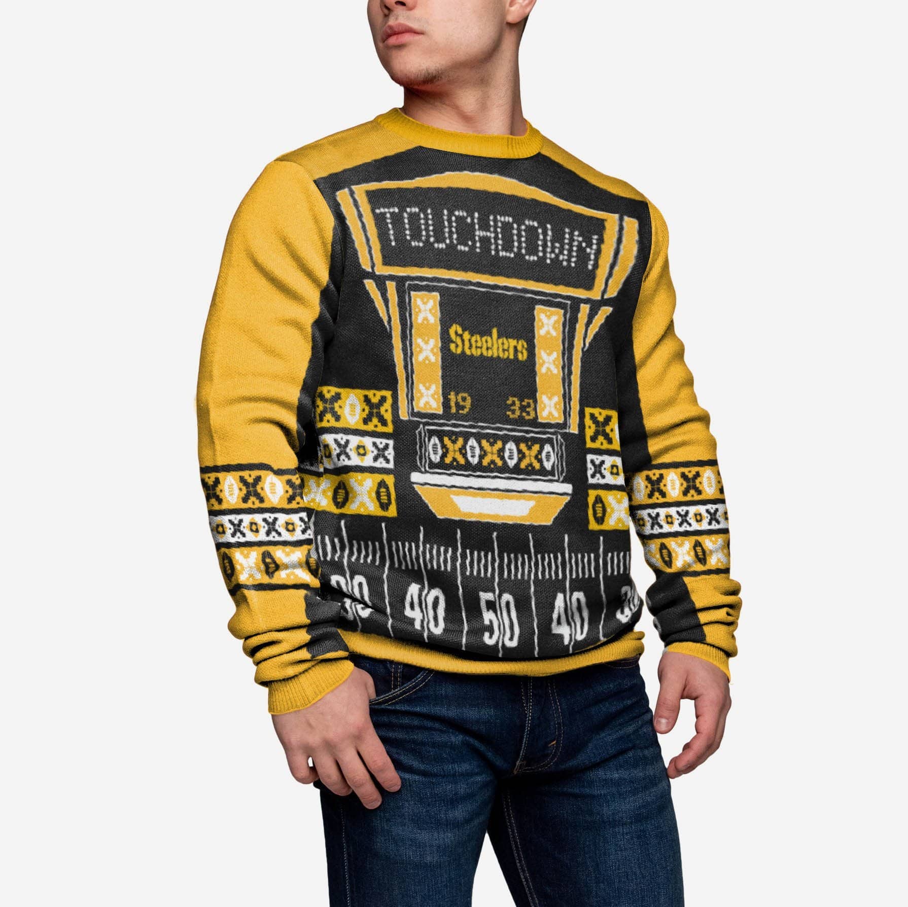 This Pittsburgh Steelers Ugly Light Up Sweater may shine bright at the push of a button, but nothing truly lights up the room like your team spirit. Except this sweater. Sorry, we were trying to be nice.