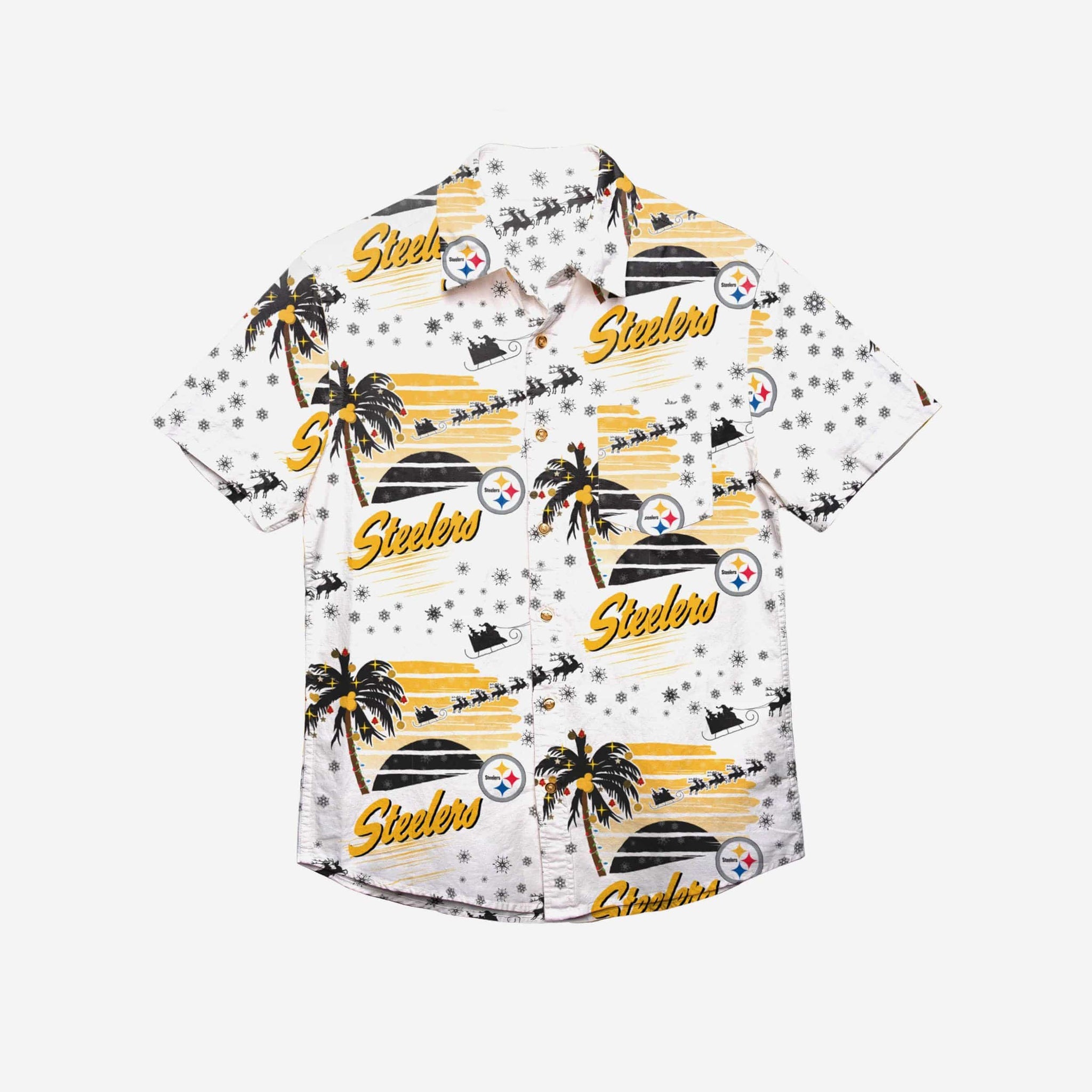 Your ability to balance fashion and fandom is the gift that keeps on giving. Show it off and get ready to be the talk of the holiday party in this Pittsburgh Steelers Winter Tropical Button Up Shirt.
