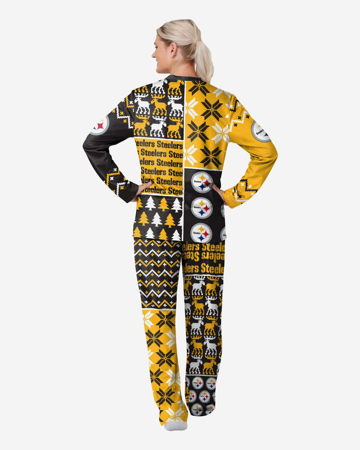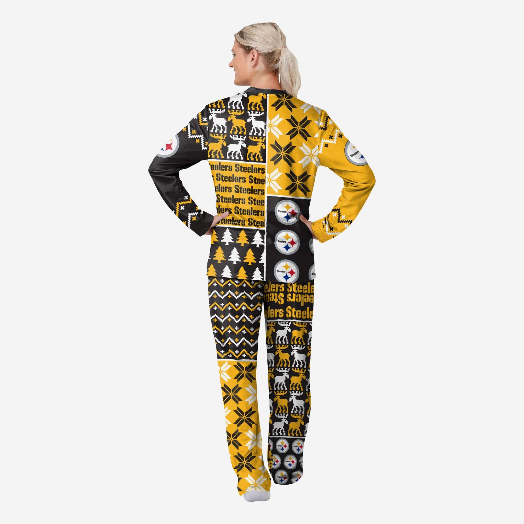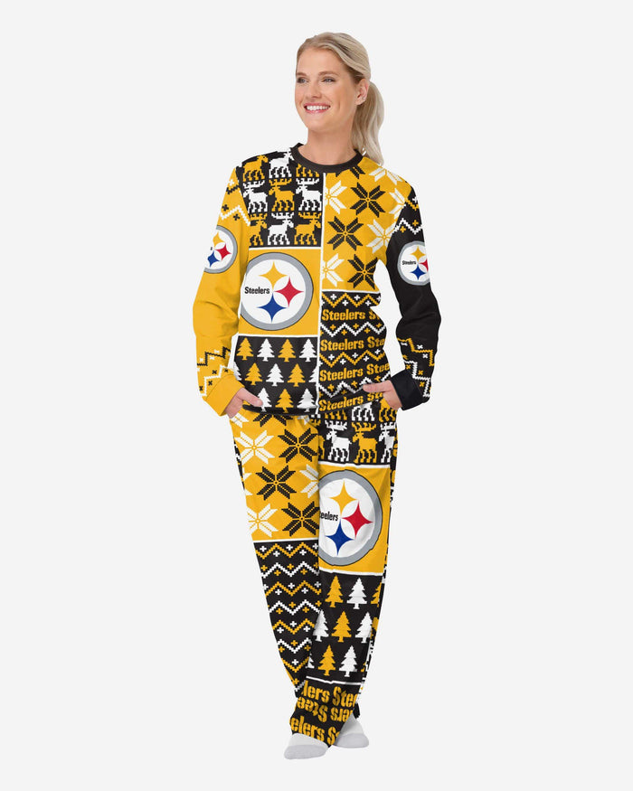 Get some matching family pajamas and dress to impress this holiday season! You won't want to miss these women's team pajamas! These women's PJ's are comfortable and show off your team spirit in the form of some sweet women's jammies. Introducing the Pittsburgh Steelers Women's Busy Block Family Holiday Pajamas! Don't forget to take your holiday photo with the whole family wearing matching Christmas pajamas!