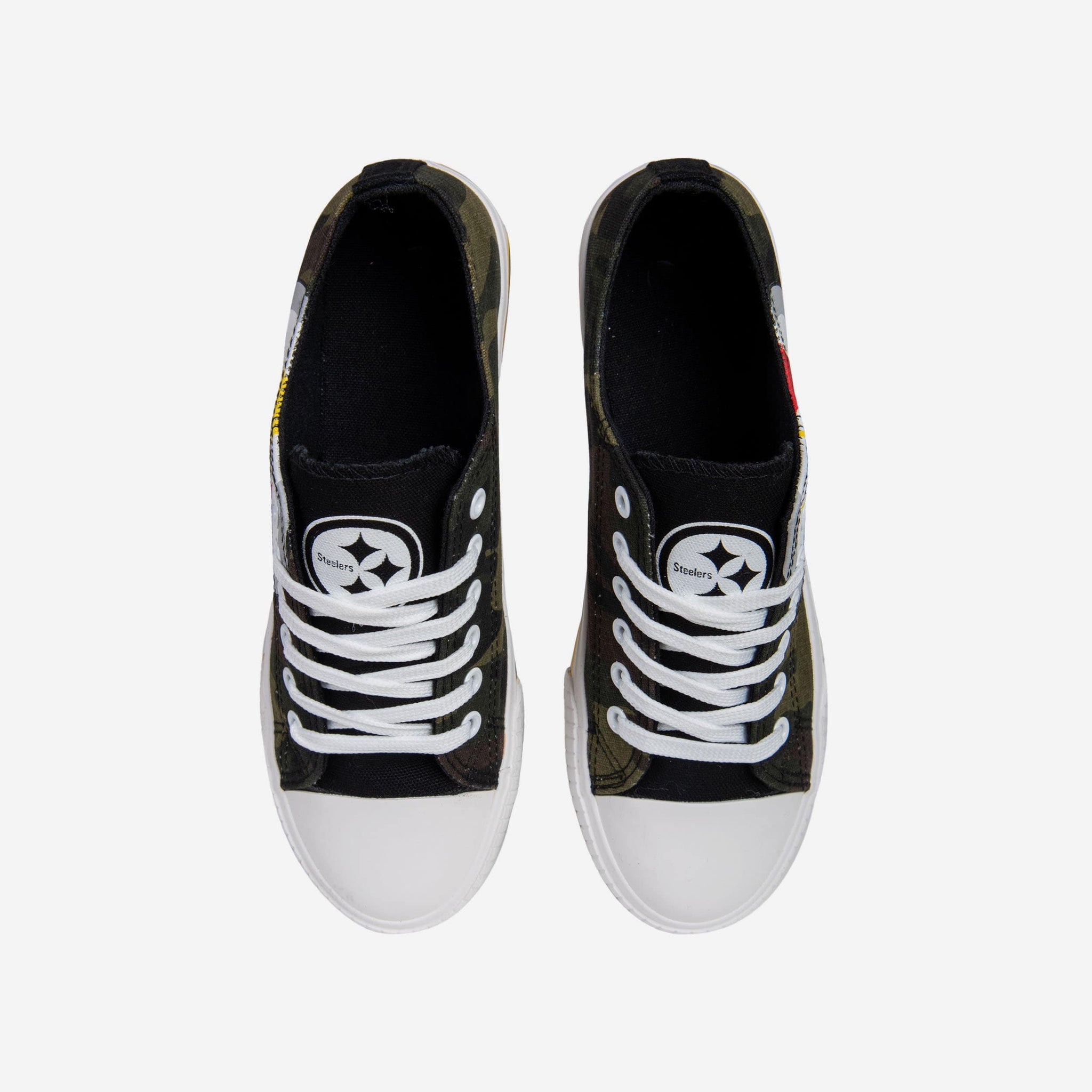 Your fandom is one of a kind. Loud, proud, and passionate. In fact, your team spirit is so bold that even the sleek camouflage design of these Pittsburgh Steelers Women's Camo Low Top Canvas Shoes can't disguise it.