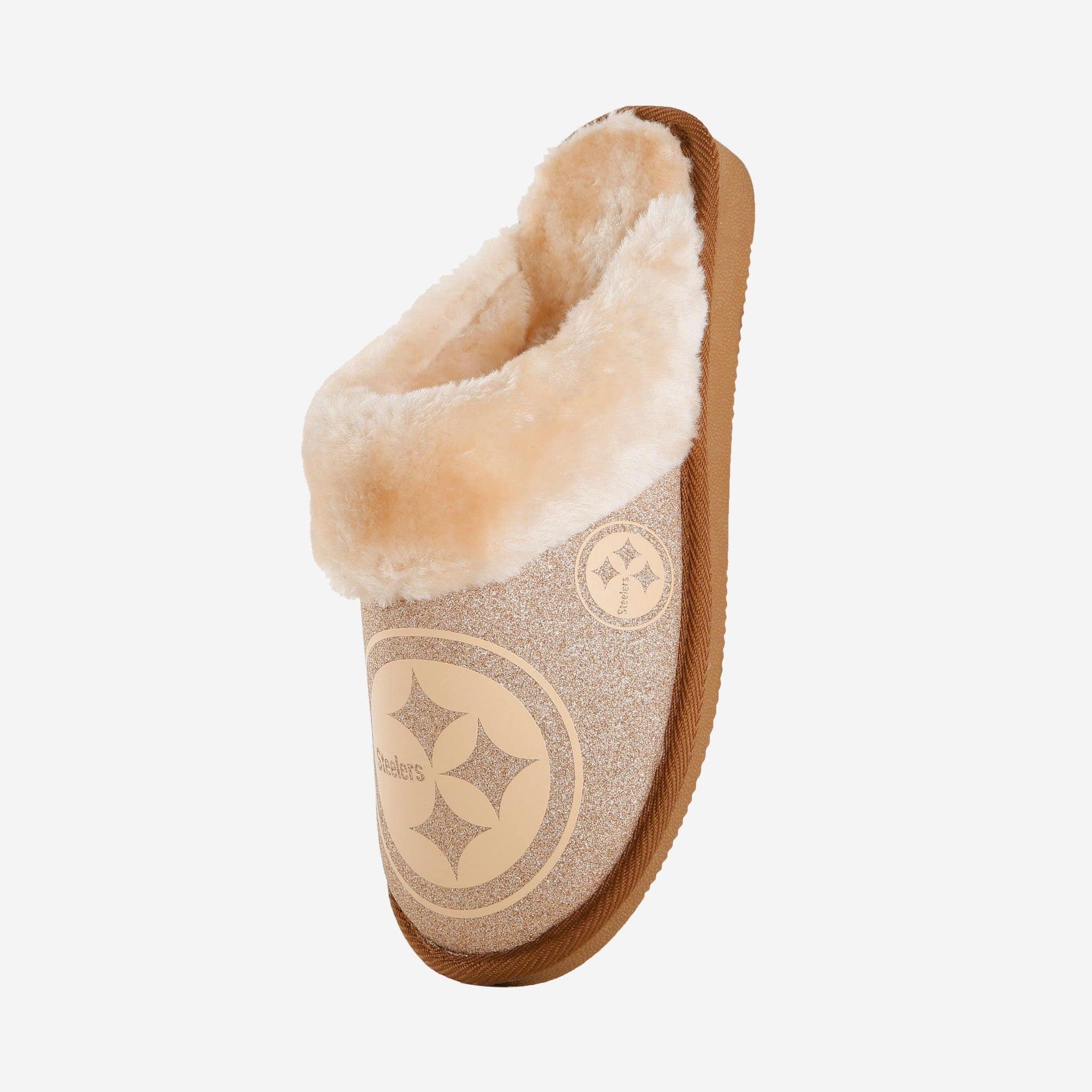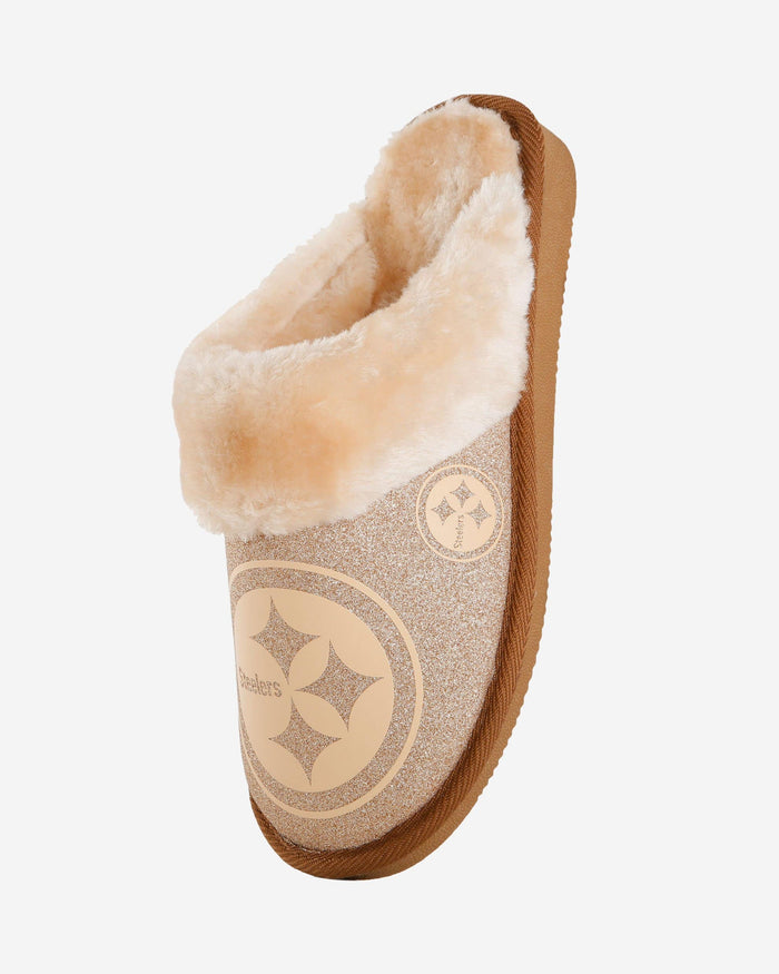 Pittsburgh Steelers Womens Glitter Open Back Fur Moccasin Slipper