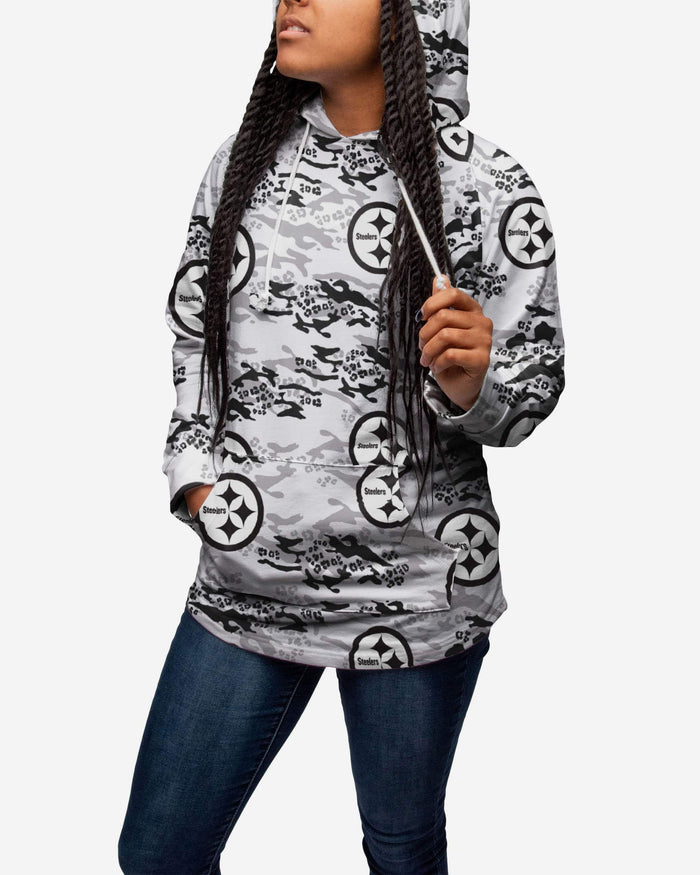 Looking for a sweater that will keep you warm but also shows the world what a real fan looks like? Look no further. Introducing the Pittsburgh Steelers Leopard Camo Hoodie. And don't worry. It features a sweet camouflage design, but it won't hide your fandom.