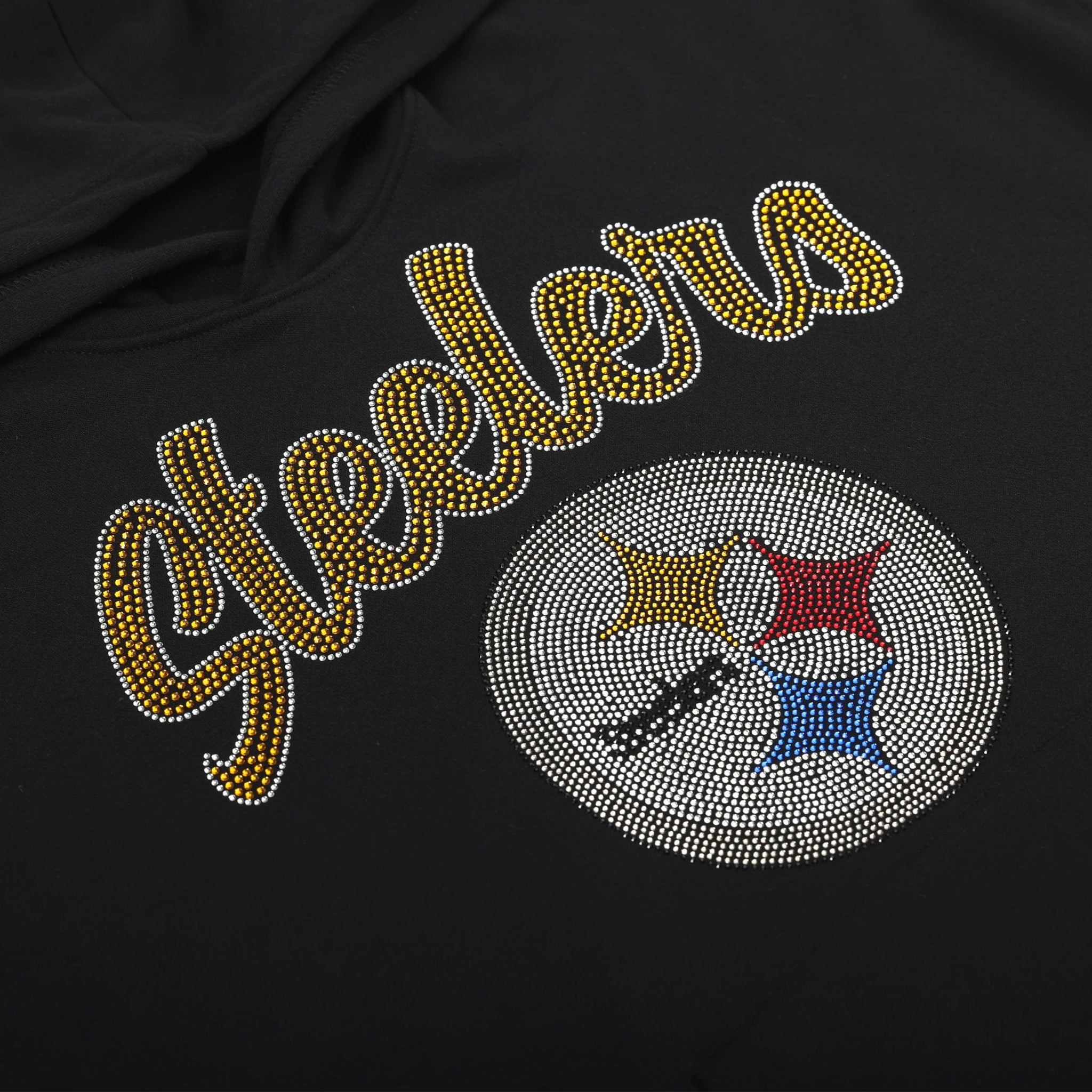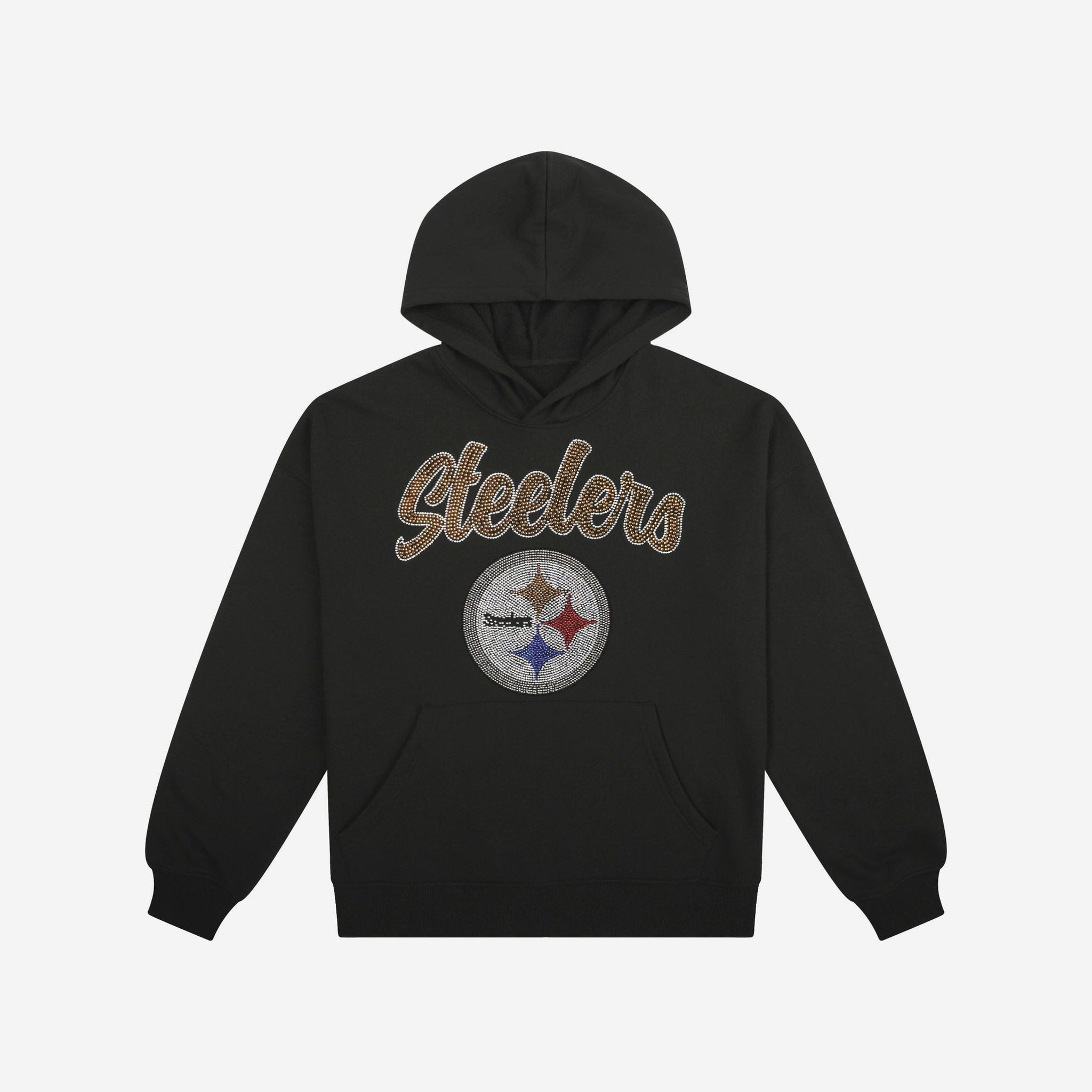 Glam is meeting game day with the Pittsburgh Steelers Womens Rhinestone Logo Oversized Hoodie! With a bold, blinged-out logo across the chest and a relaxed, oversized fit, it’s made for cheering loud, lounging proud, and turning heads wherever you go. Shine bright. Stay warm. Rep your team.