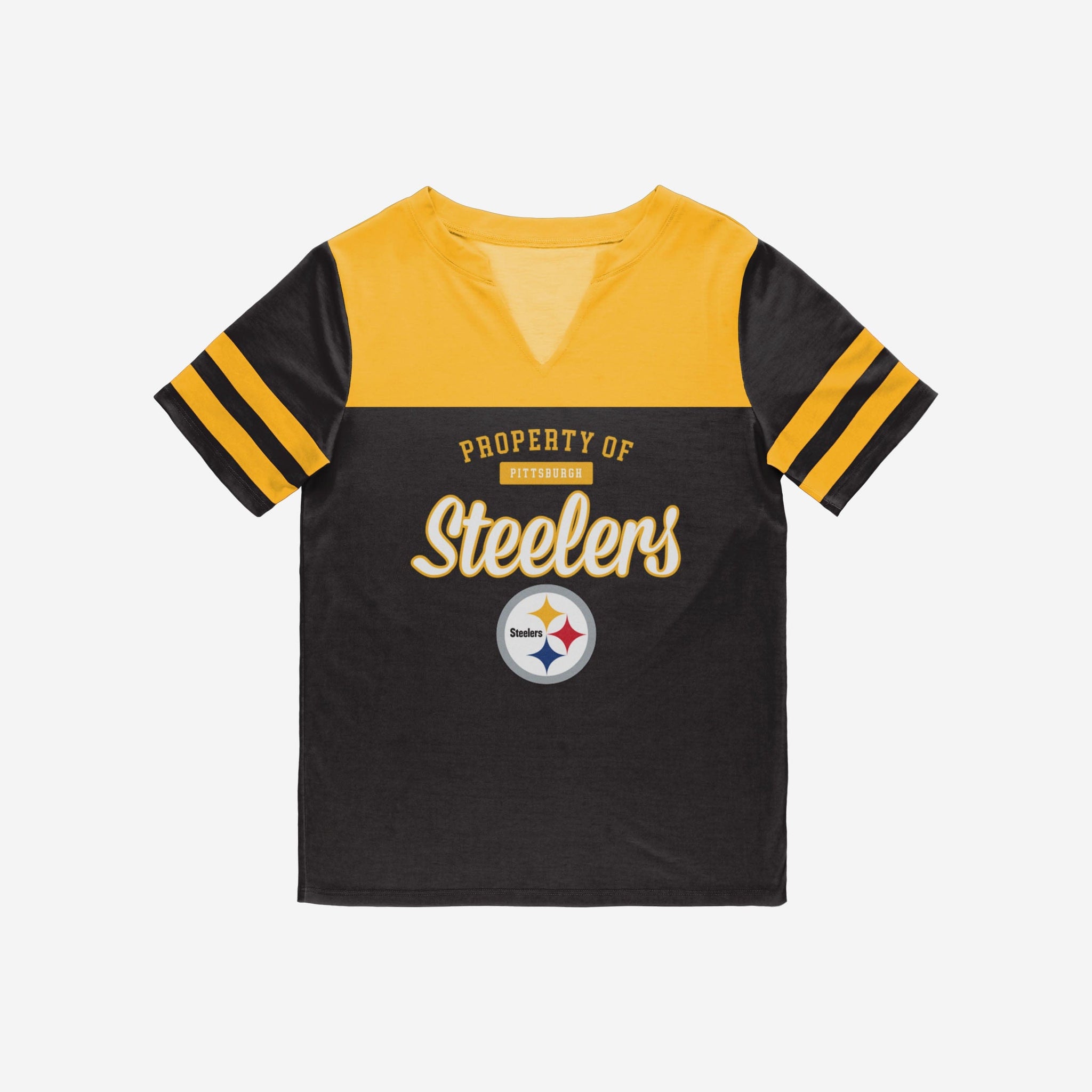 Pittsburgh Steelers Womens Team Stripe Property Of V-Neck T-Shirt FOCO S - FOCO.com