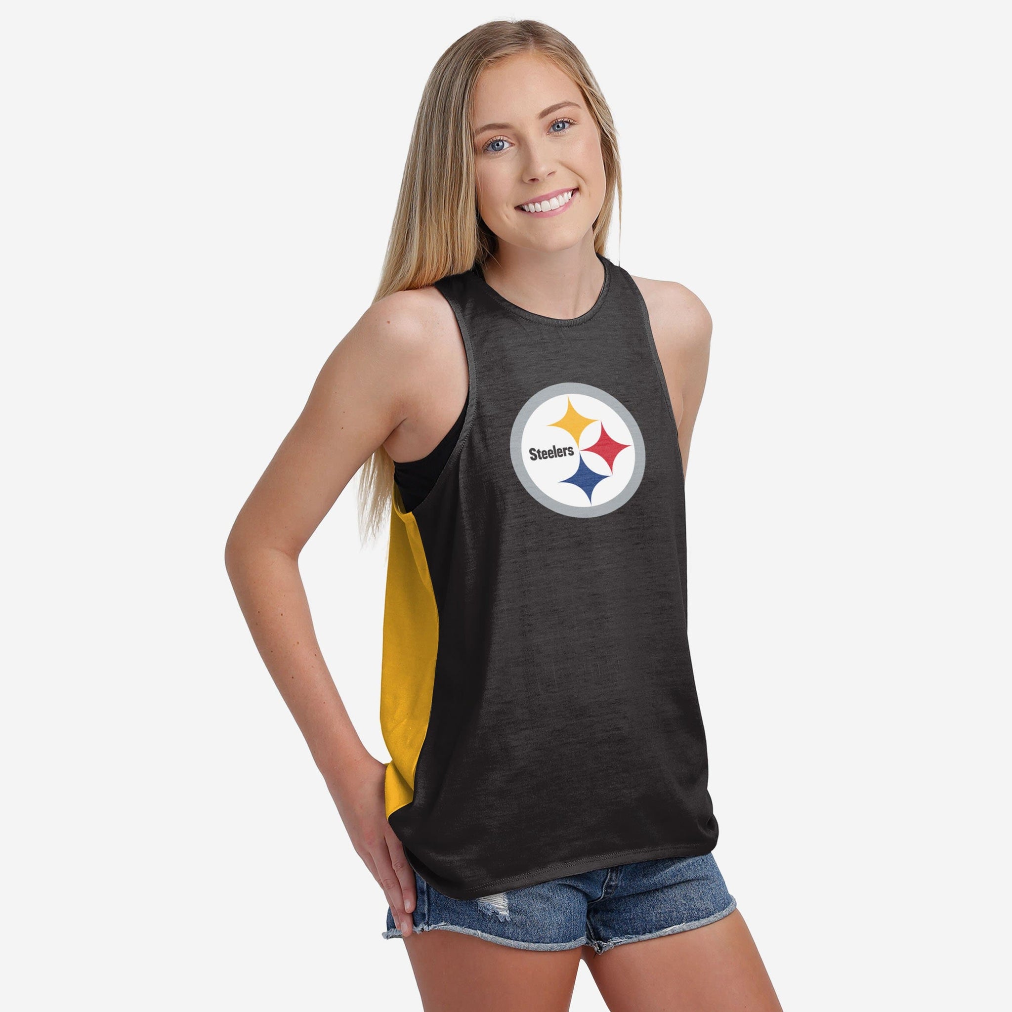 Fandom never looked so good. Whether you're at the game, hitting the beach, or getting your epic workout on at the gym, this Pittsburgh Steelers Tie-Breaker Sleeveless Top is sure to make you the most passionate and best-dressed fan around.