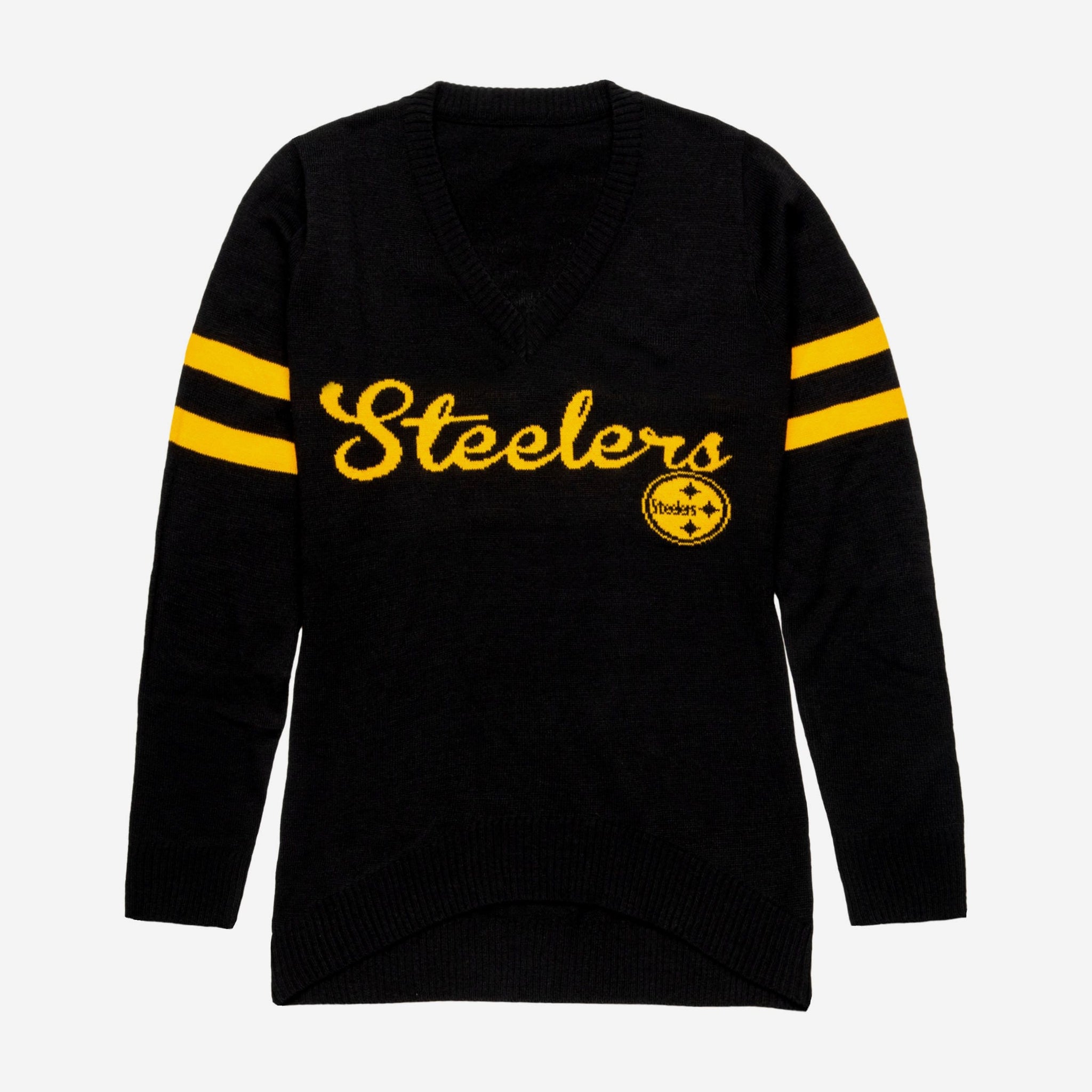 You lose your voice cheering on your team at every game. You've dyed your hair in your team colors. You're locked in on gameday, and are ready to watch hours of postgame coverage after every hard-fought victory. You're a real fan. You've earned your stripes. Now it's time to show them off in this Pittsburgh Steelers Women's Vintage Stripe Sweater.