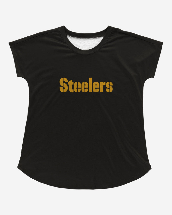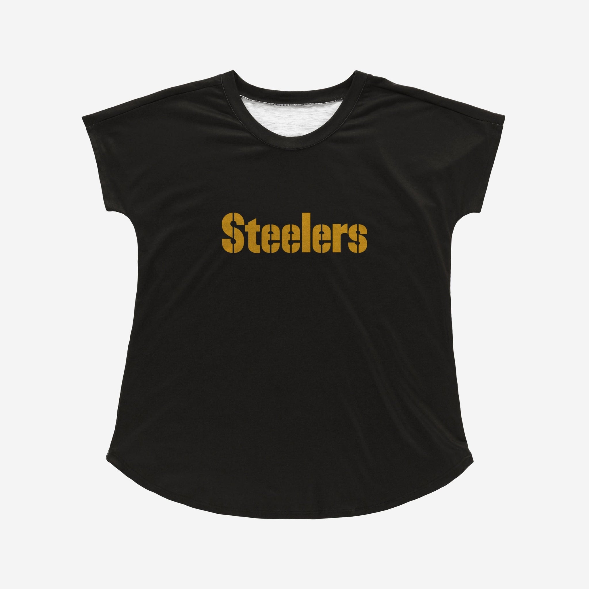 Pink? Orange? No. BLACK is the new black. Don't believe us? The heads you'll be turning when you're rocking this Pittsburgh Steelers Women's Wordmark Black Tunic Top is all the proof you need.