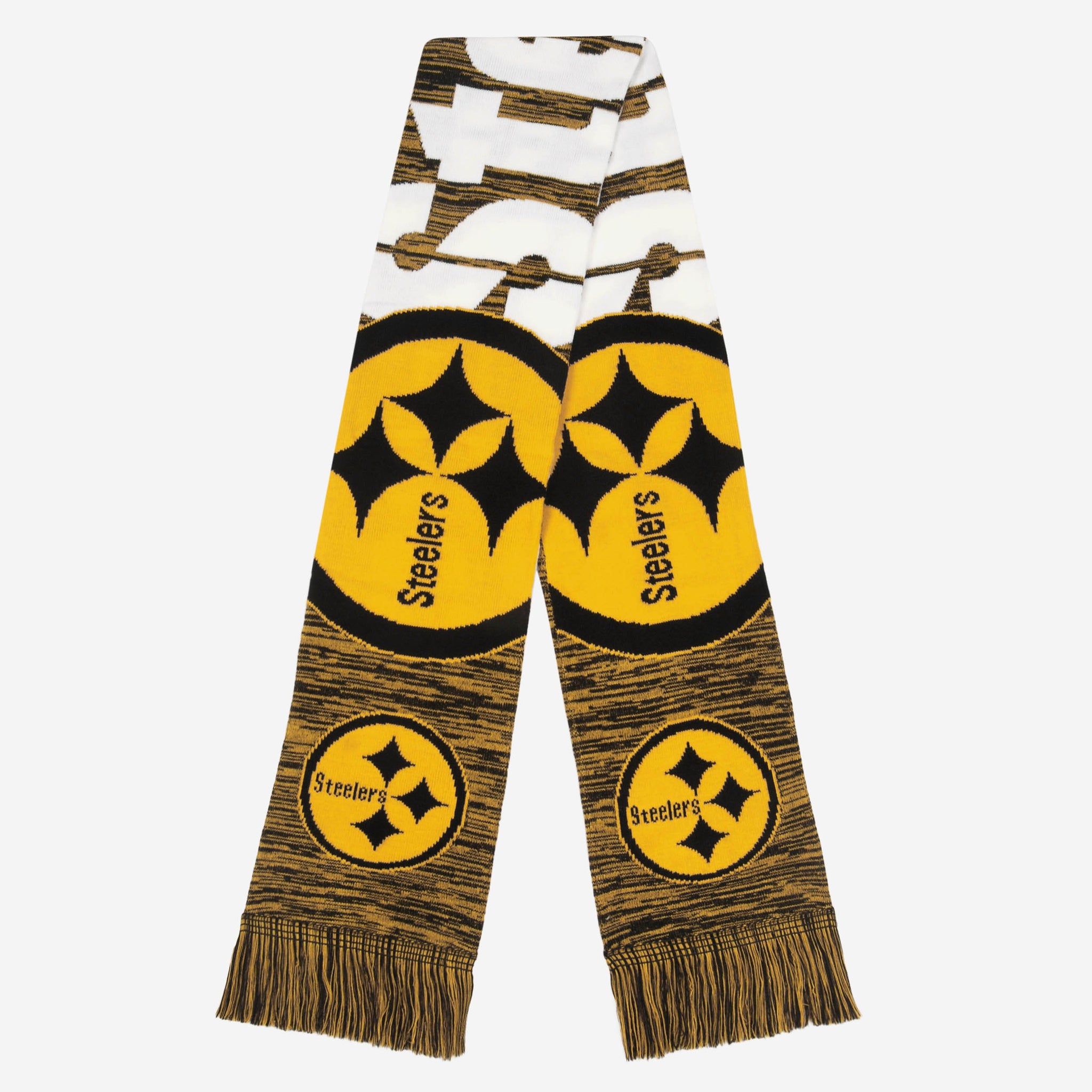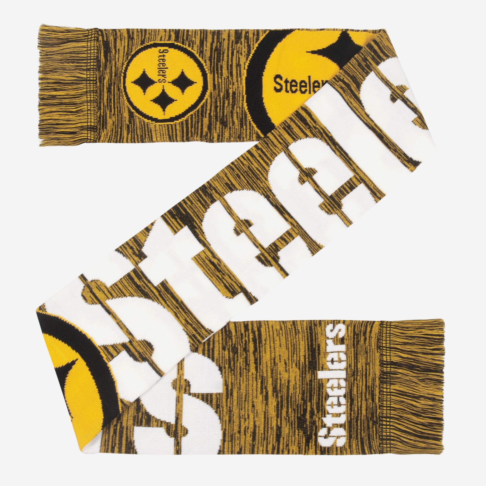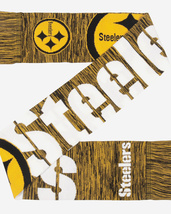 It might be a little chilly outside, but cold weather's got nothing on you, because you've got your fandom to keep you warm. More specifically, this Pittsburgh Steelers Wordmark Big Logo Colorblend Scarf will keep you warm while looking cool this winter.