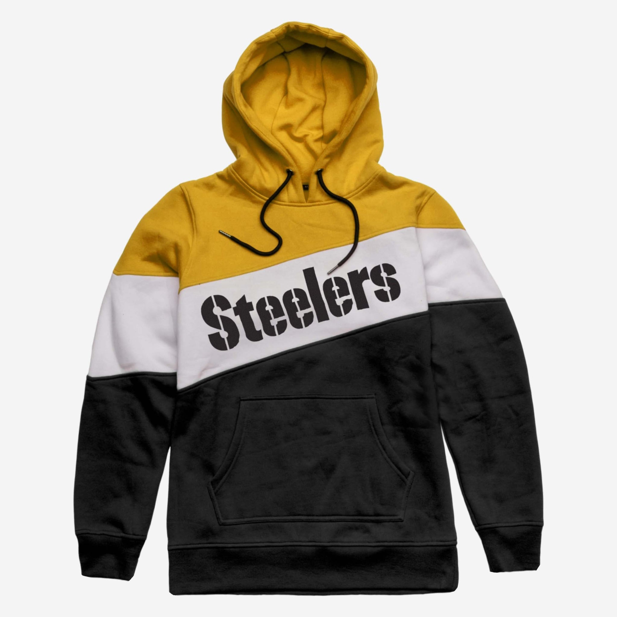 People like to say, "It's all good in the hood." But we prefer to say, "it's all goodie in the hoodie." Because everything will be great when you're wearing this Pittsburgh Steelers Wordmark Colorblock Hoodie.