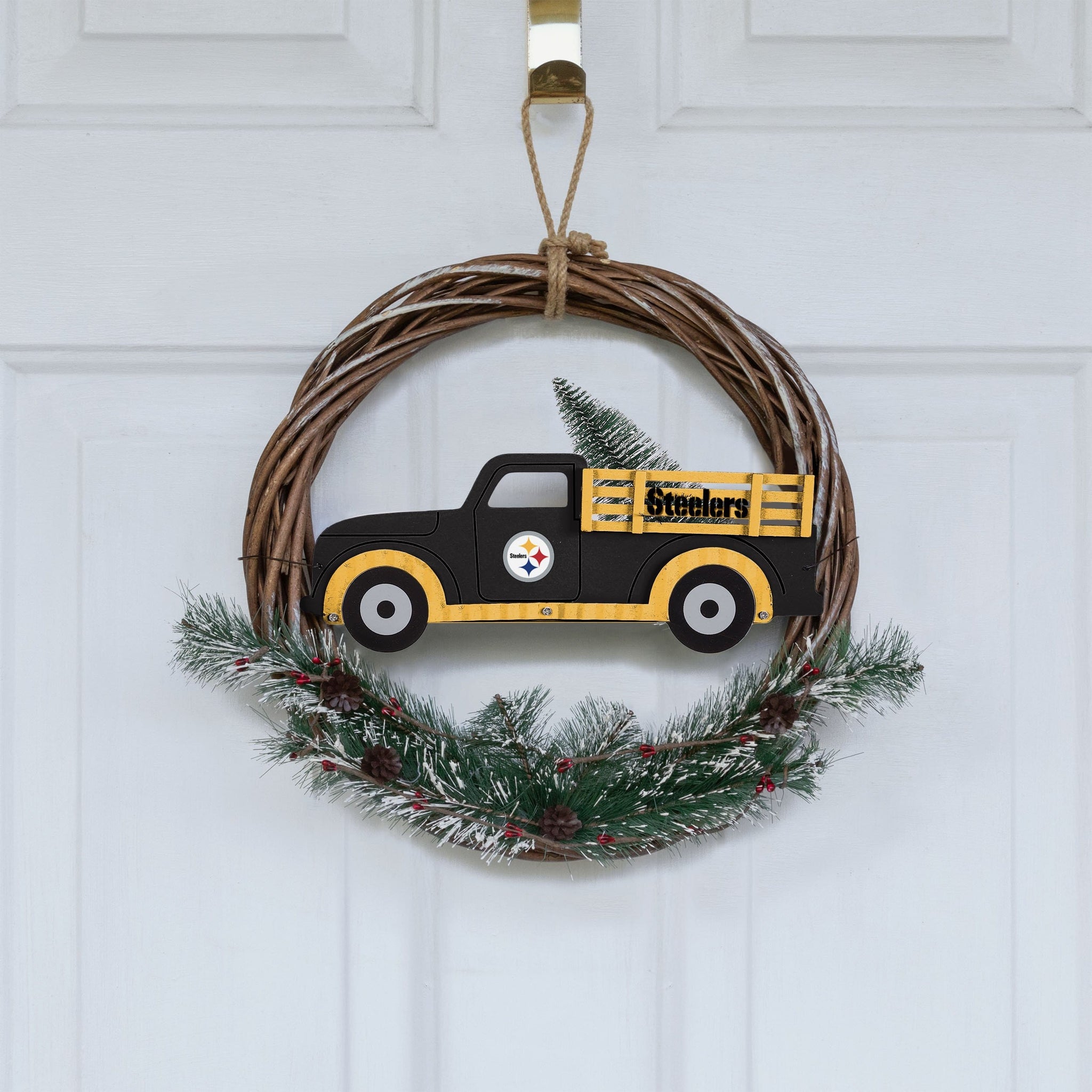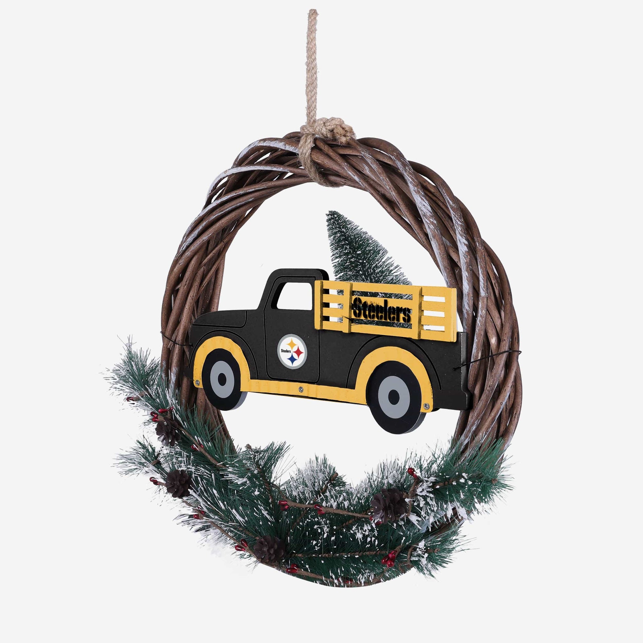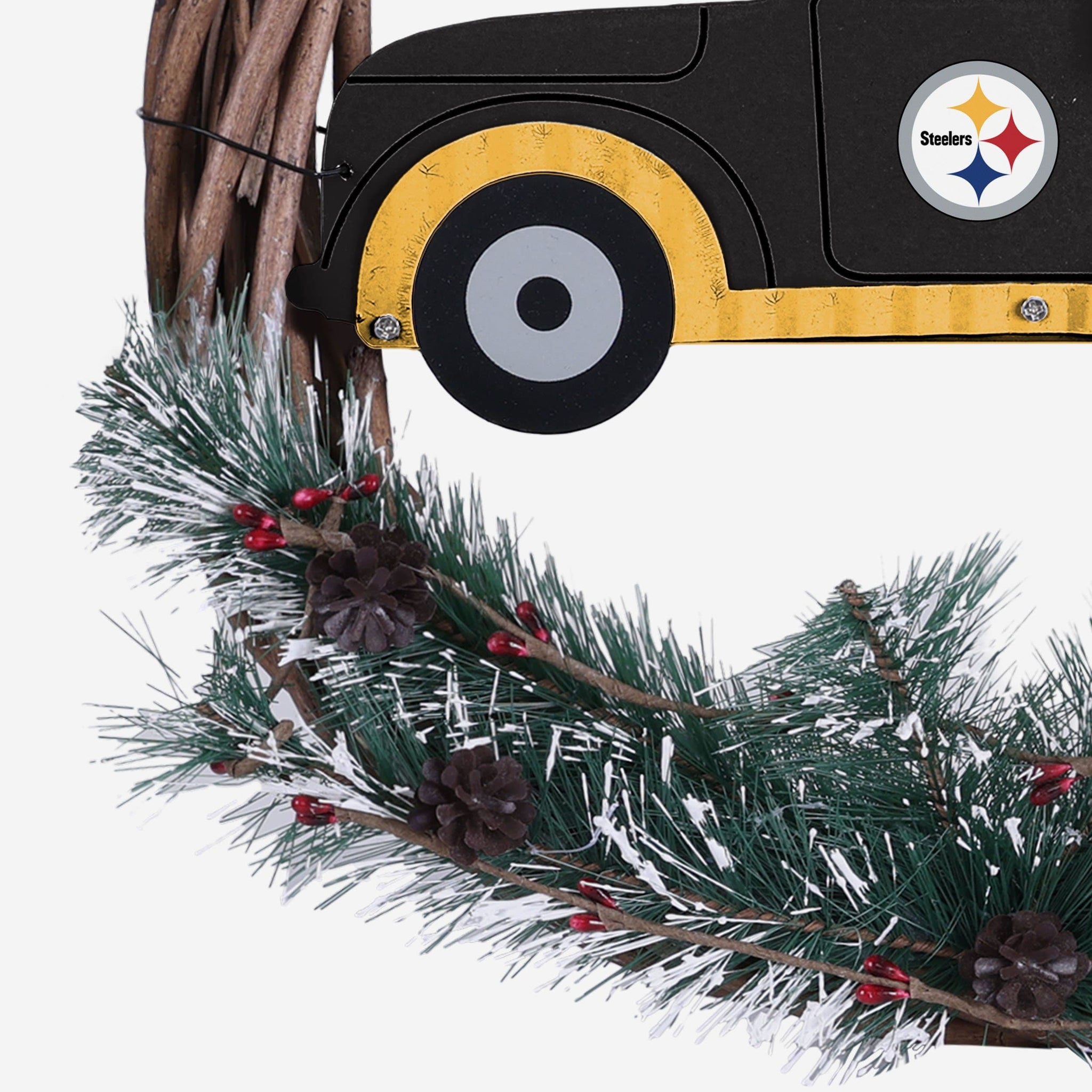 Special delivery! Hit the gas and zoom into the holidays by proudly displaying this Pittsburgh Steelers Wreath with Truck when you're decorating your home!
