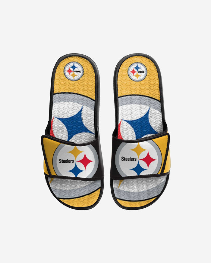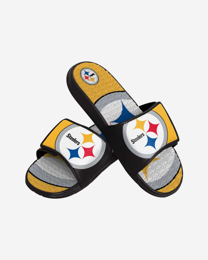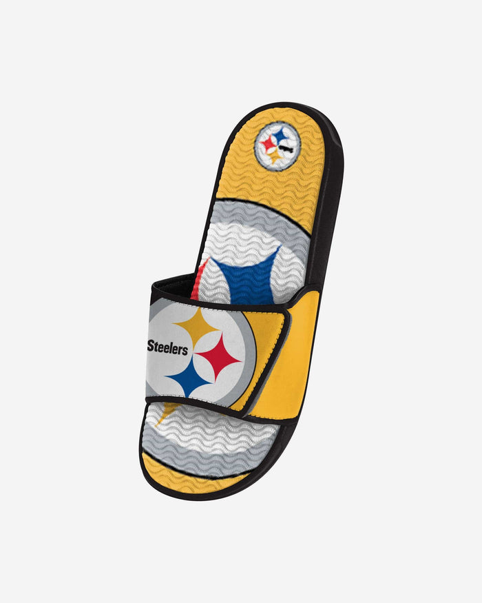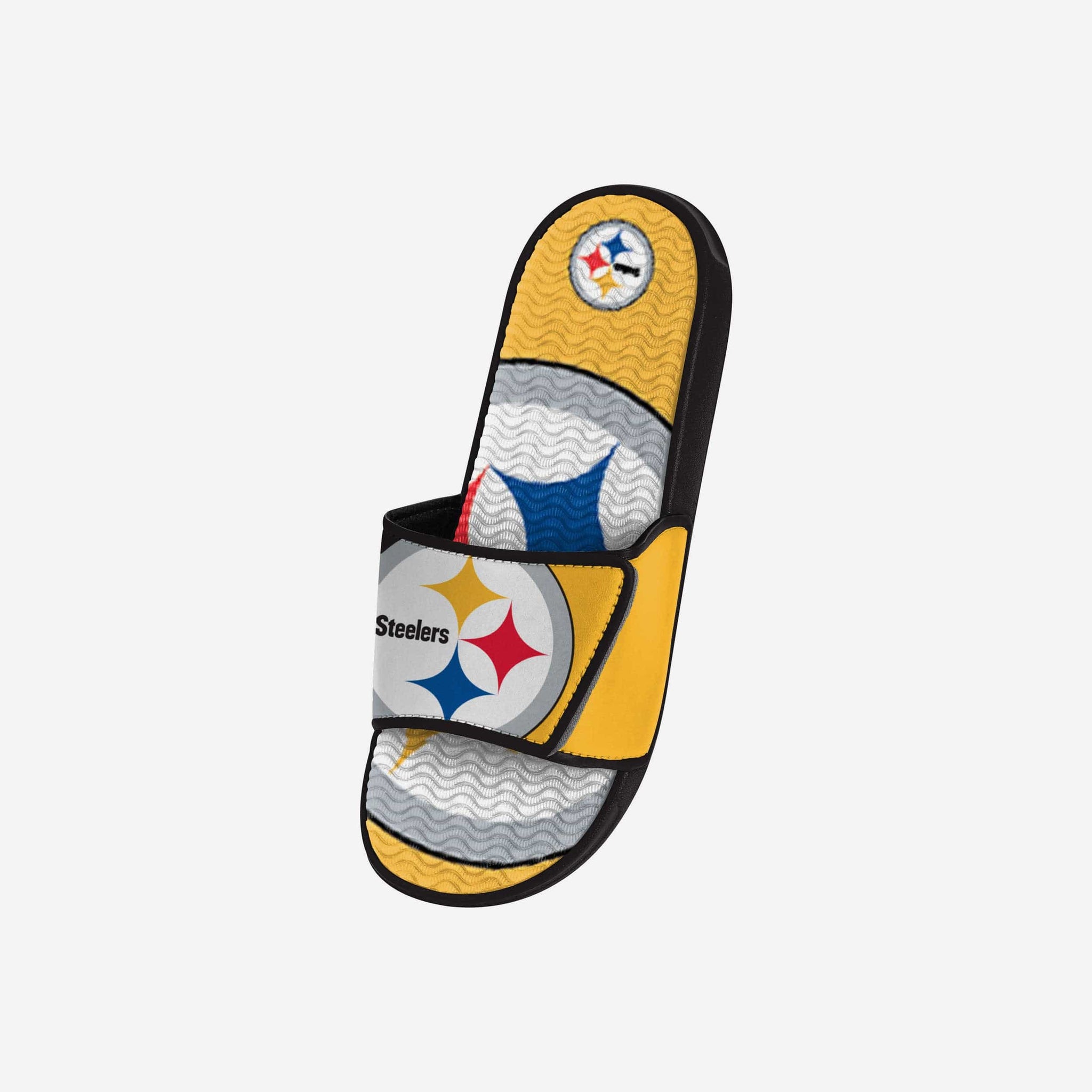 From stadium stands to sandy shores, your young fan will be ready to step INTO the comfort zone thanks to these Pittsburgh Steelers Youth Colorblock Big Logo Gel Slides!