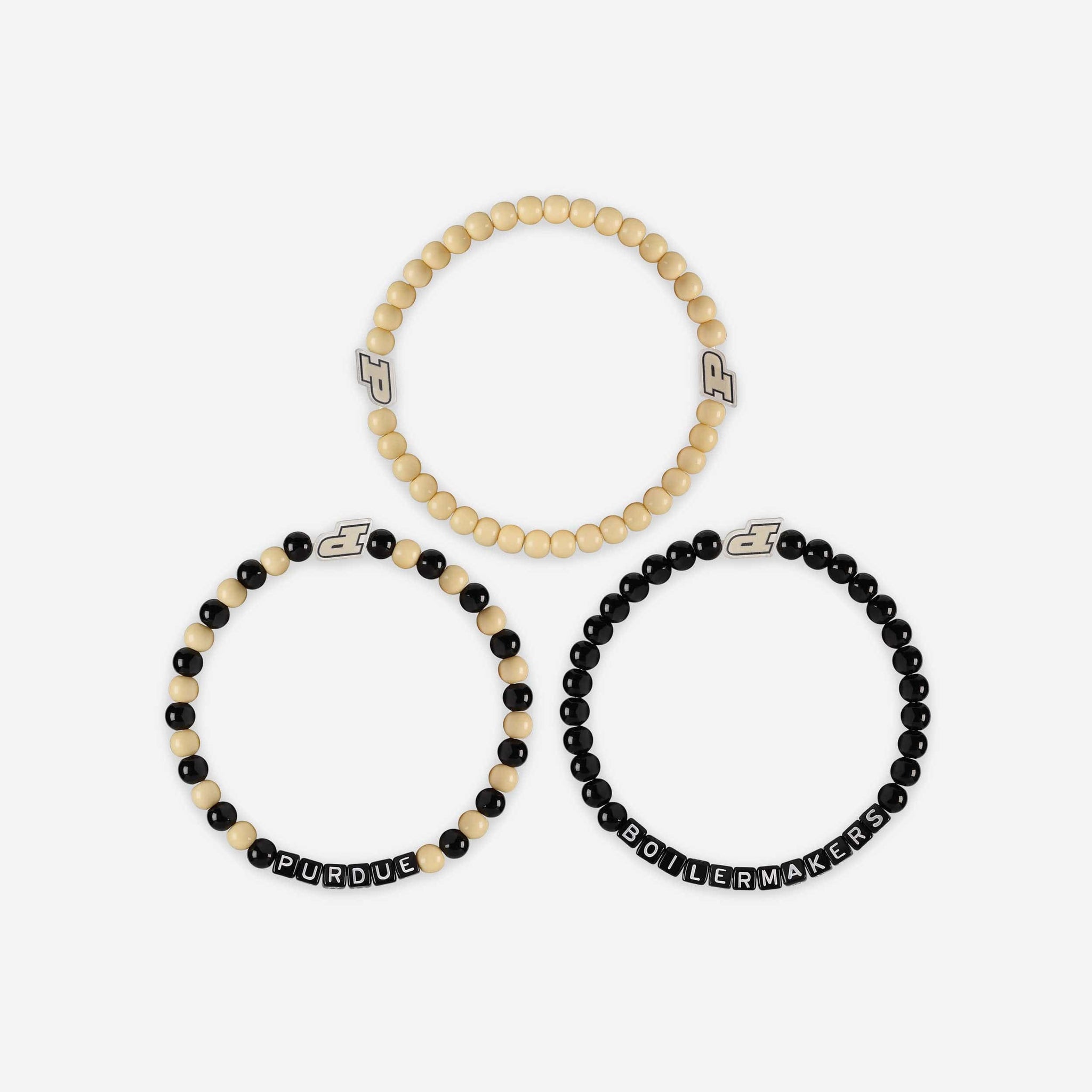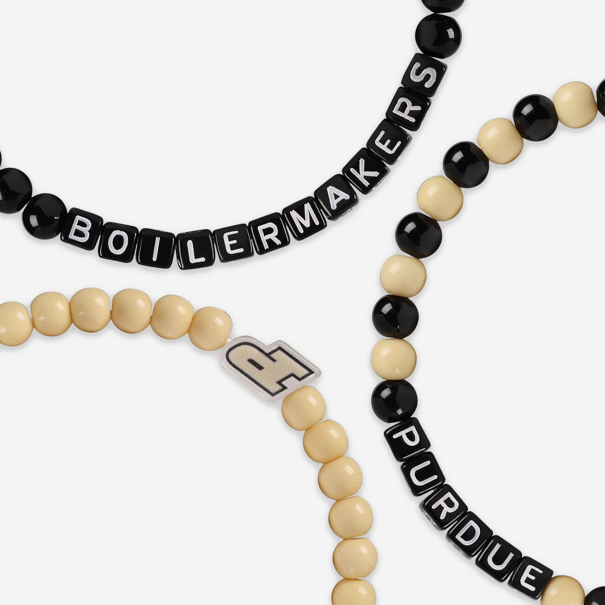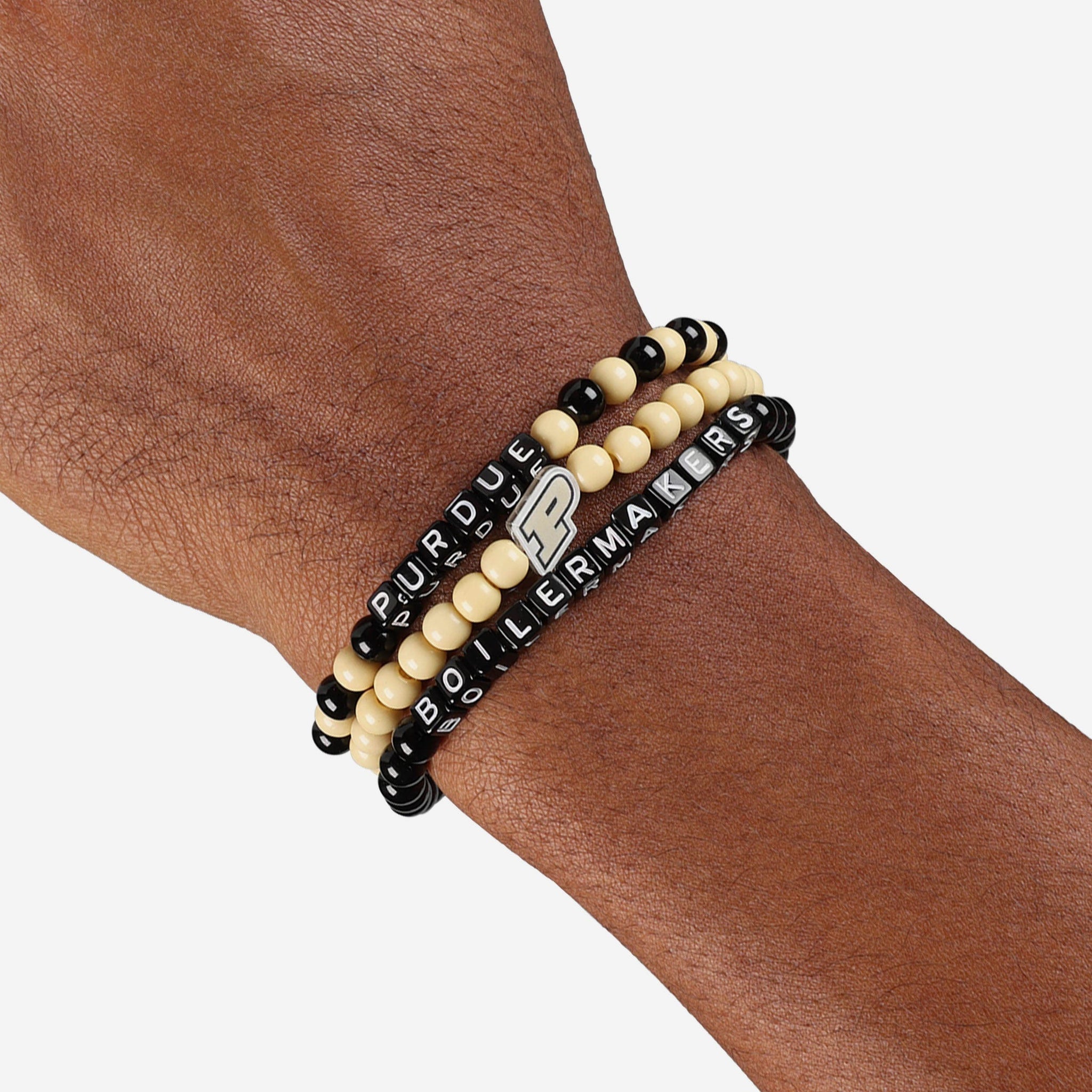 A whole new way to rep the team in style is here. Step up your fan fashion sense with this Purdue Boilermakers 3 Pack Beaded Friendship Bracelet. These matching friendship bracelets have an all-over team-colored design and team logo displays, which makes them the perfect way to show your support for the Purdue Boilermakers on gamedays and every day in between.