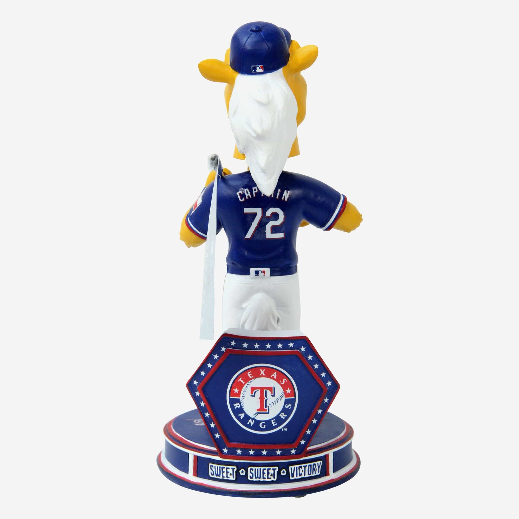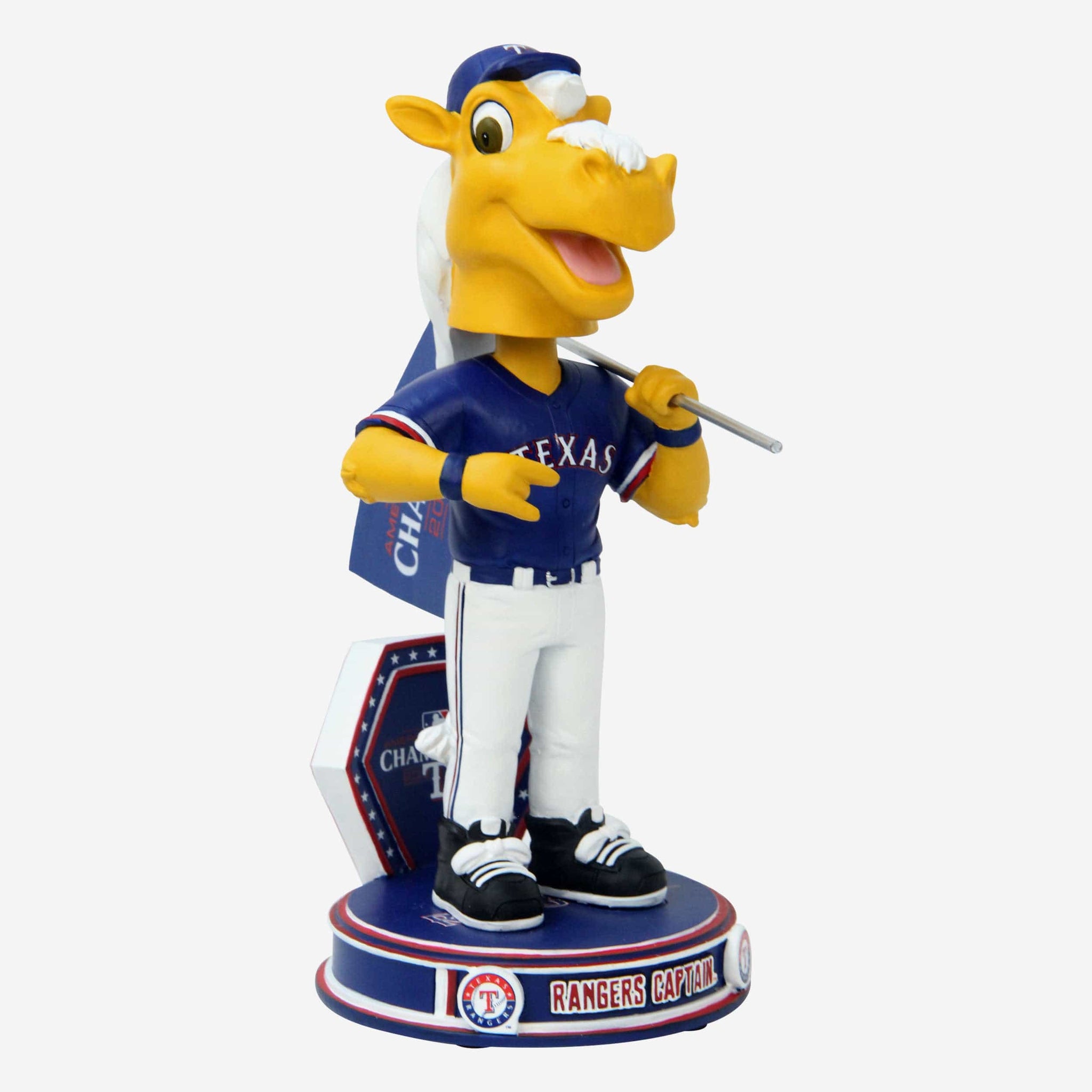 Sweet, sweet victory. Savor the historic pennant win with the Rangers Captain Texas Rangers 2023 American League Champions Mascot Bobblehead.