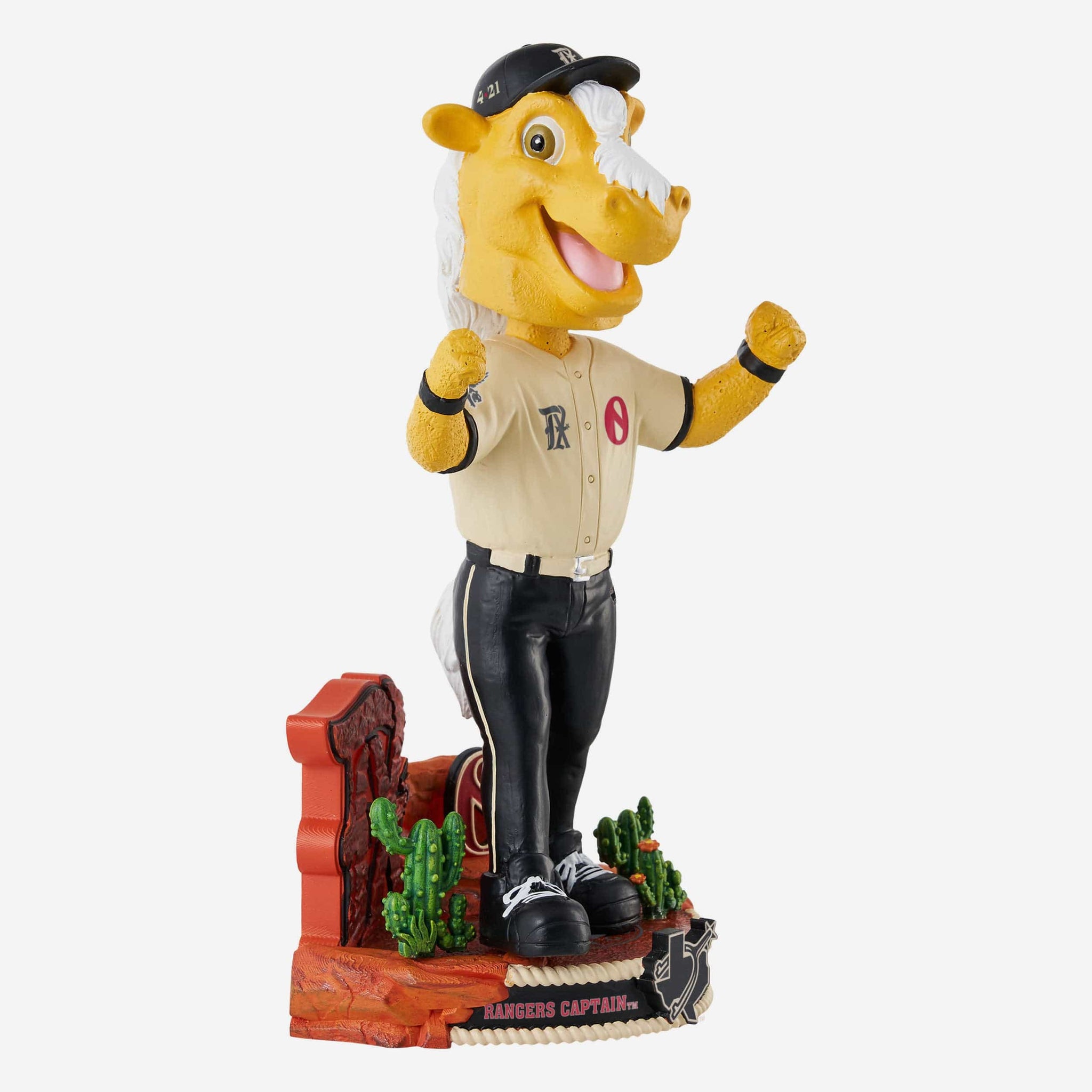 Gotta see where you've been to know where you're going. Saddle up and ride through baseball history with the Rangers Captain Texas Rangers 2023 City Connect Mascot Bobblehead.