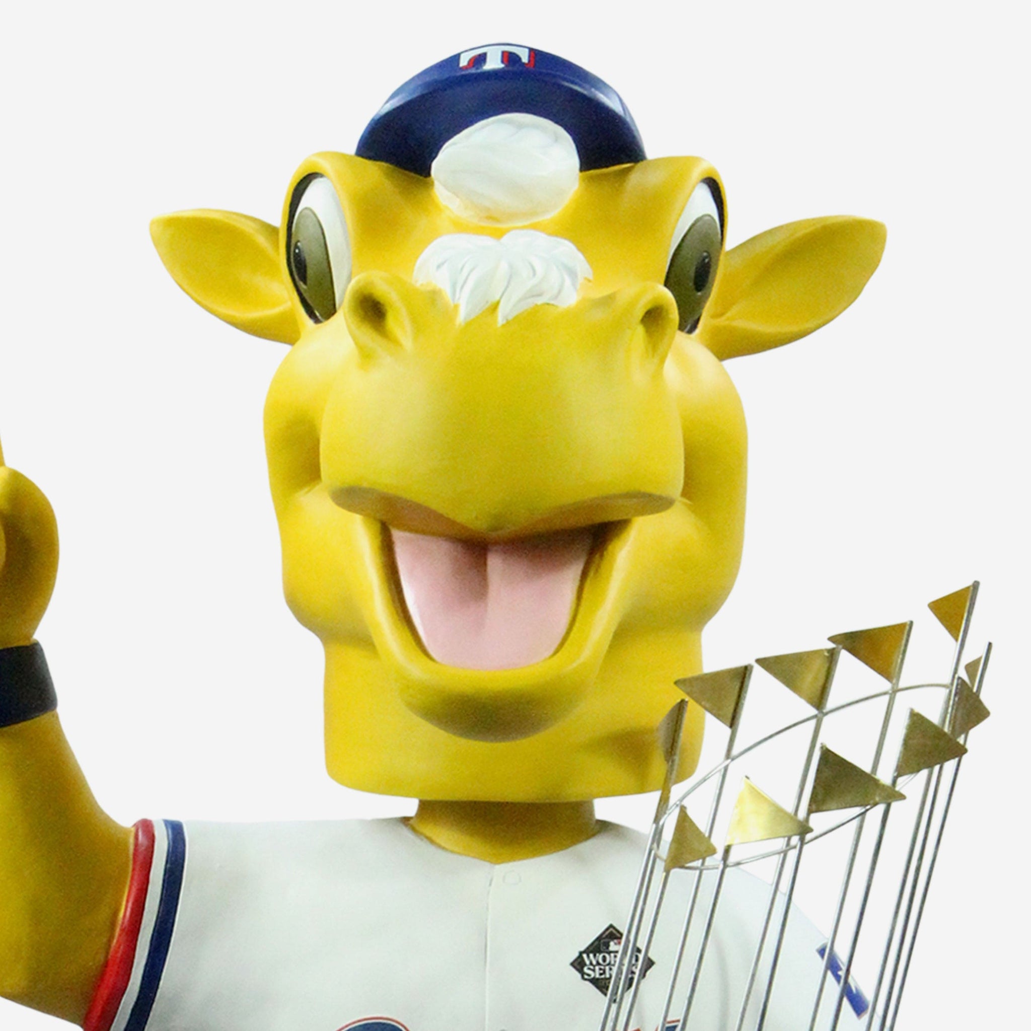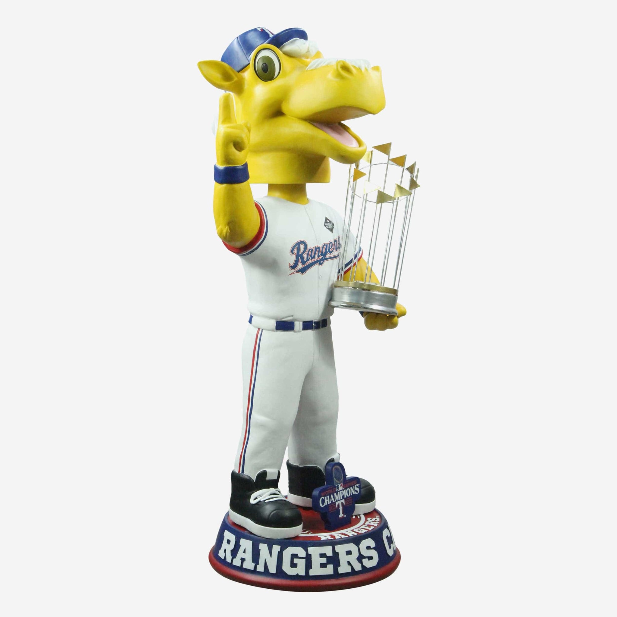• Portrays Rangers Captain wearing his gameday uniform and holding World Series championship trophy, because you've gotta show off the hardware