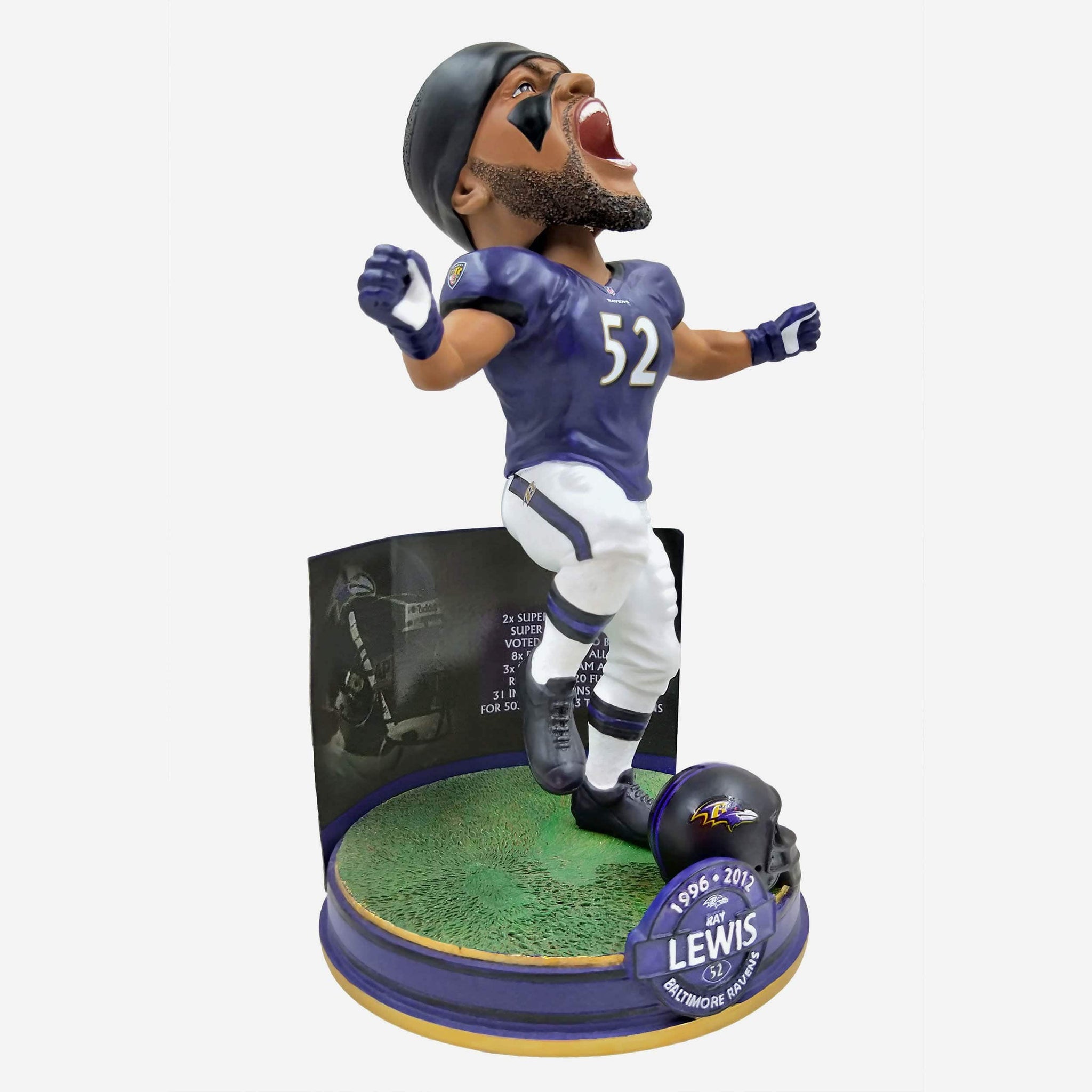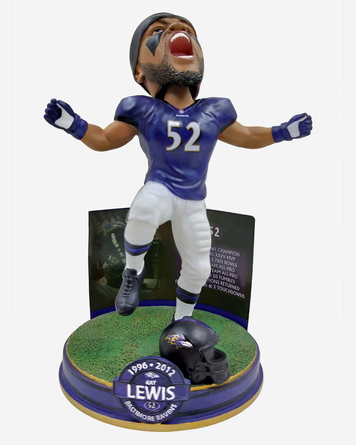 Everyone knows this guy is a legend. But do you remember just how much of a legend? Just check the stats. Which is made whole lot easier with this Ray Lewis Baltimore Ravens Career Stats Bobble.