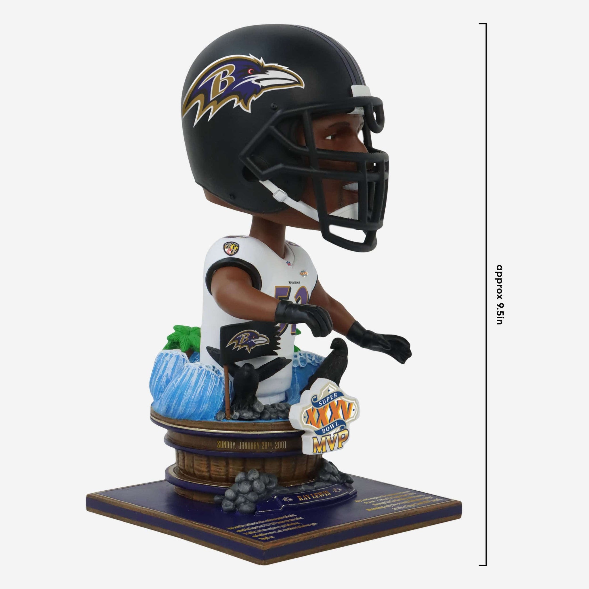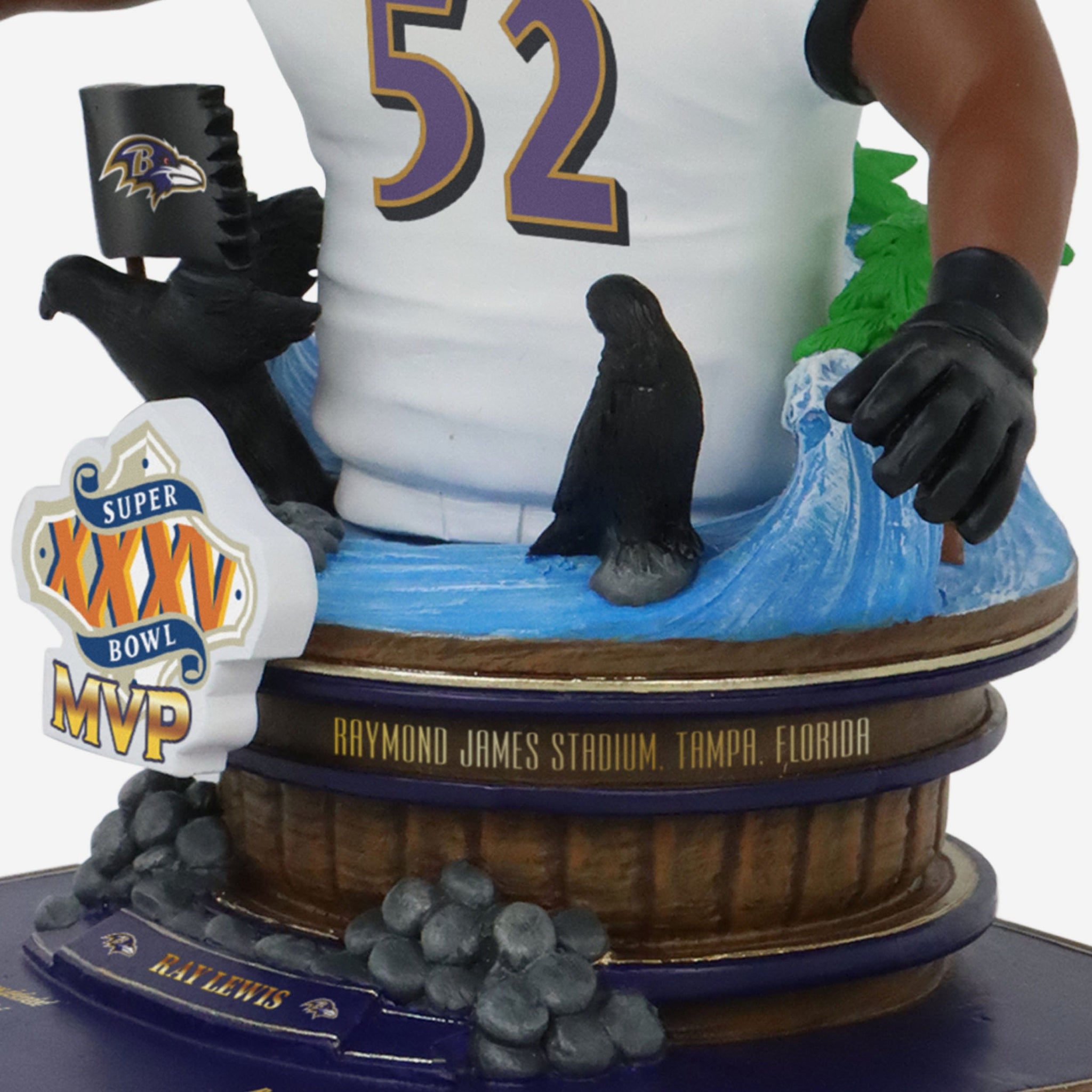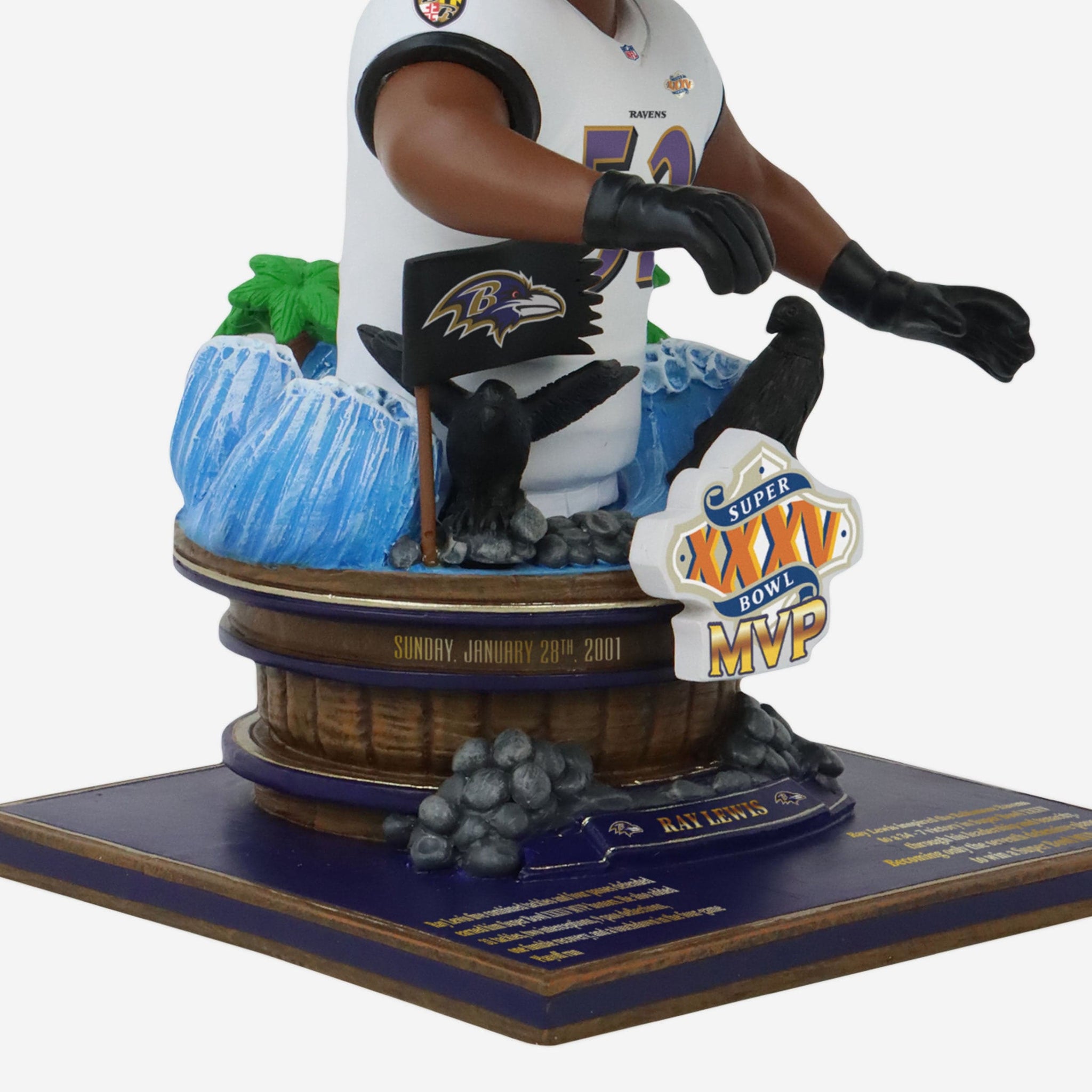 M-V-P! M-V-P! Turn back the clock and show off a "Super" player from the past with this Ray Lewis Baltimore Ravens Super Bowl XXXV MVP Bust Bighead Bobblehead.