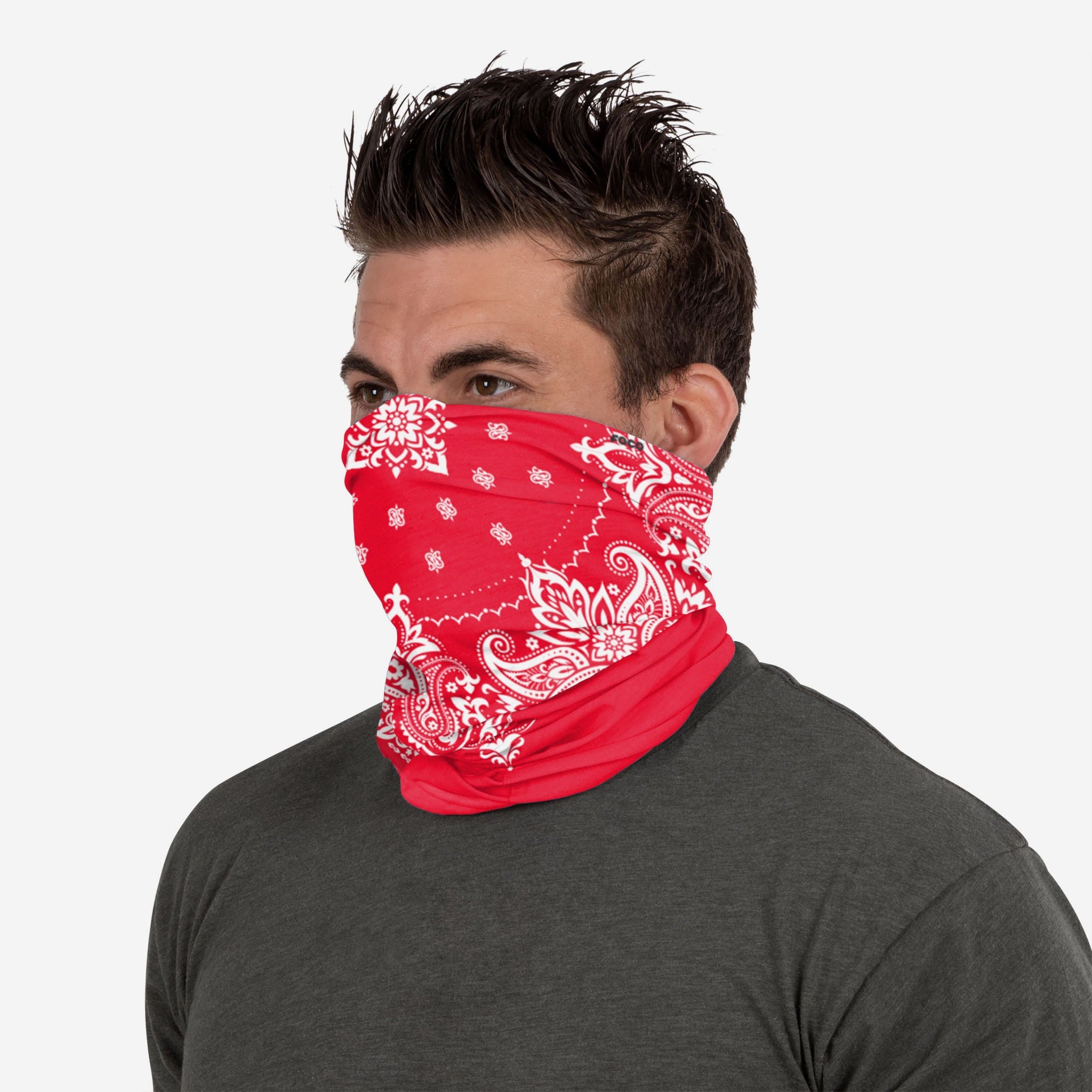 This Red and White Bandana Printed Gaiter Scarf will keep your neck covered with lightweight, breathable material and help you cover up in style whenever you put it on!