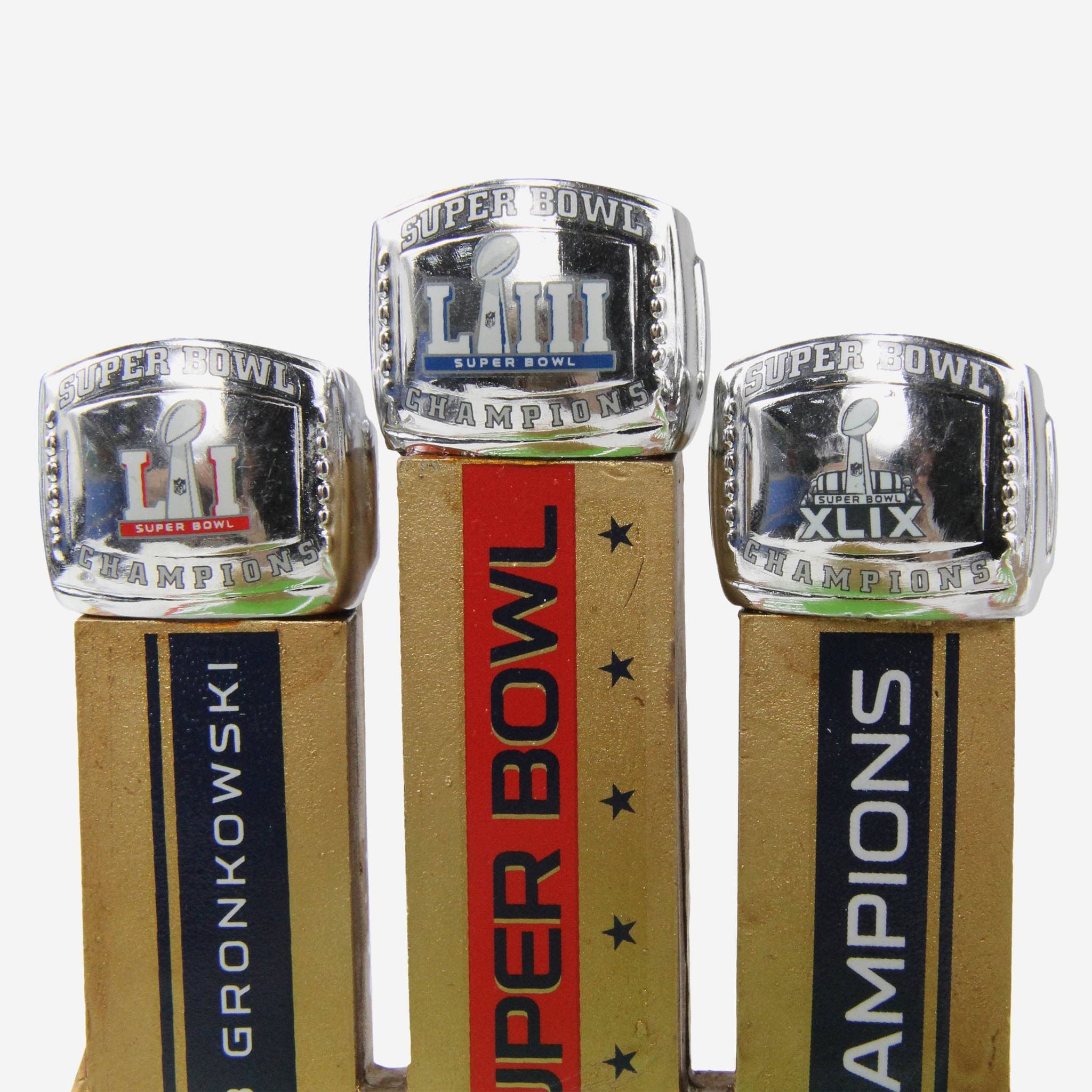 - Each ring features Super Bowl logo and score of game to remind you of those epic victories