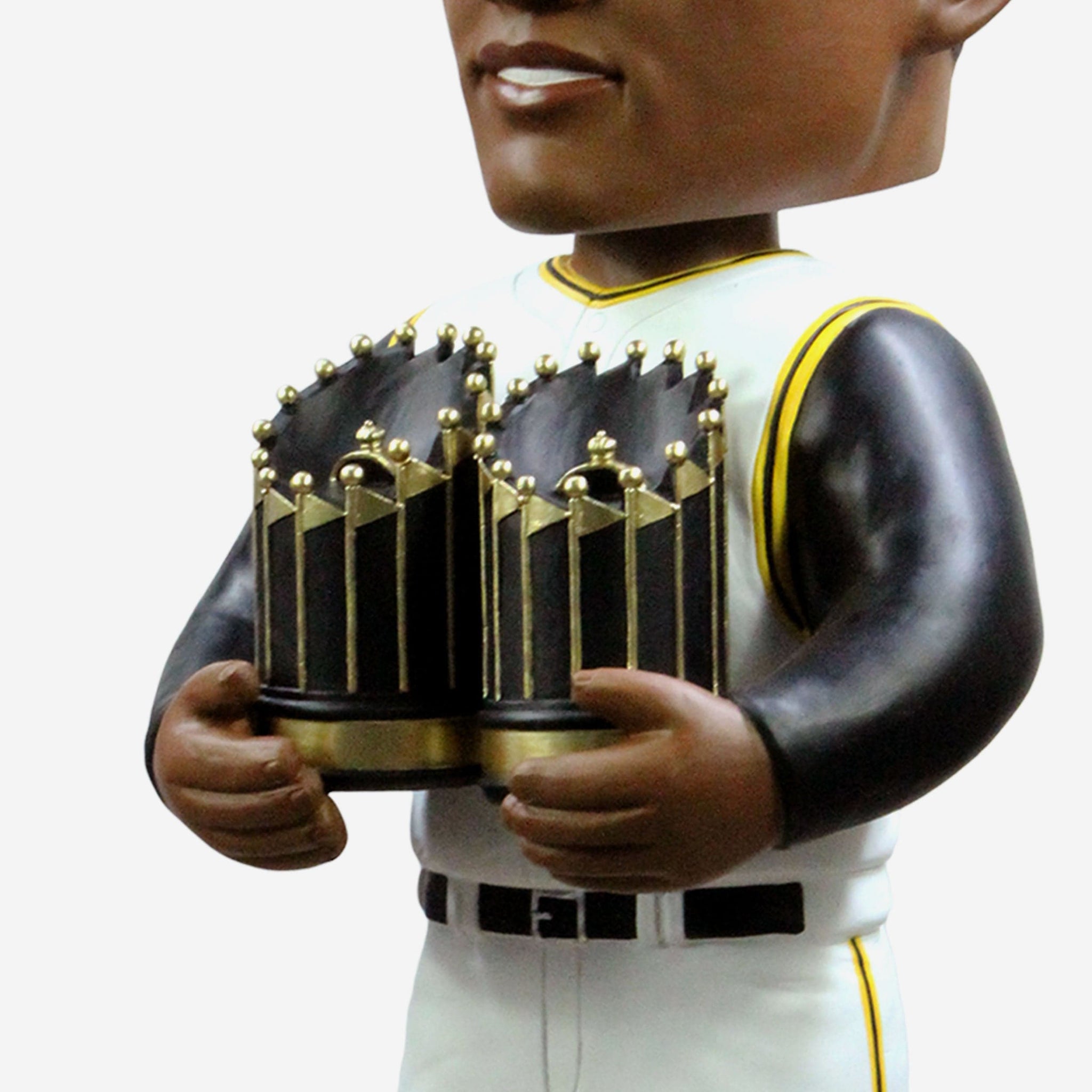 This legendary Bucco is setting sail for some big treasure. Celebrate Clemente in a big way with the Roberto Clemente Pittsburgh Pirates 2x World Series Champion 3 Ft. Bobblehead.
