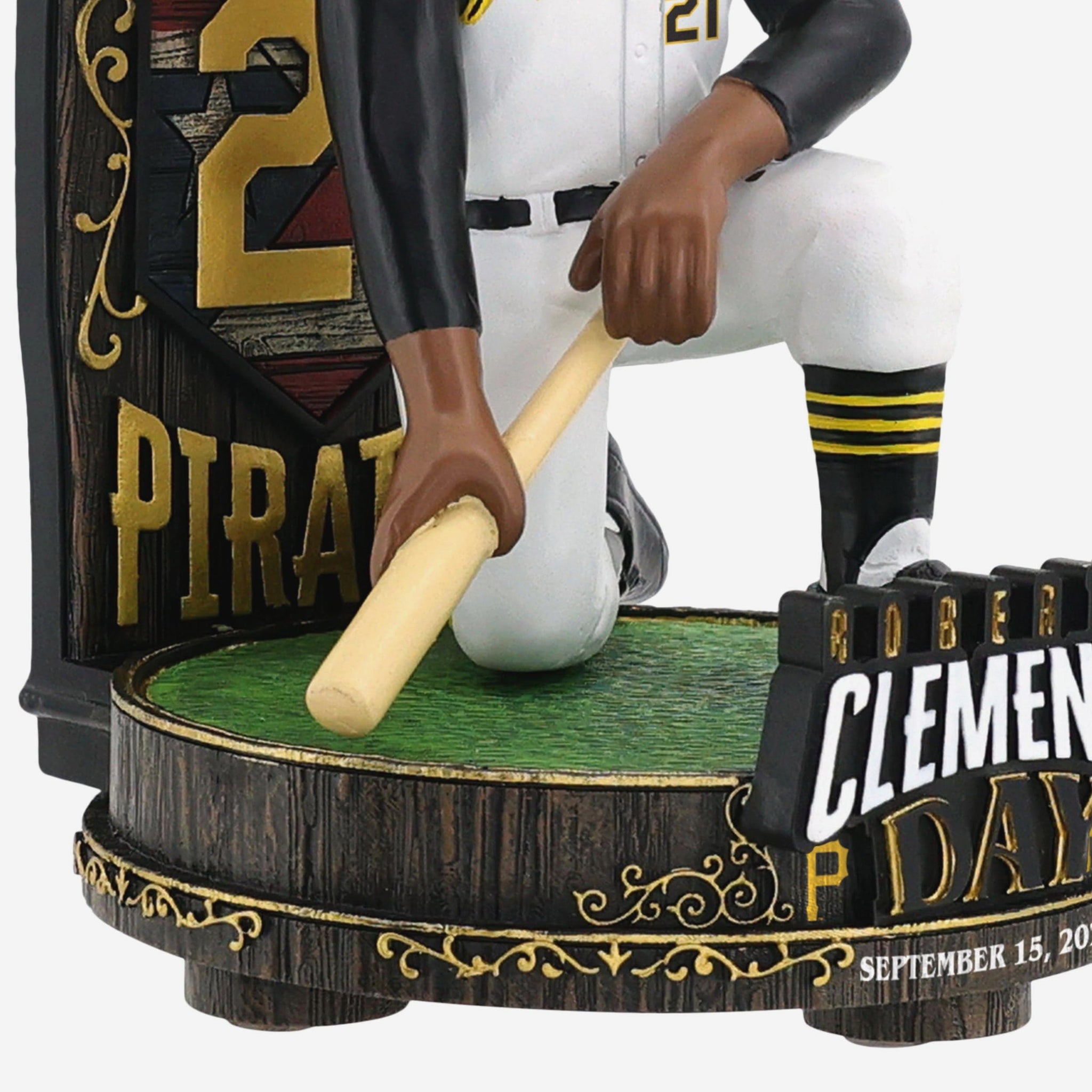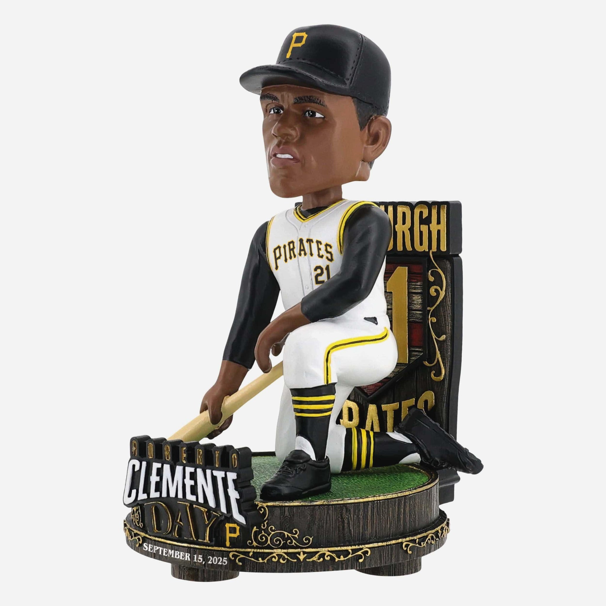 - ”ROBERTO CLEMENTE DAY” text display on front of base, paying tribute to a legend