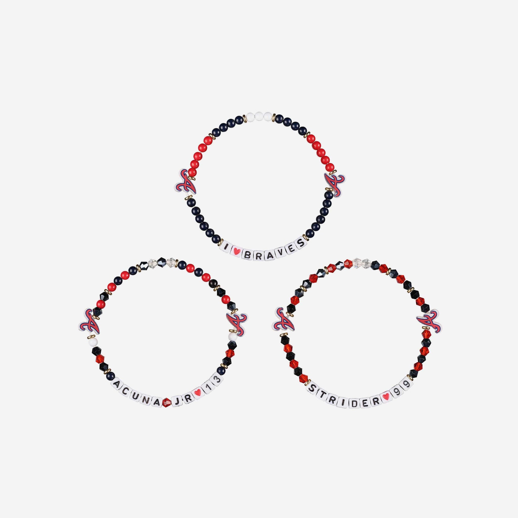 Accessorize and maximize your fandom while impressing your fellow fans with this Ronald Acuña Jr. & Spencer Strider Atlanta Braves 3 Pack Player Friendship Bracelet. These matching friendship bracelets have an all-over team-colored design and team logo displays, which makes them the perfect way to show your support for the Atlanta Braves and get in on the latest accessory craze.