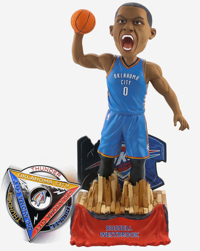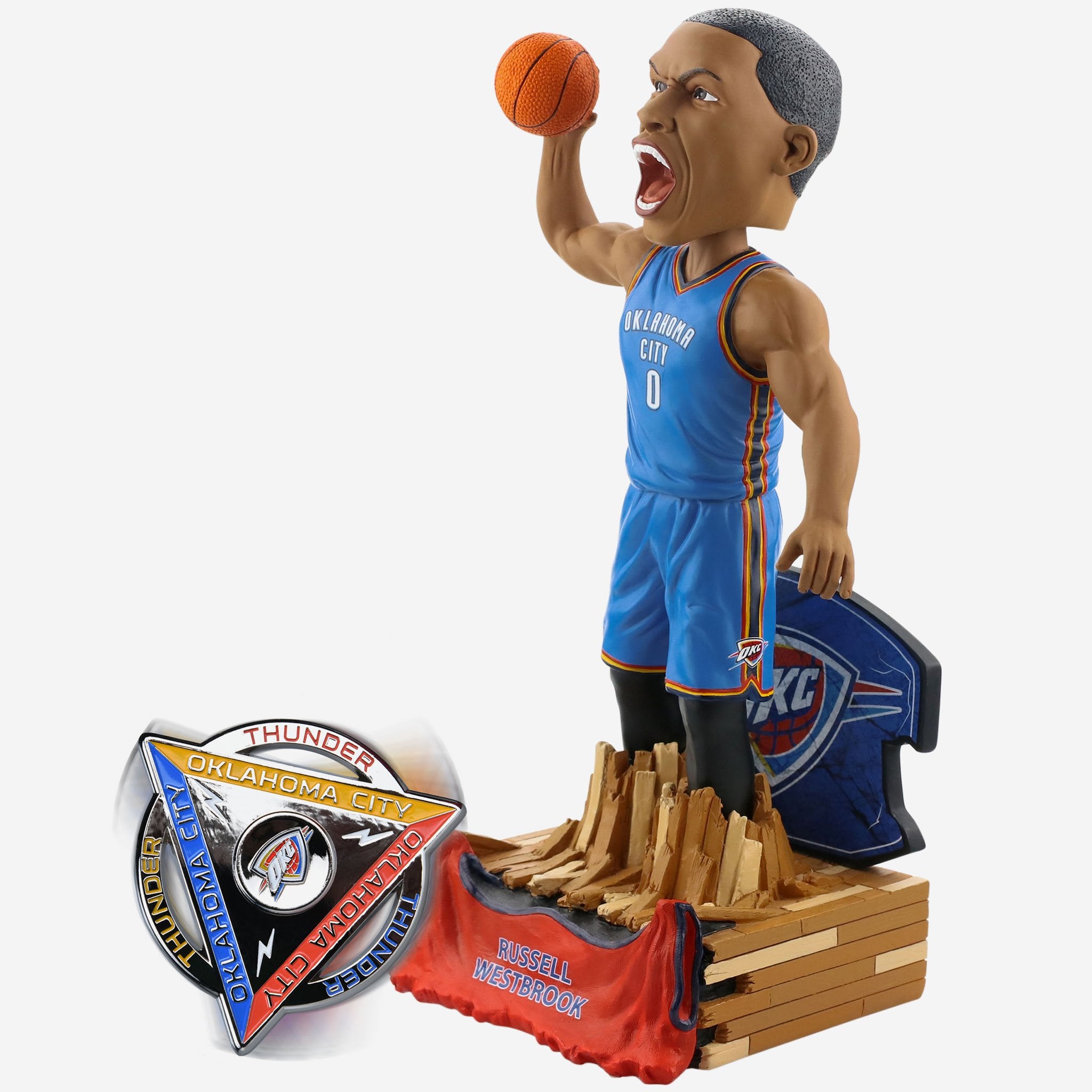 Russell Westbrook contributes all over the court. Points, rebounds, assissts, steals. He can do it all. Turns out he's also pretty good at adding some legendary Thunder fandom to the stat sheet. All that awesome is on display in this Special Edition Russell Westbrook Bobble. Armed with his epic playmaking ability and a metal fidget spinner, Russ is ready to make you the best Thunder fan around.