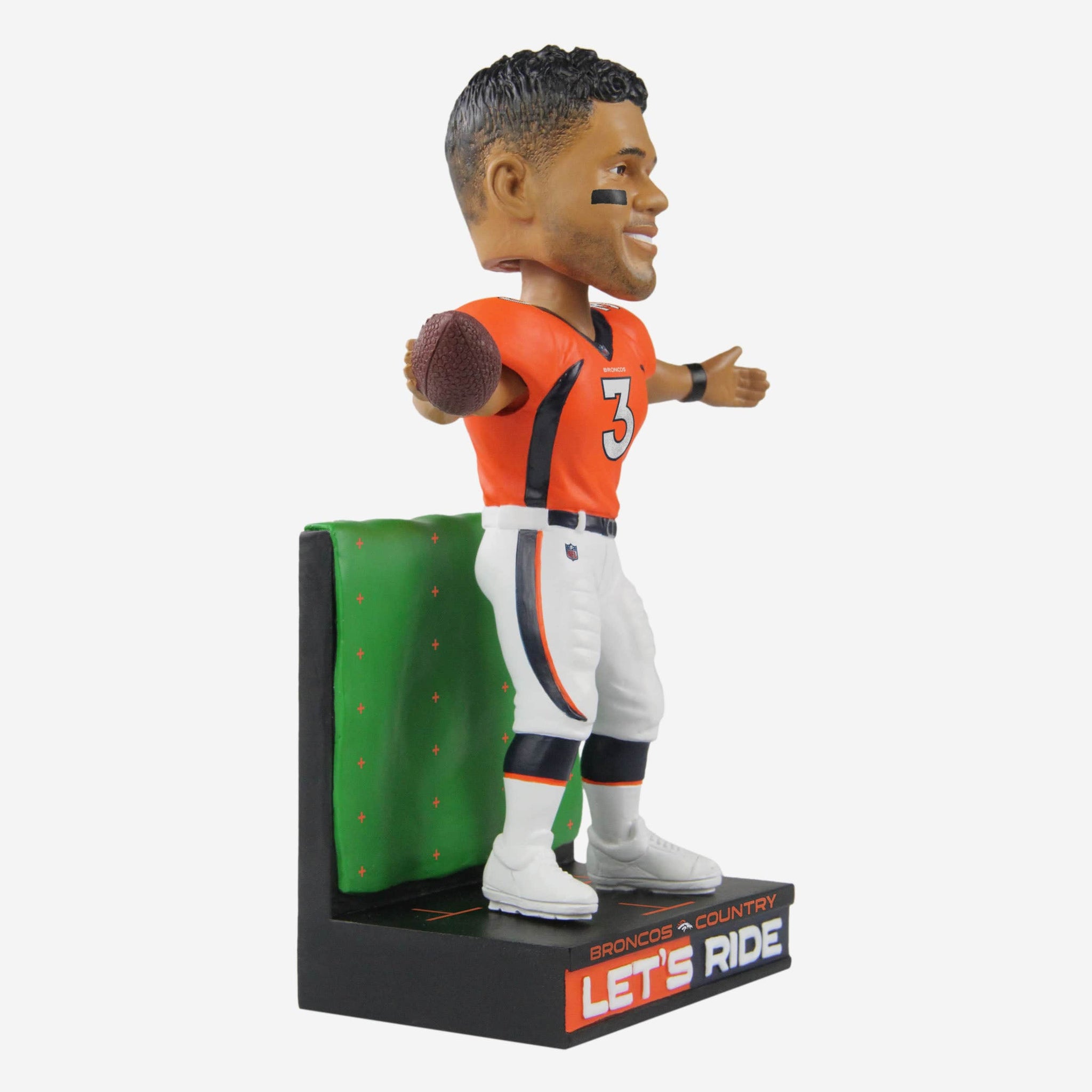 Broncos country, you know what time it is. Saddle up and get ready for a Dange-Russ ride with this Russell Wilson Denver Broncos Let's Ride Bobblehead.