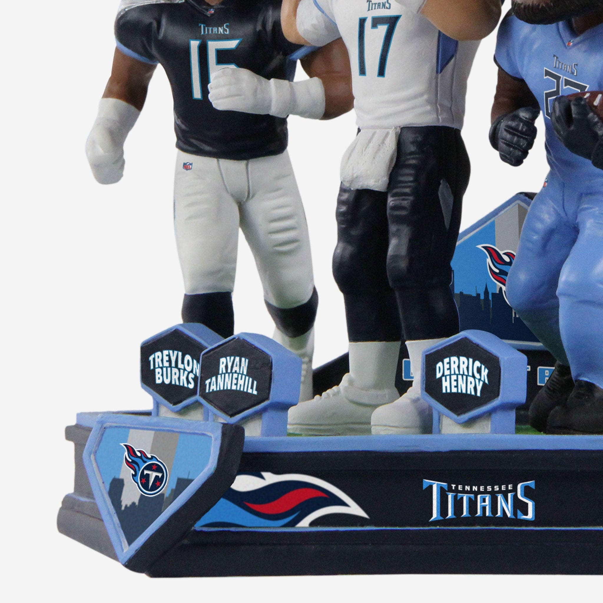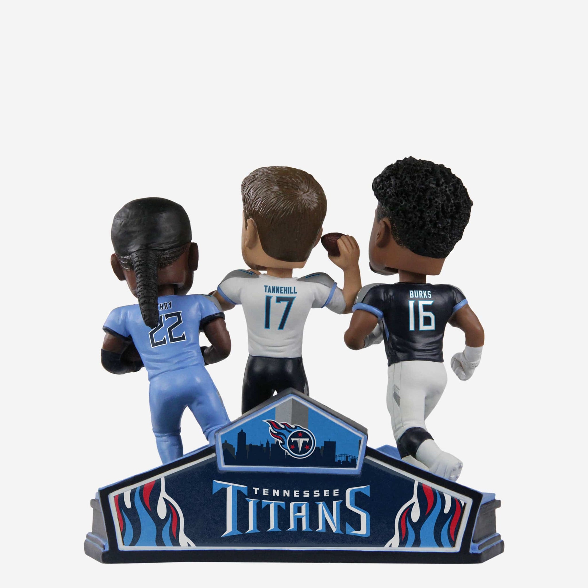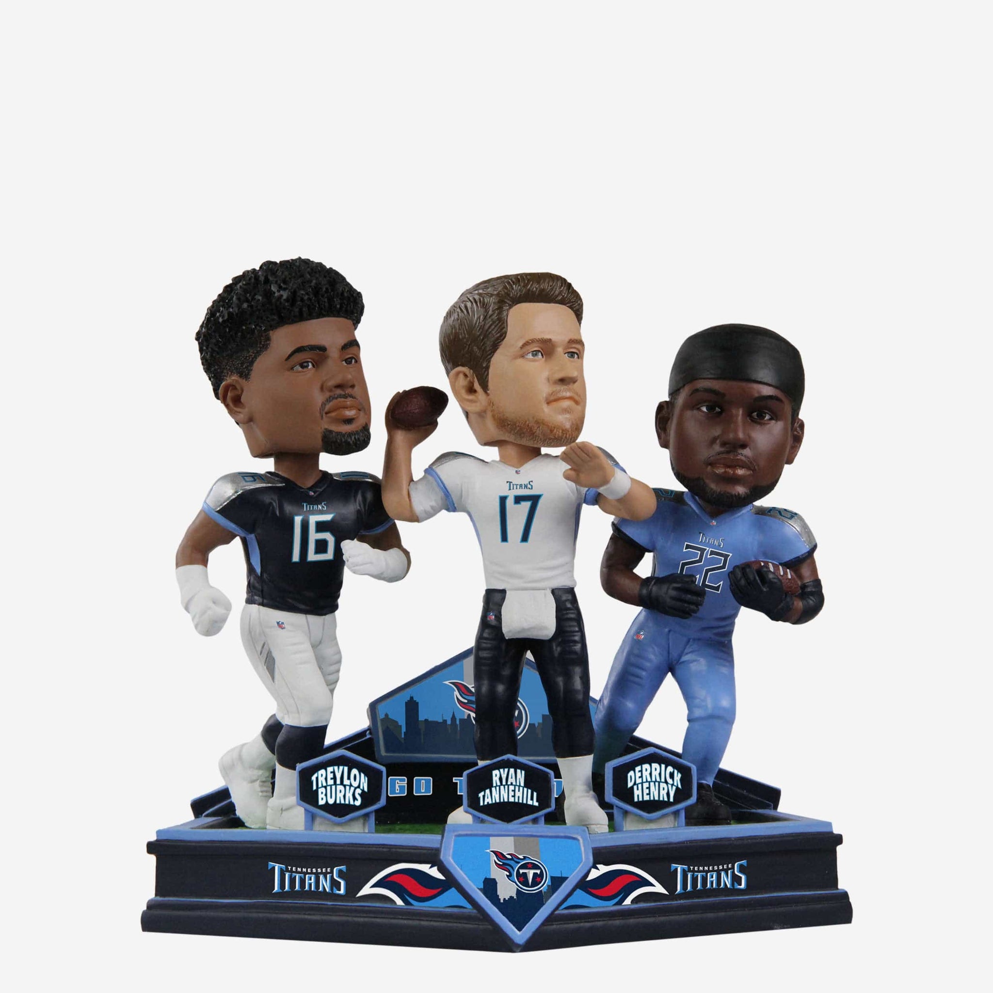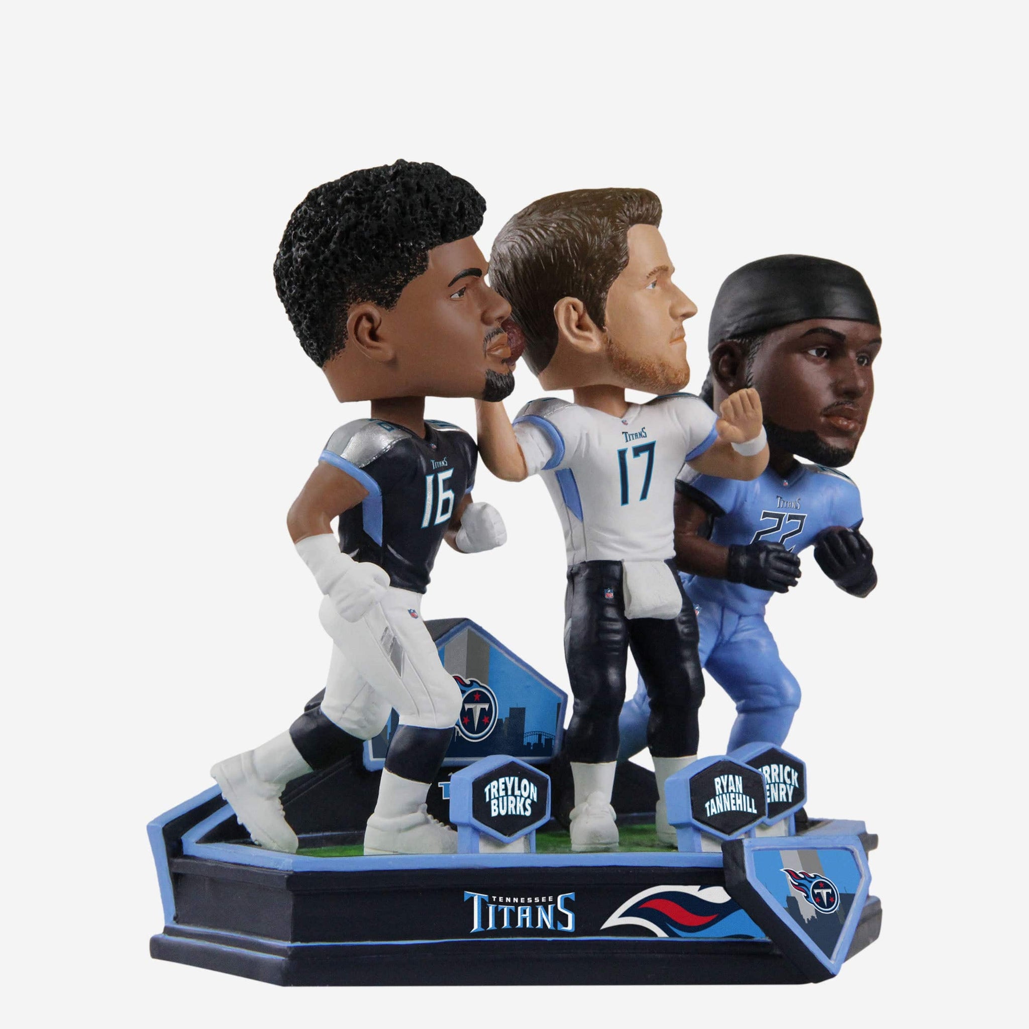 Titan up and triple dip with a trio of stars! The Ryan Tannehill & Derrick Henry & Treylon Burks Tennessee Titans Triple Bobblehead is just what you need to shift this Nashville party into high gear.