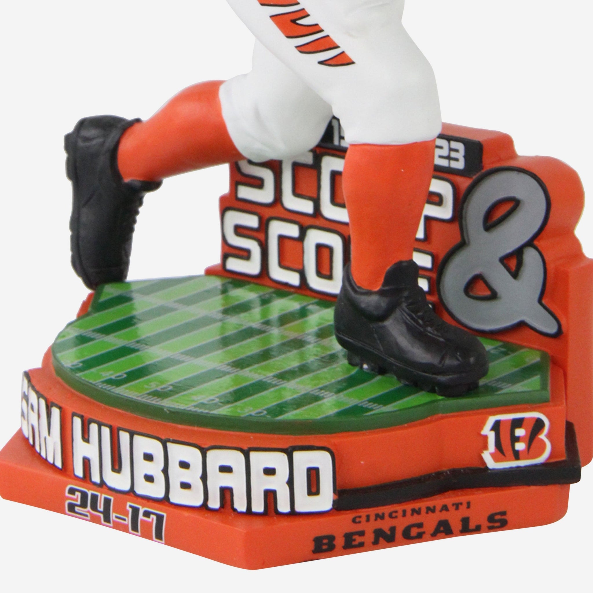 - Text display on reverse side of backdrop showcasing Hubbard’s historic play from the Bengals’ Wild Card Round victory so you can celebrate his scoop 'n' score from all angles