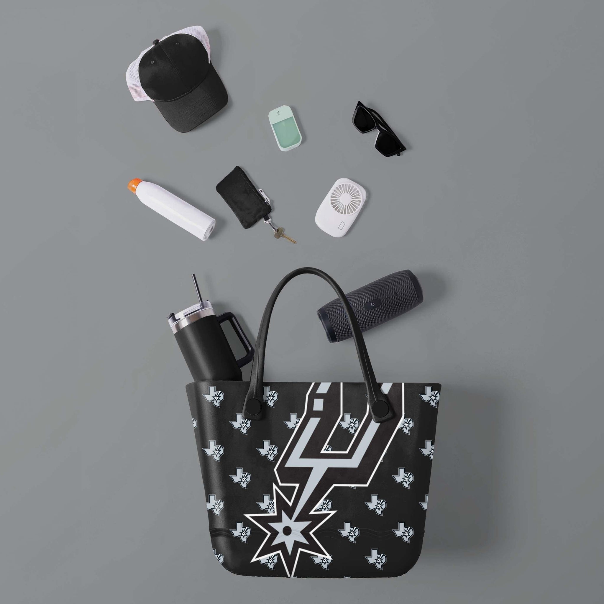 Looking for a bag as durable and dependable as your team spirit? You've found it. Whether you're running the tailgate, hitting the beach, or going on any adventure, pack up your fandom and take it on the go with this San Antonio Spurs Big Logo Mini Print Tailgate Tote Bag.