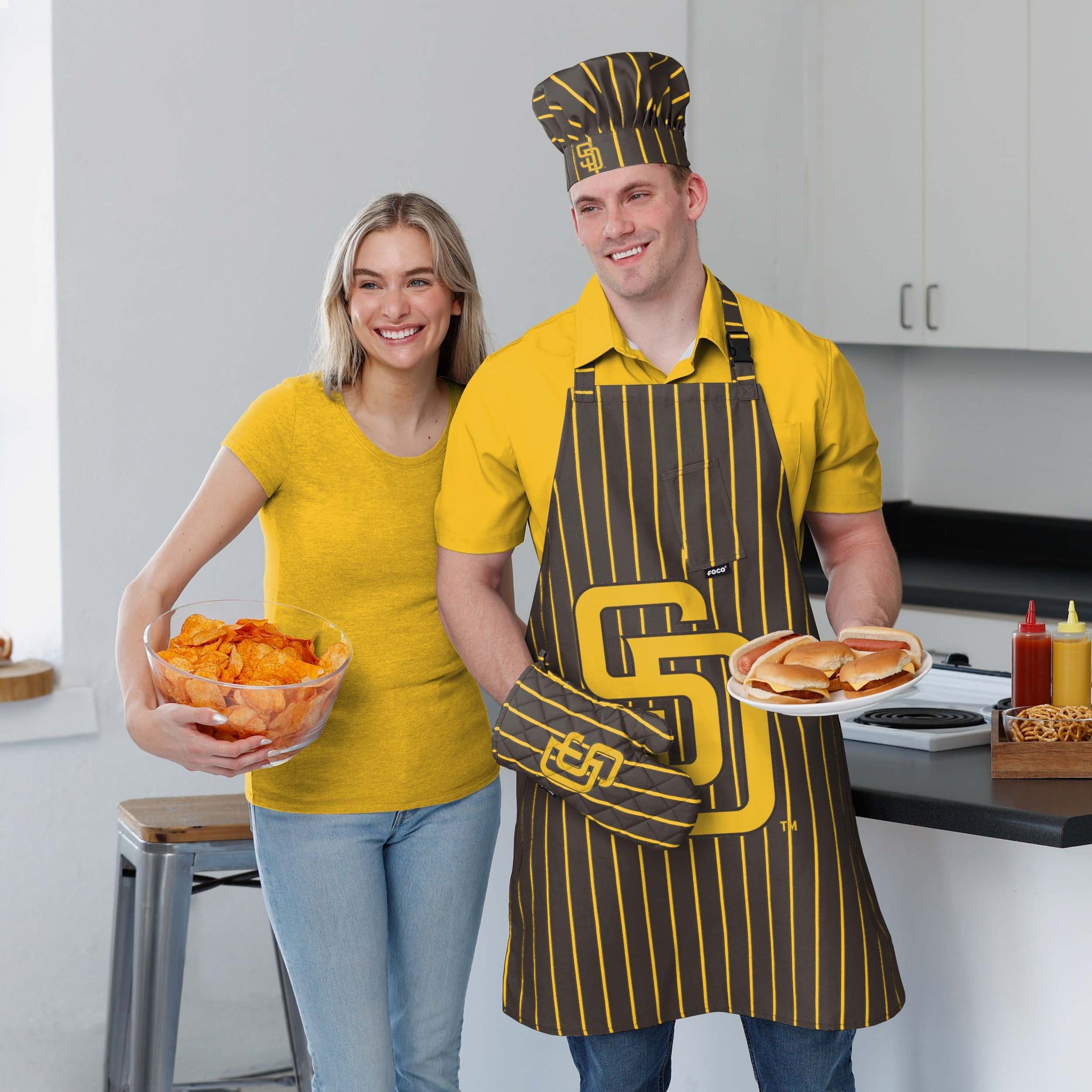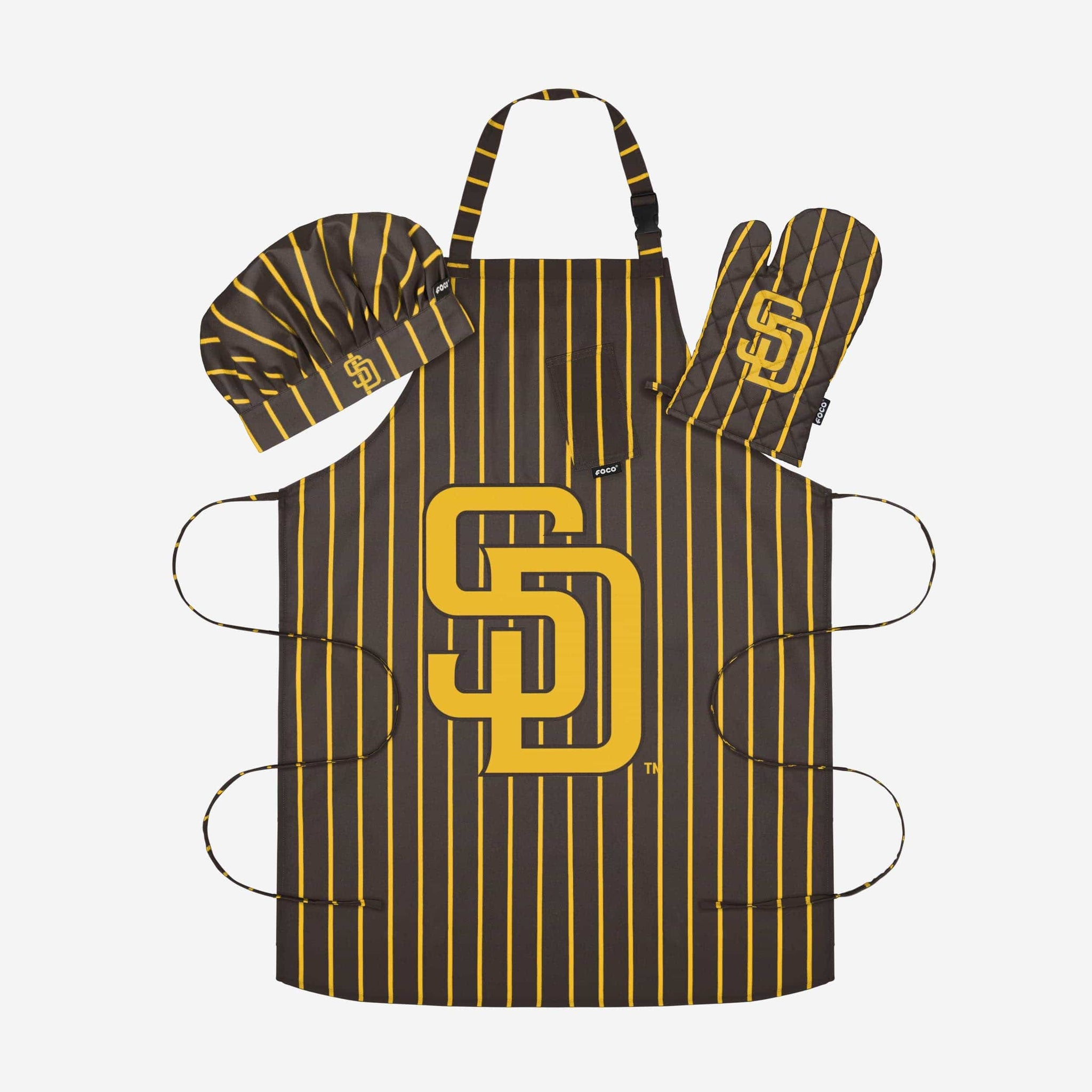 Get ready to serve up the best food in the greatest fan fit. From the kitchen to the table, to game day, do it all in style with the San Diego Padres Pinstripe Chef Set.
