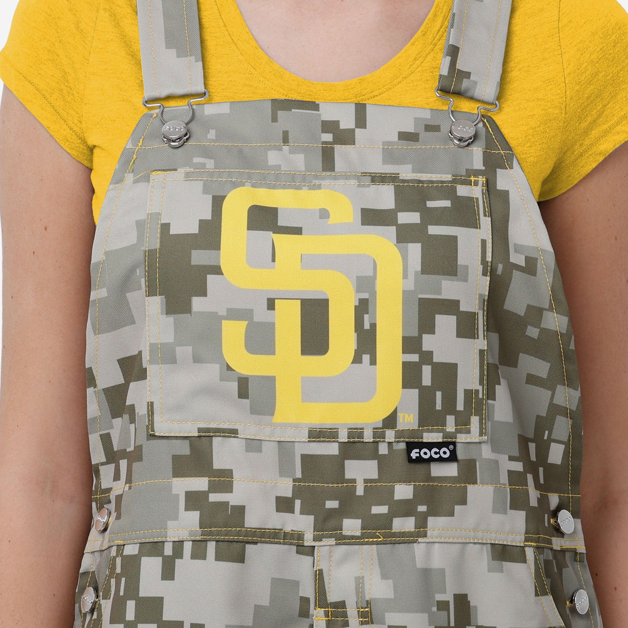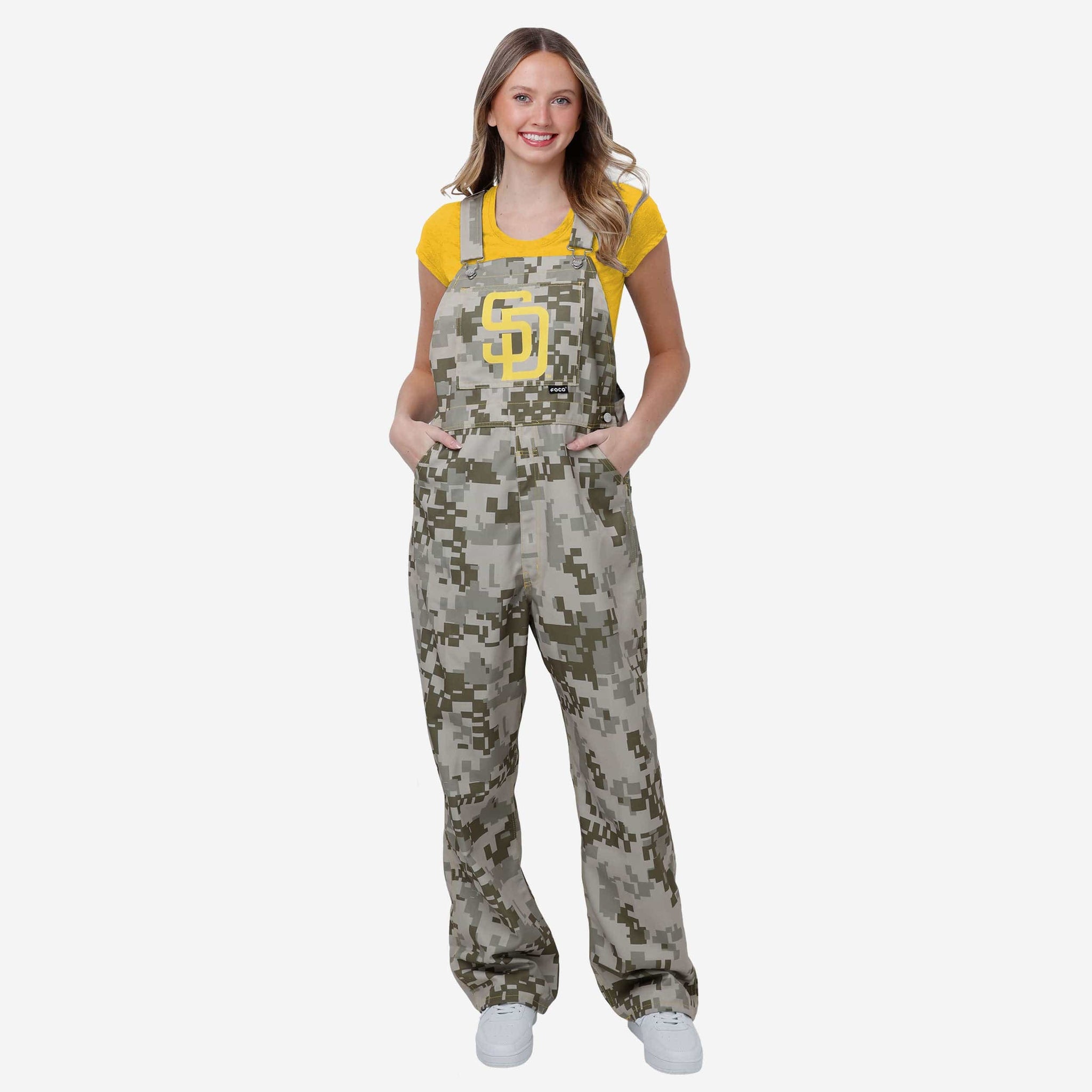 Show your team spirit in these stylish and comfortable San Diego Padres Women's Digital Camo Thematic Bib Overalls. With their all-over team-colored design and bold team logo display, these overalls are the perfect way to show your support for the San Diego Padres while showing off some team-specific style that will make sure your fan fashion stands above the rest at home, on the go, at the game, or wherever life takes you.