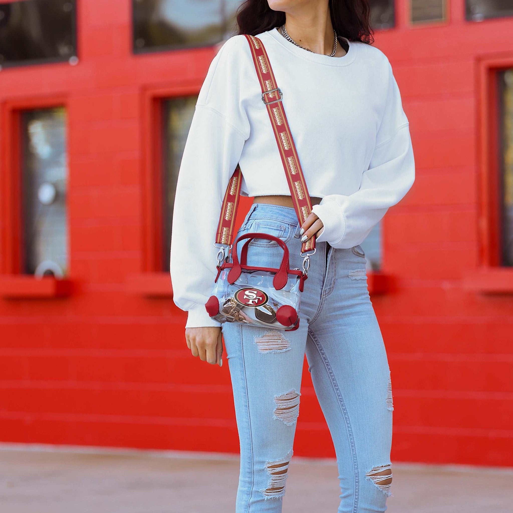 It's clear to see. Whether you've got it slung across your shoulder or held in your hands, this San Francisco 49ers Big Logo Clear Crossbody Mini Purse is the perfect accessory for displaying your fandom and keeping your stuff secure at the game.
