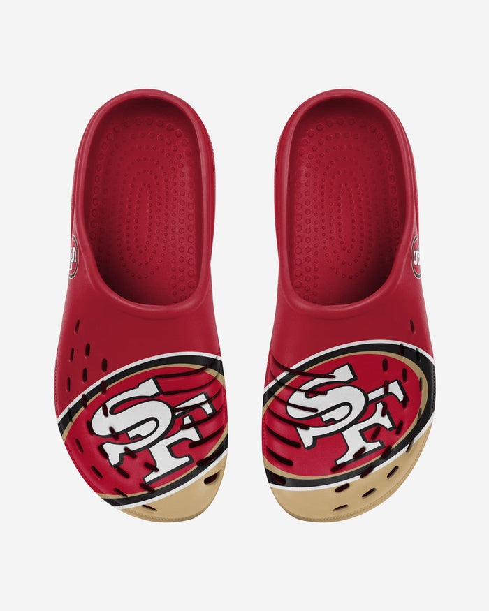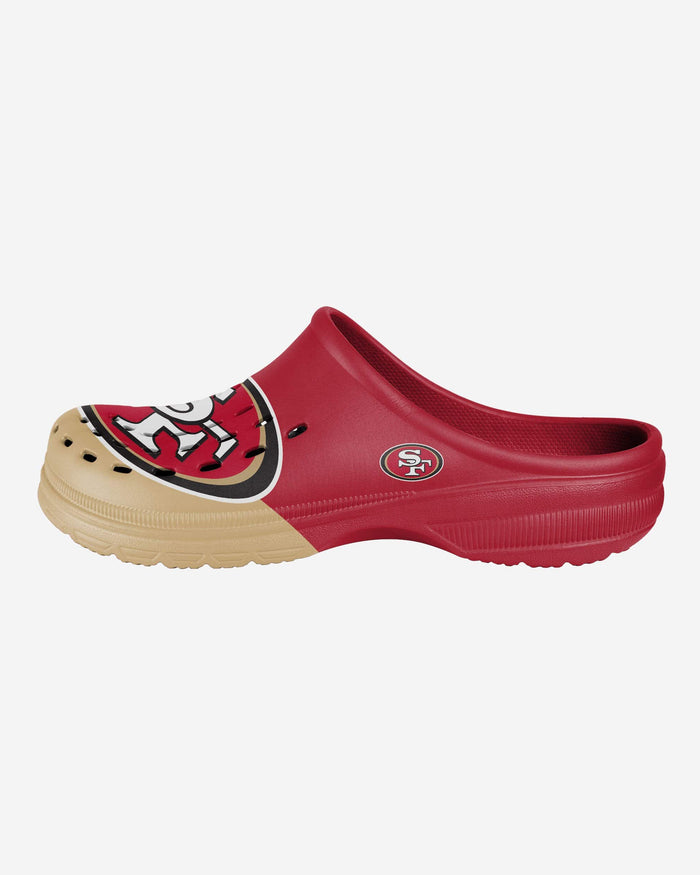Whether you're walking around the house, in the park, or to your favorite seat in the stadium ready to cheer your team on to victory, do it in style by rocking these San Francisco 49ers Colorblock Big Logo Clogs!