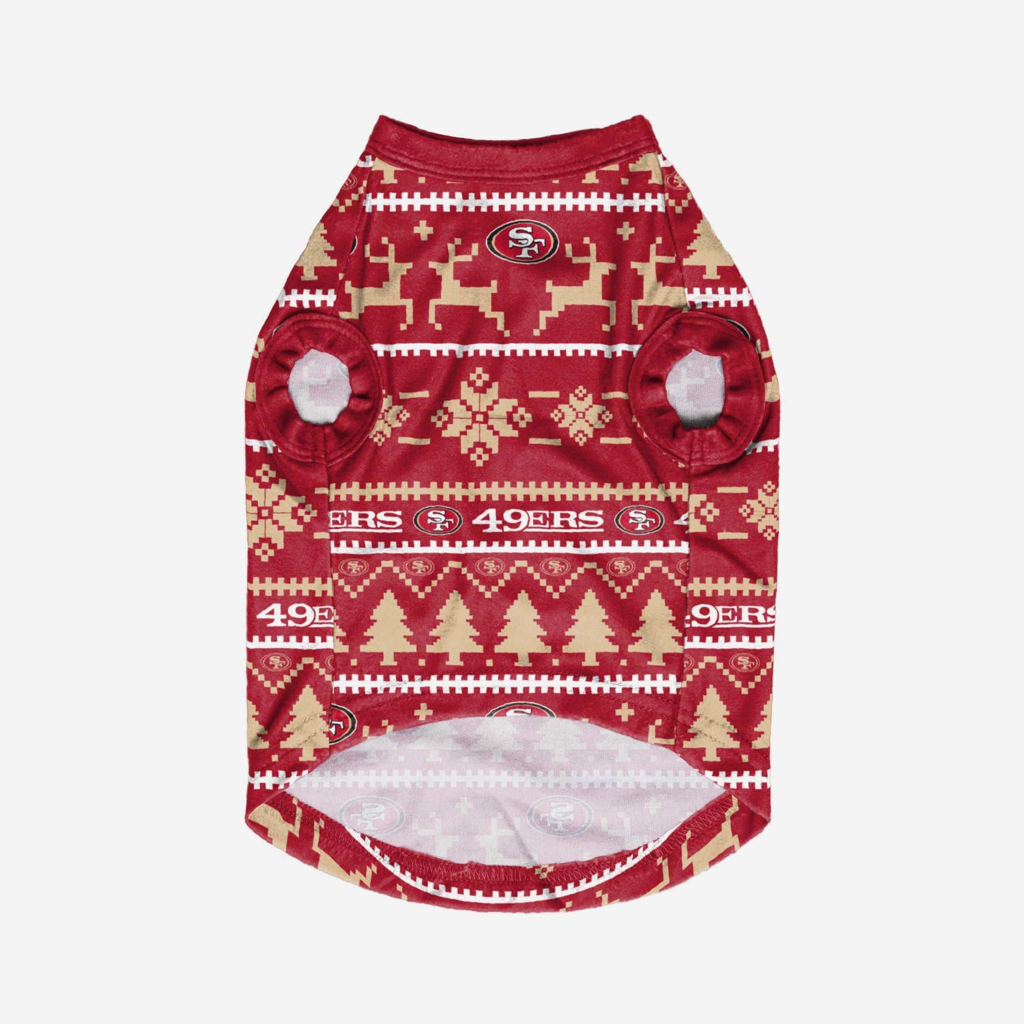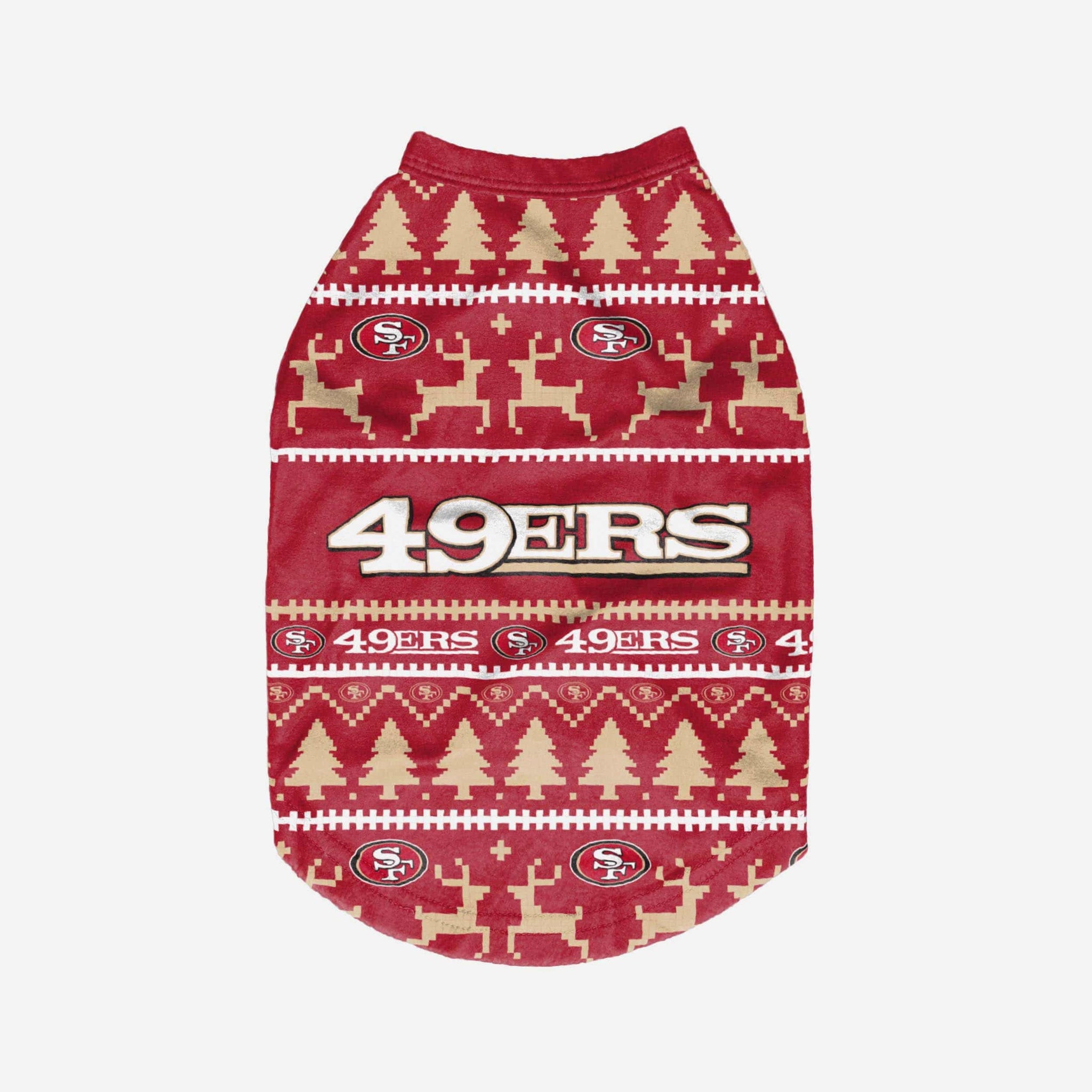 Show off your pet's holiday spirit with this dog sweater. Your good boy (or girl) will love this San Francisco 49ers Dog Family Holiday Sweater so much, they'll be saying "woof bark awooo" (that's "thank you" in dog). Don't forget to match your canine's sweater with a set of matching holiday pajamas.