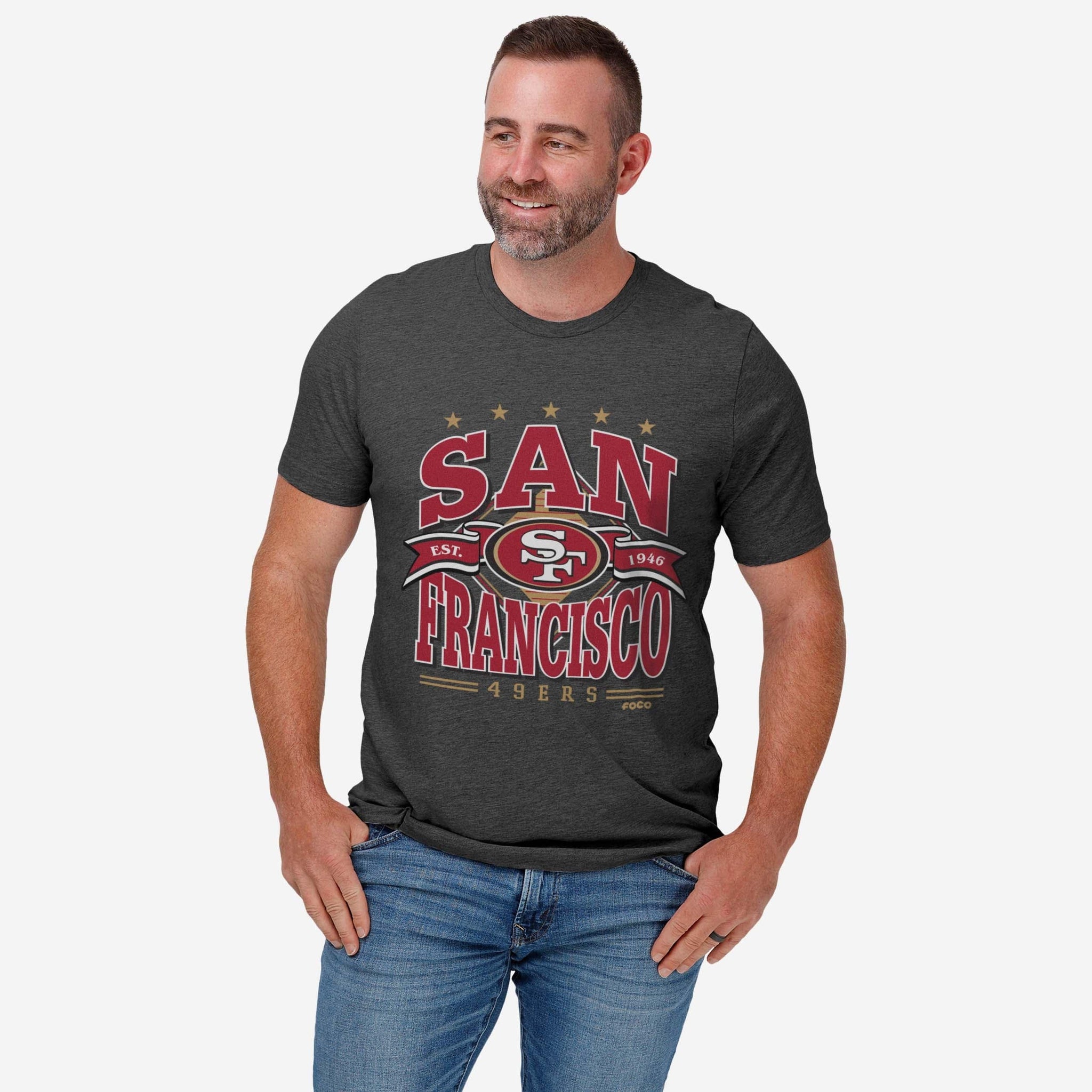 San Francisco 49ers Established Banner T-Shirt FOCO Dark Grey Heather S - FOCO.com