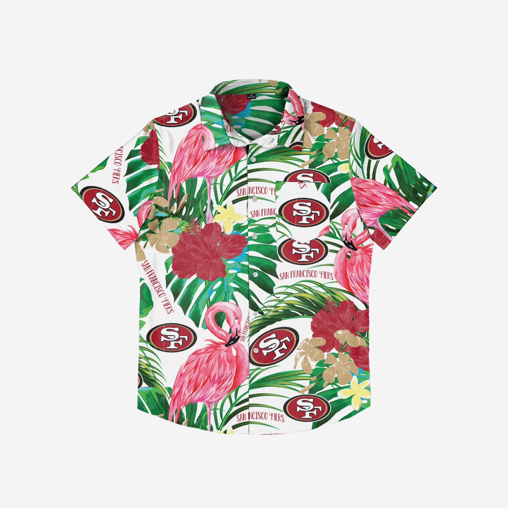 Aloha, party people! No need to set your watch - You're always on island time when you're rocking this San Francisco 49ers Flamingo Button Up Shirt.