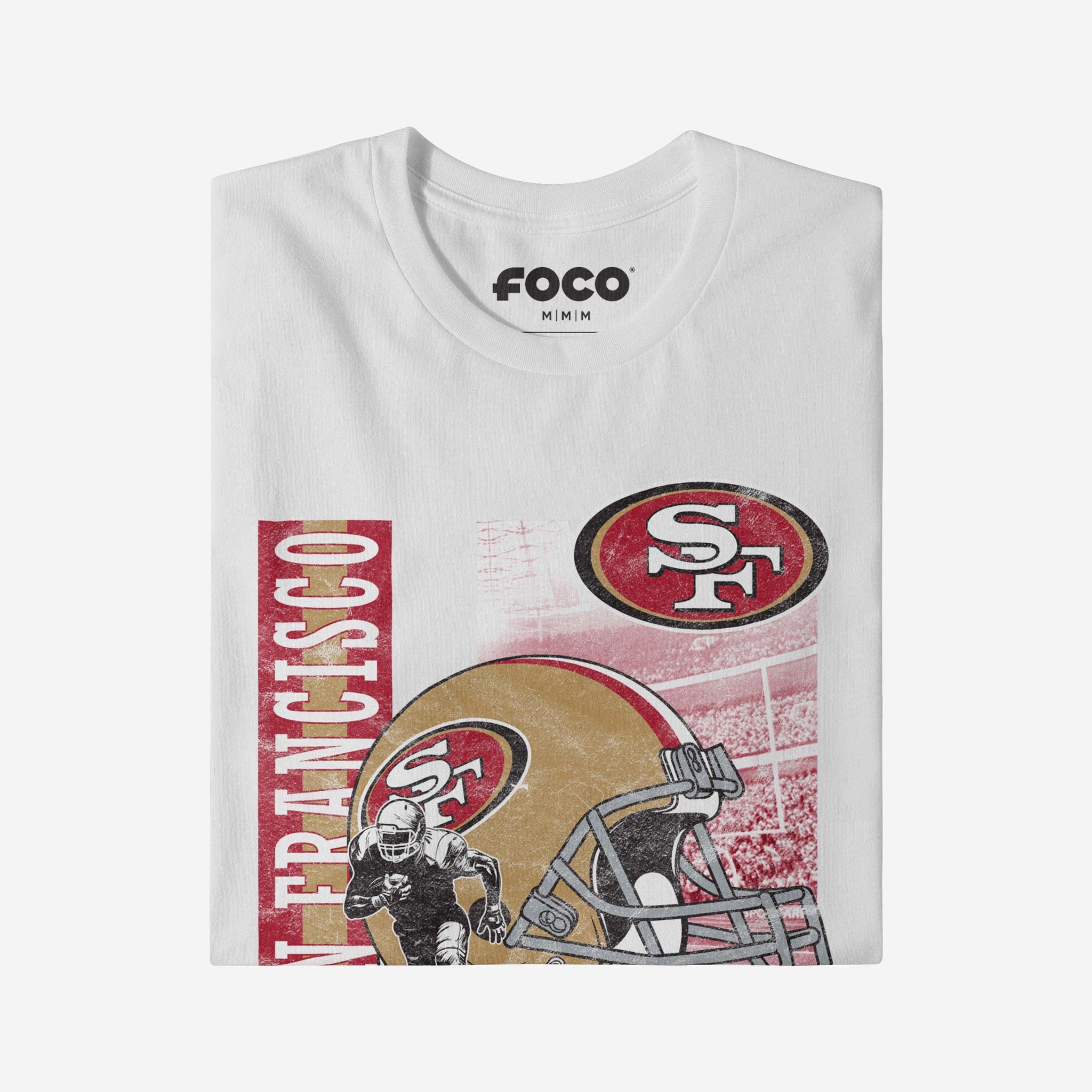 Make a dash for the endzone with a legendary addition to your fan fit! Score big on style and team pride with the San Francisco 49ers Helmet Dash T-Shirt.