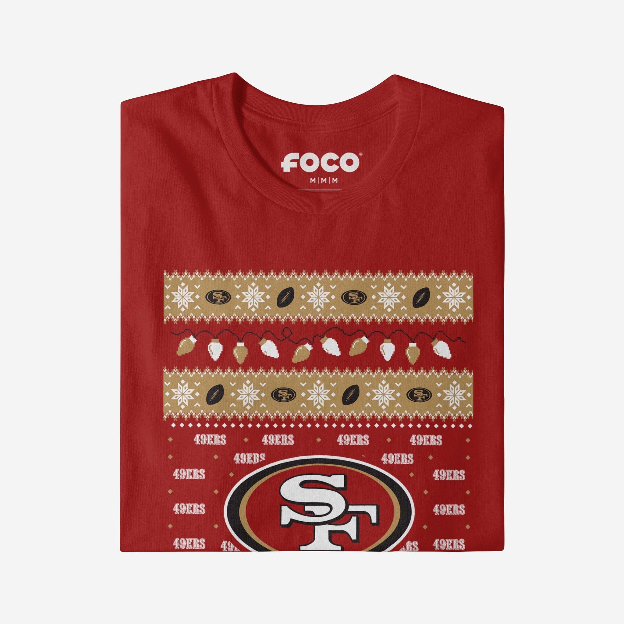 Santa's making a list, and he’s checking it twice! Prove that you’re the nicest fan around with the San Francisco 49ers Holiday Lights Sweater Long Sleeve T-Shirt.