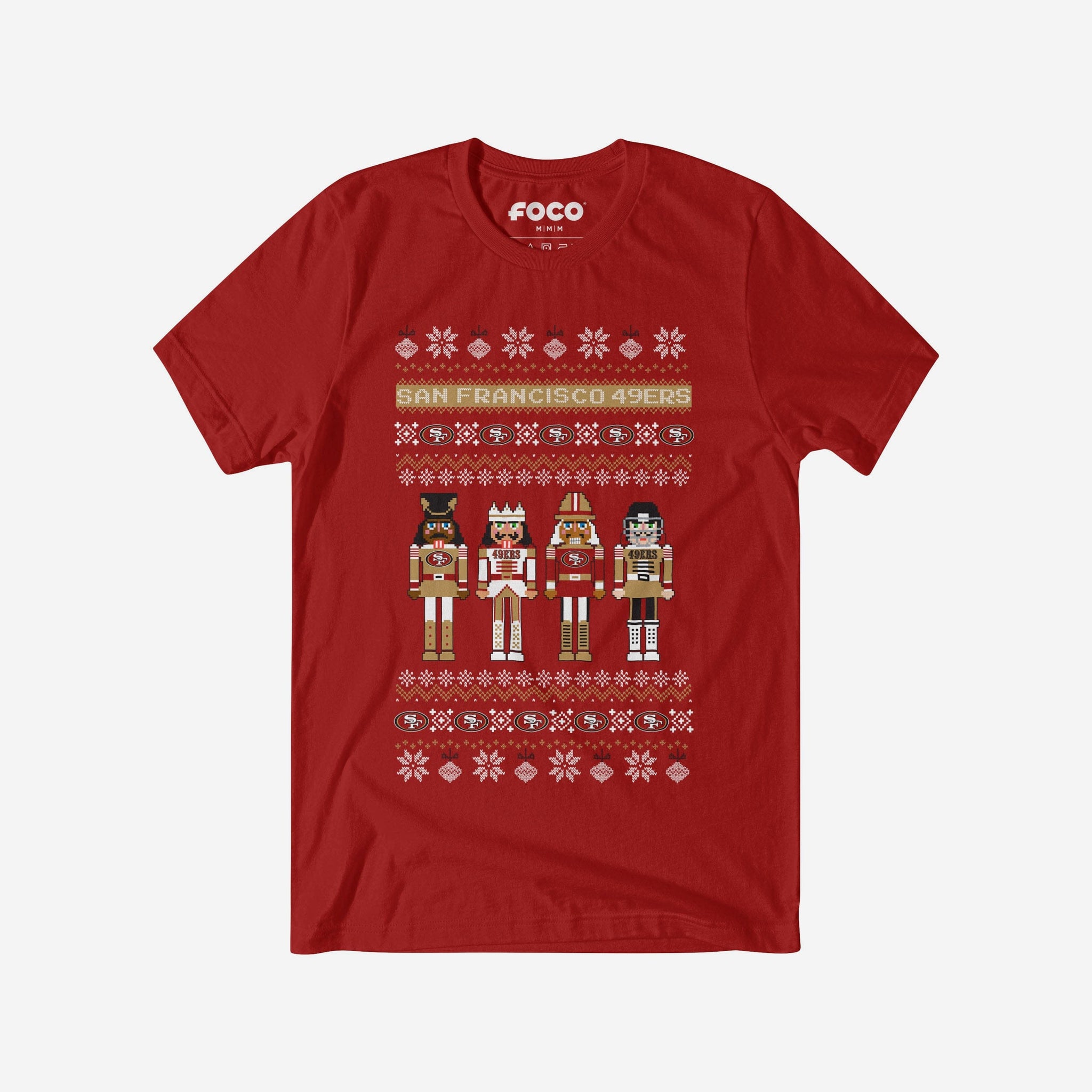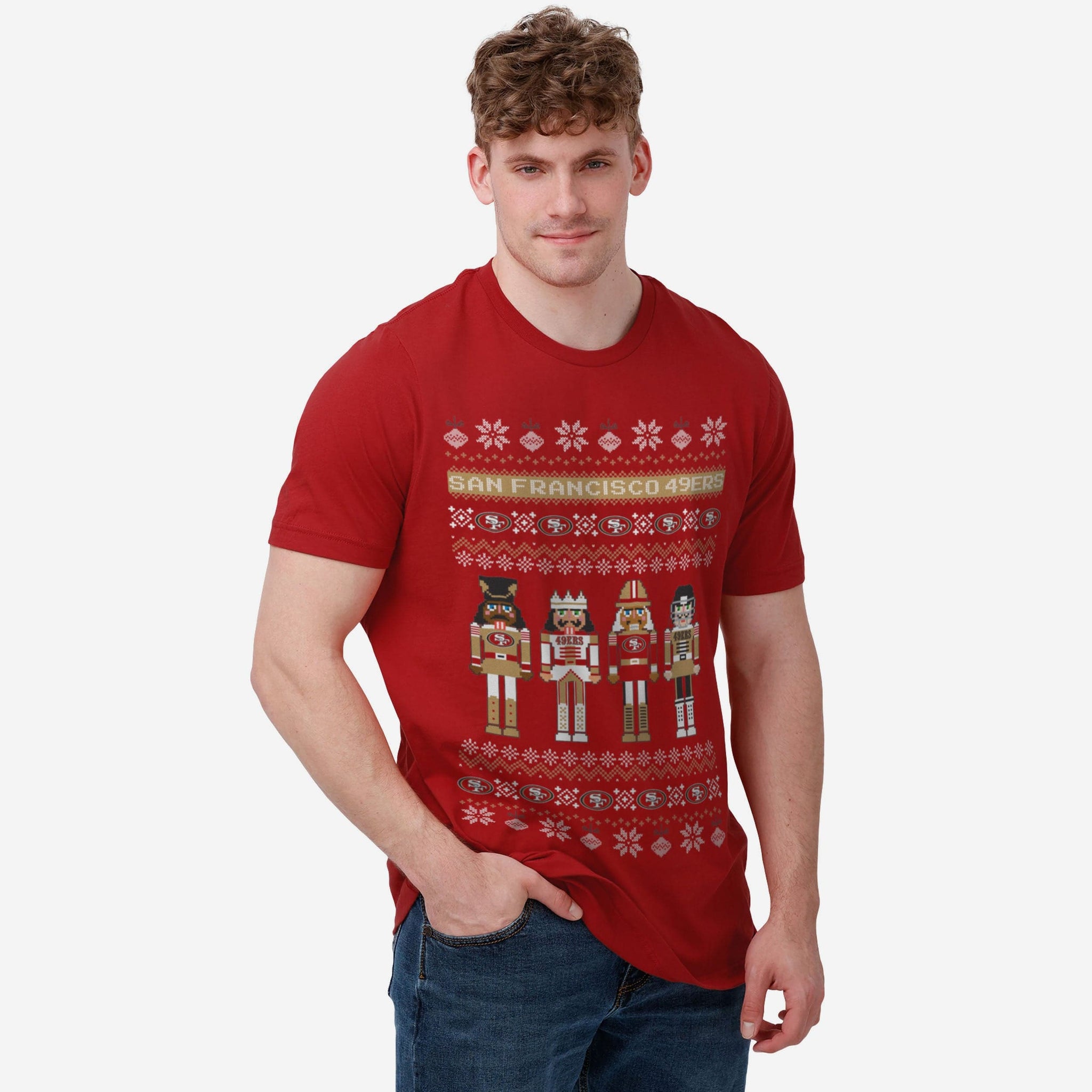 Get ready to get festive with your favorite team. Crack into the holiday spirit with the San Francisco 49ers Holiday Nutcracker Sweater T-Shirt.
