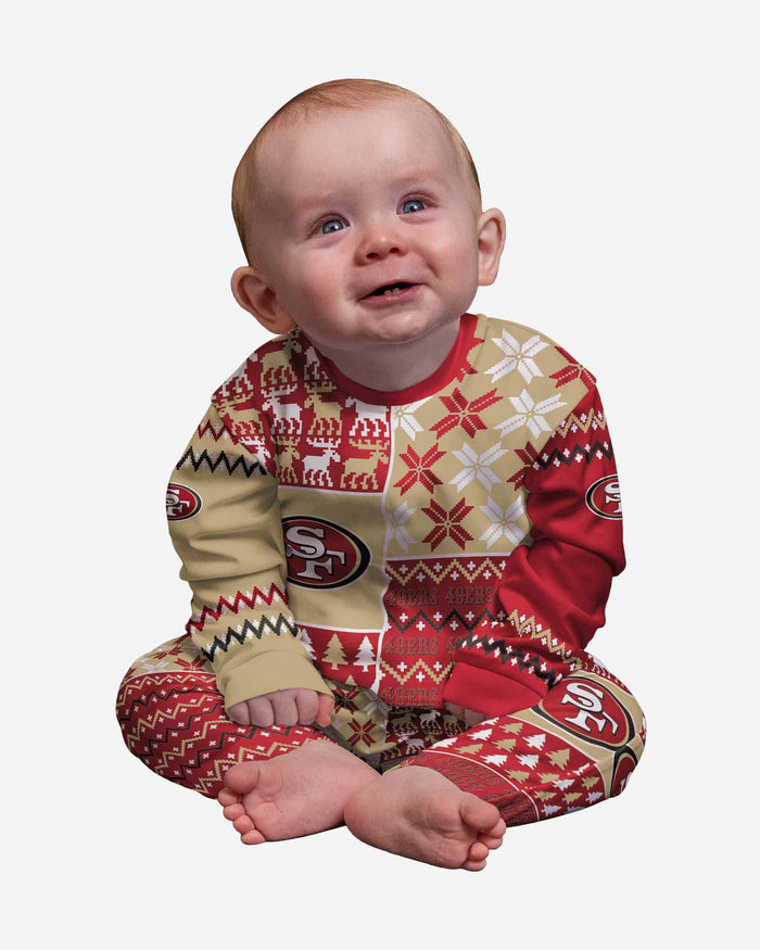 Get your young fan started early this holiday season in these San Francisco 49ers Infant Busy Block Family Holiday Pajamas! Your baby will absolutely love these matching Christmas pajamas! Make sure your infant enjoys sweet dreams filled with holiday joy by having them sleep in infant pajamas. Don't forget to take your holiday photo with the whole family wearing matching Christmas pajamas!