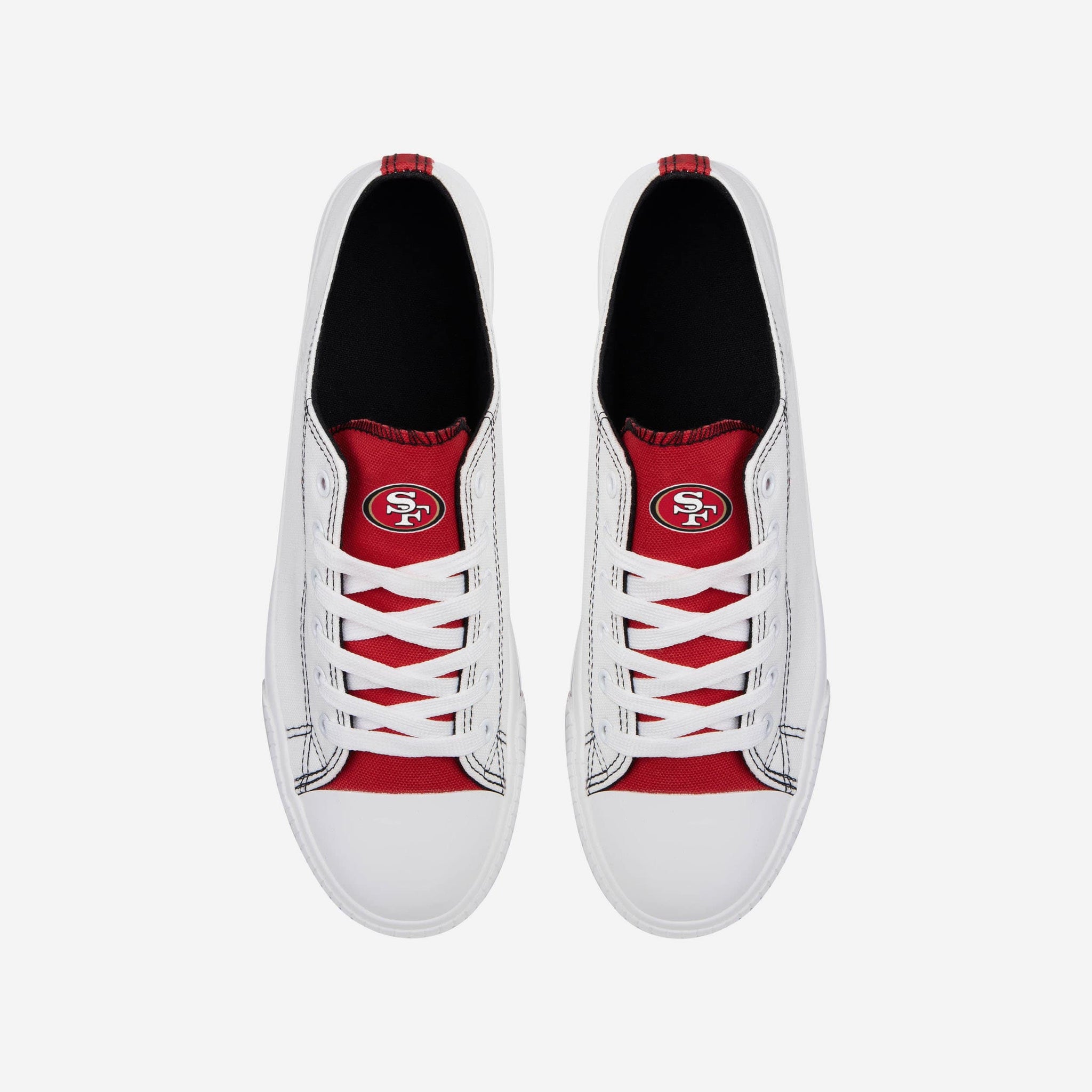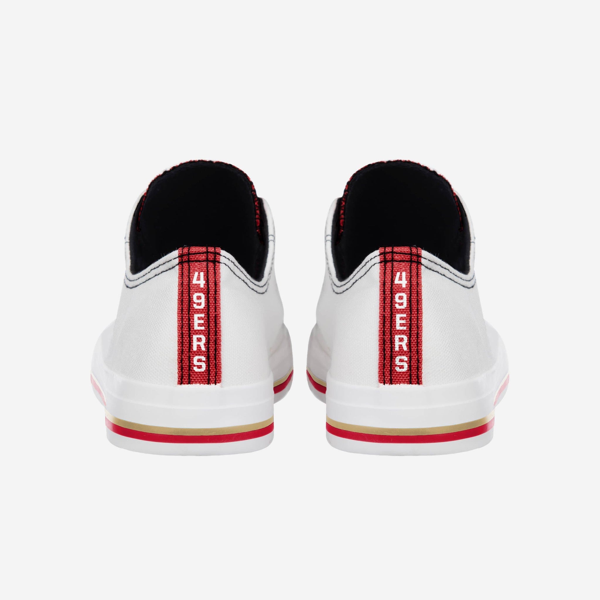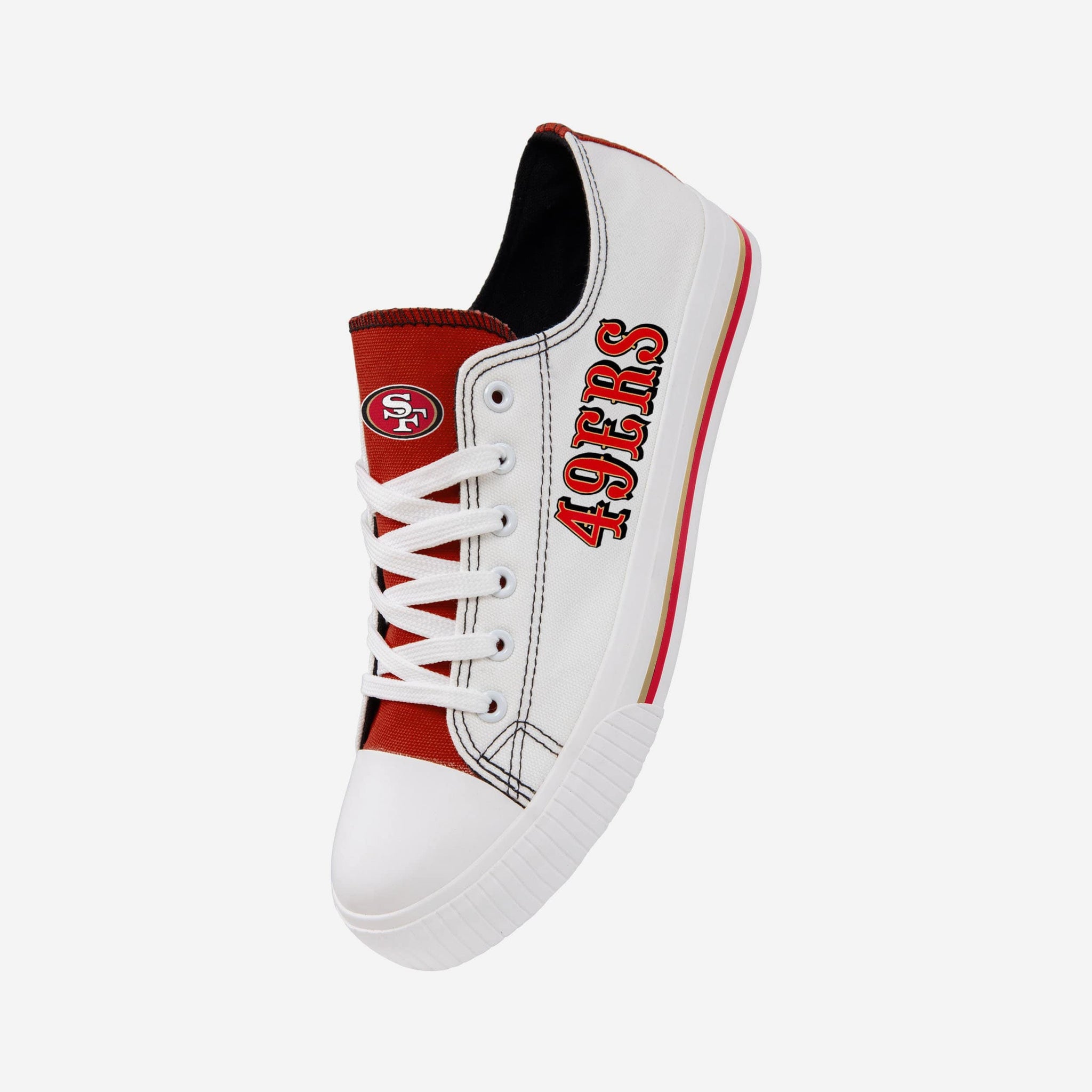 Low top shoes. High level fandom. Take countless steps in the right direction with these San Francisco 49ers Men's Low Top White Canvas Shoes.